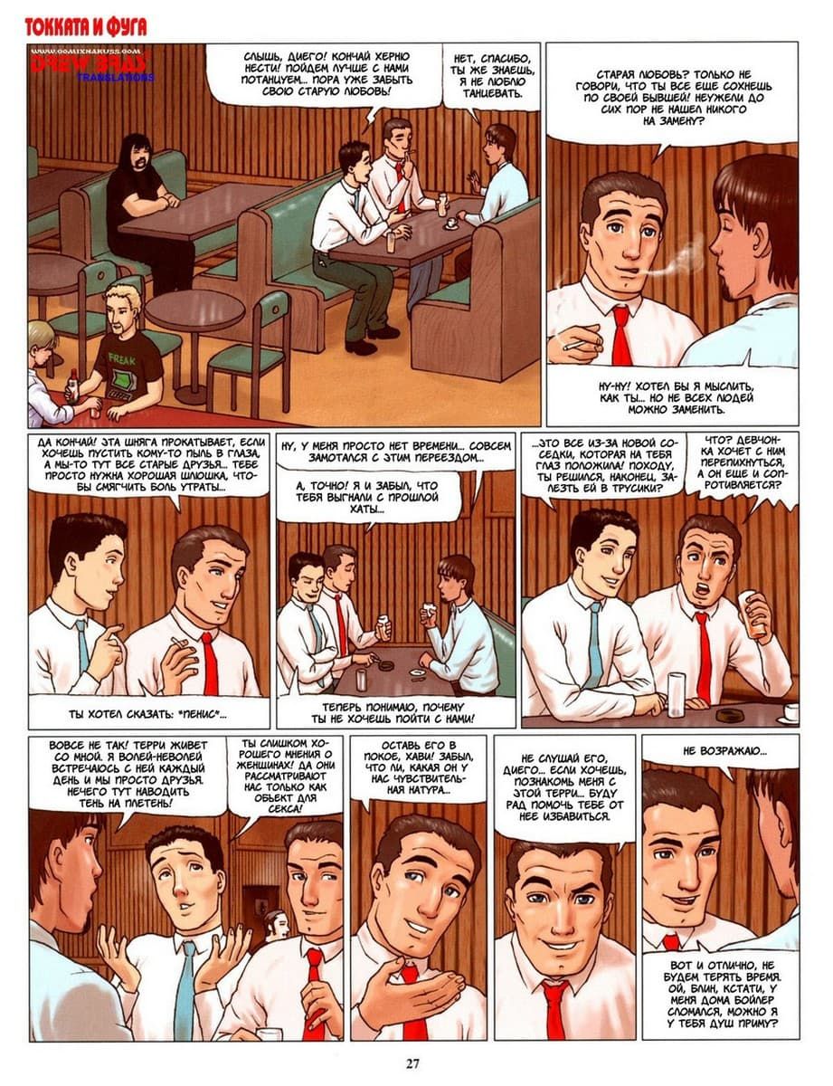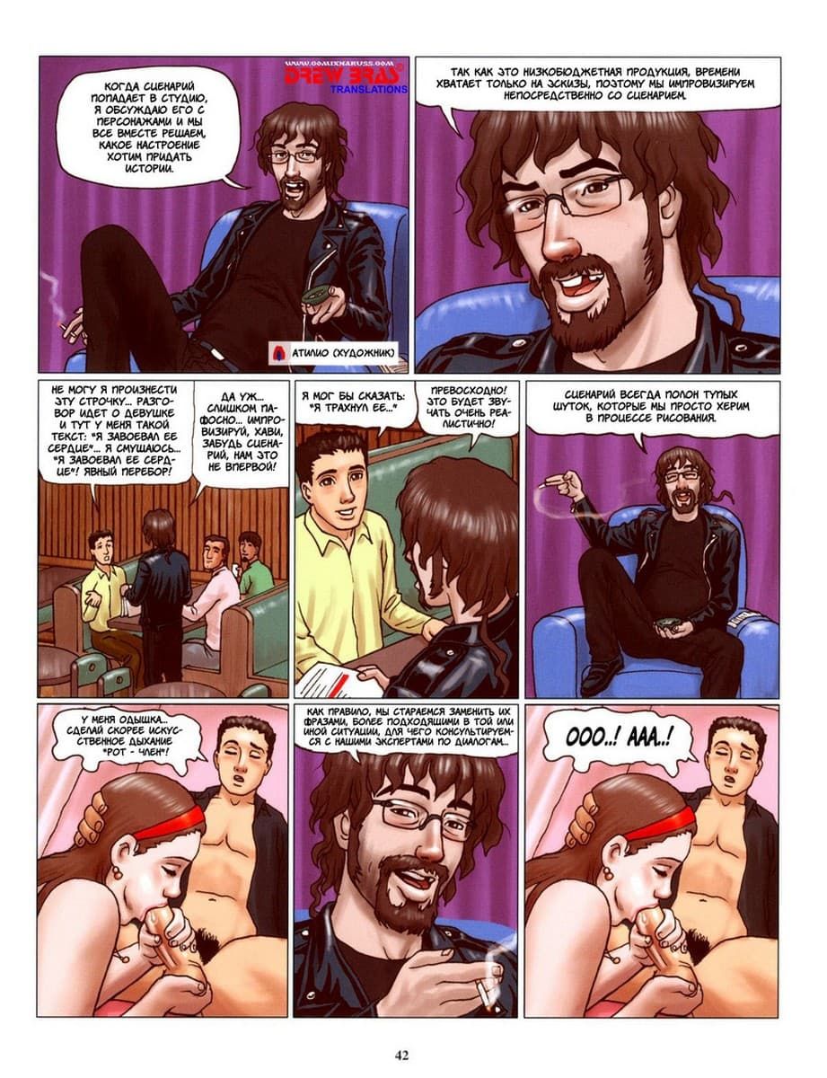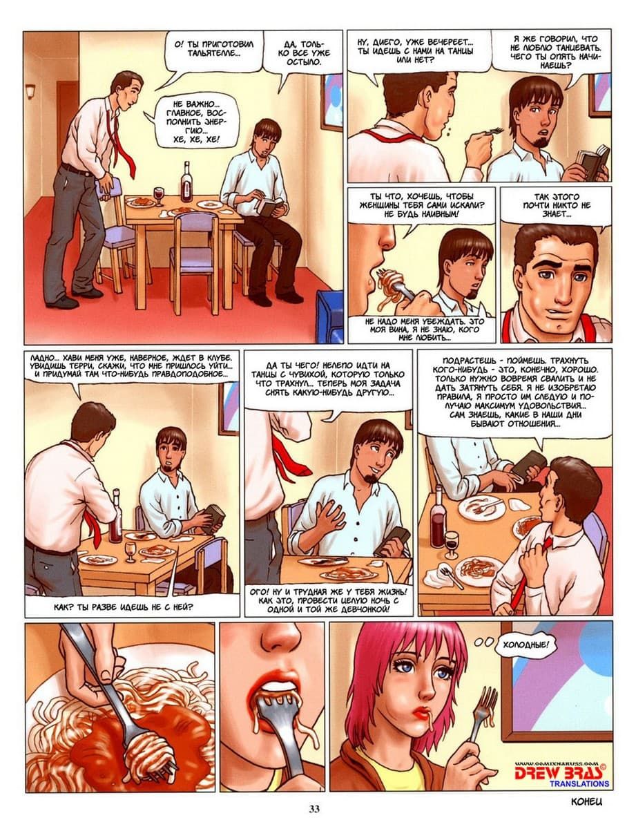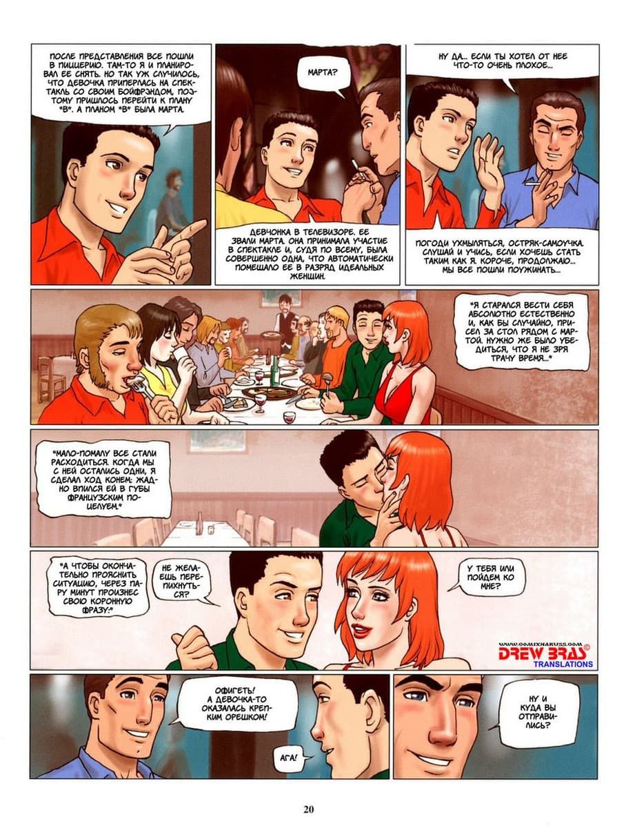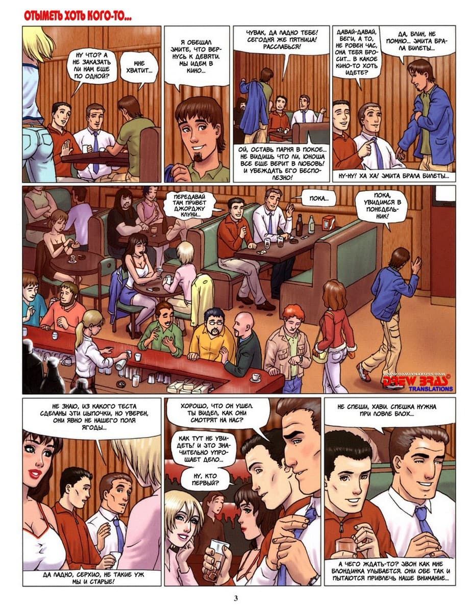 Русский порнокомикс, в котором трое парней регулярно собираются вместе, для того чтобы похвастать своими последними любовными достижениями на сексуальном фронте. Один из них добивается своего напролом, почти как летчик – истребитель, второй намного романтичнее, а третий – это нечто среднее между предыдущими. Но у всех есть, то чем поделиться, причем в самых бурных и возбуждающих подробностях…