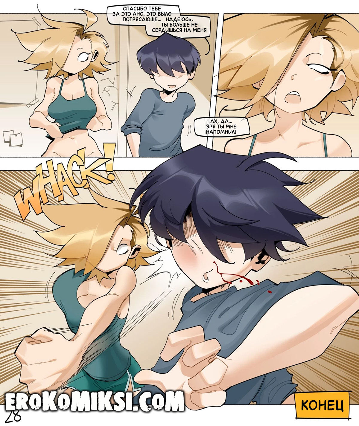 Порно комикс Туманное дело. Туманность дела заключается в странной реакции старшей сестры на поведение младшего брата. Финн подглядывал за сестрой в душе. Ано узнала об этом, когда увидела позже на полу, упавший из кармана брата, телефон. Девушка шла надрать задницу Финну, но он не закончил фапать и кончил прямо перед сестрой. Это возбудило Ано и она решила вместе с Финном принять душ…