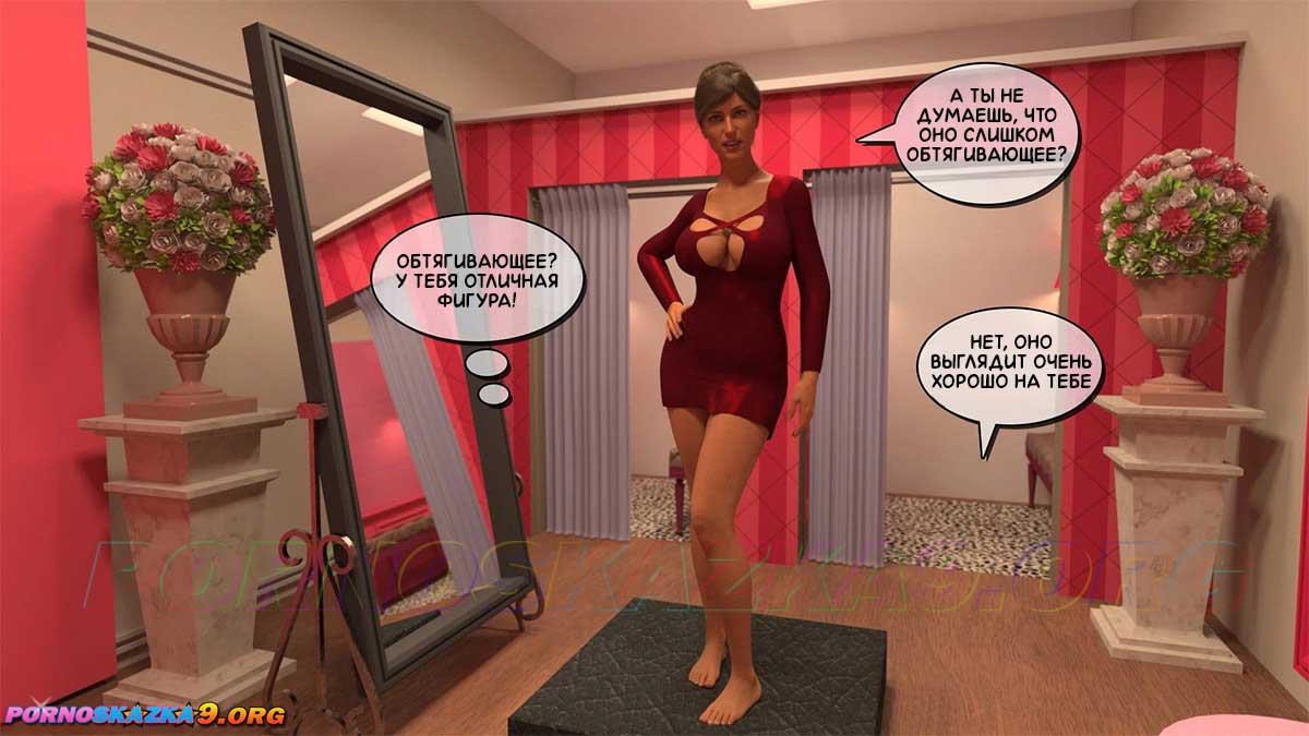 Порно комикс Тётя Вики, изменившая нашу жизнь. Глава 6. Часть 2. Пит вместе с мамой едут в магазин одежды, чтобы подобрать подходящее платье. Сделав выбор, вечером они отправляются в ресторан. Поужинав и пообщавшись, они хотят ещё немного повеселиться и идут в бар, где играют в бильярд и пьют пиво. По дороге домой, Кэтрин нахлынули воспоминание об отце Пита и она целует сына в губы…