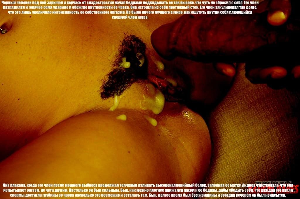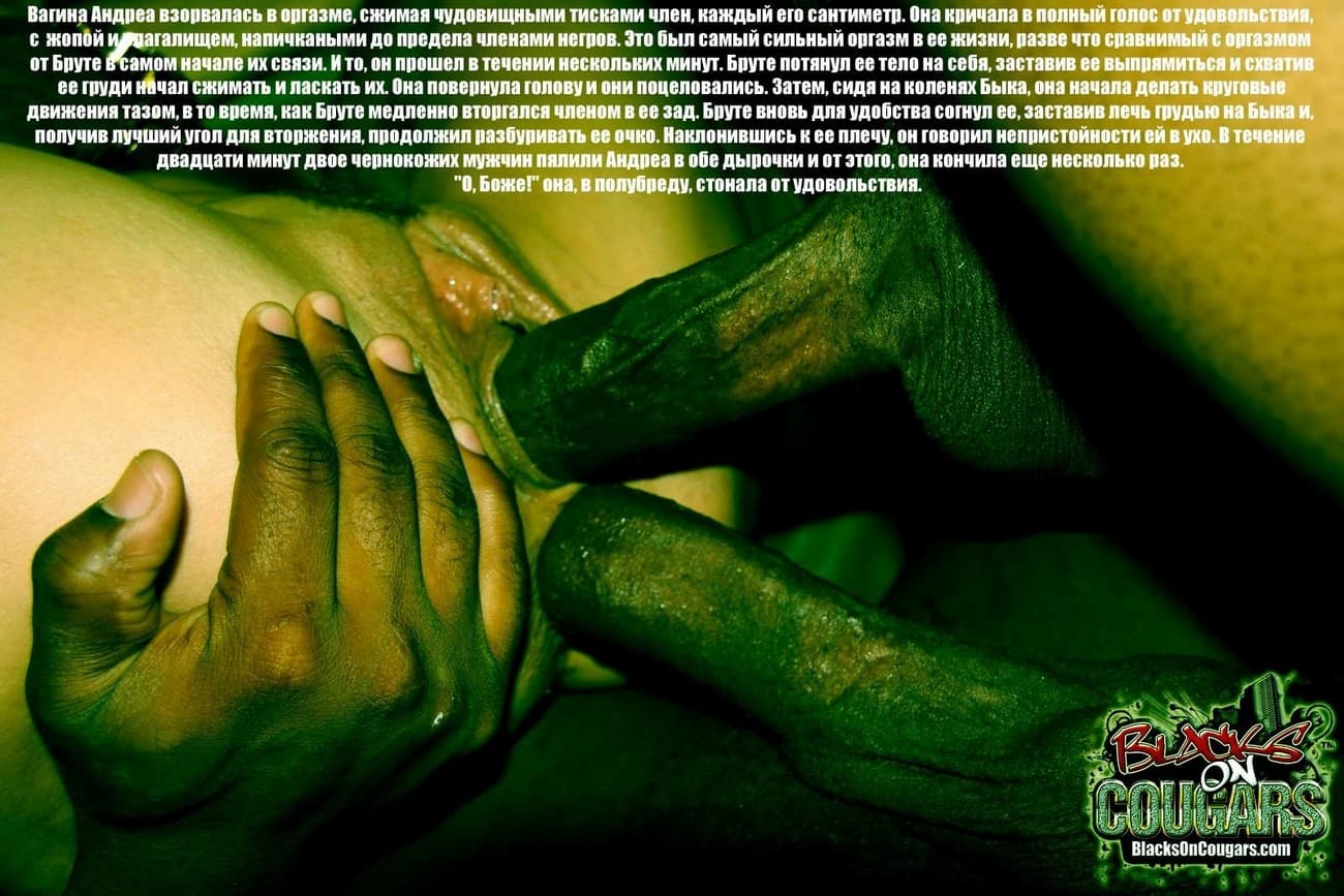 Порно история о сексуальных мучениях женщины, которую шантажировали тем, чтобы она трахалась с черными осужденными, иначе бы ее мужа в тюрьме сильно избили. Ей ничего не оставалось, как подставлять свою вагину и анальное отверстие под огромные члены негров. Те же изливались в нее литрами спермы. Все это вы увидите на картинках данного комикса для взрослых.