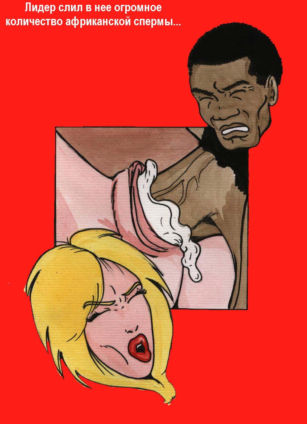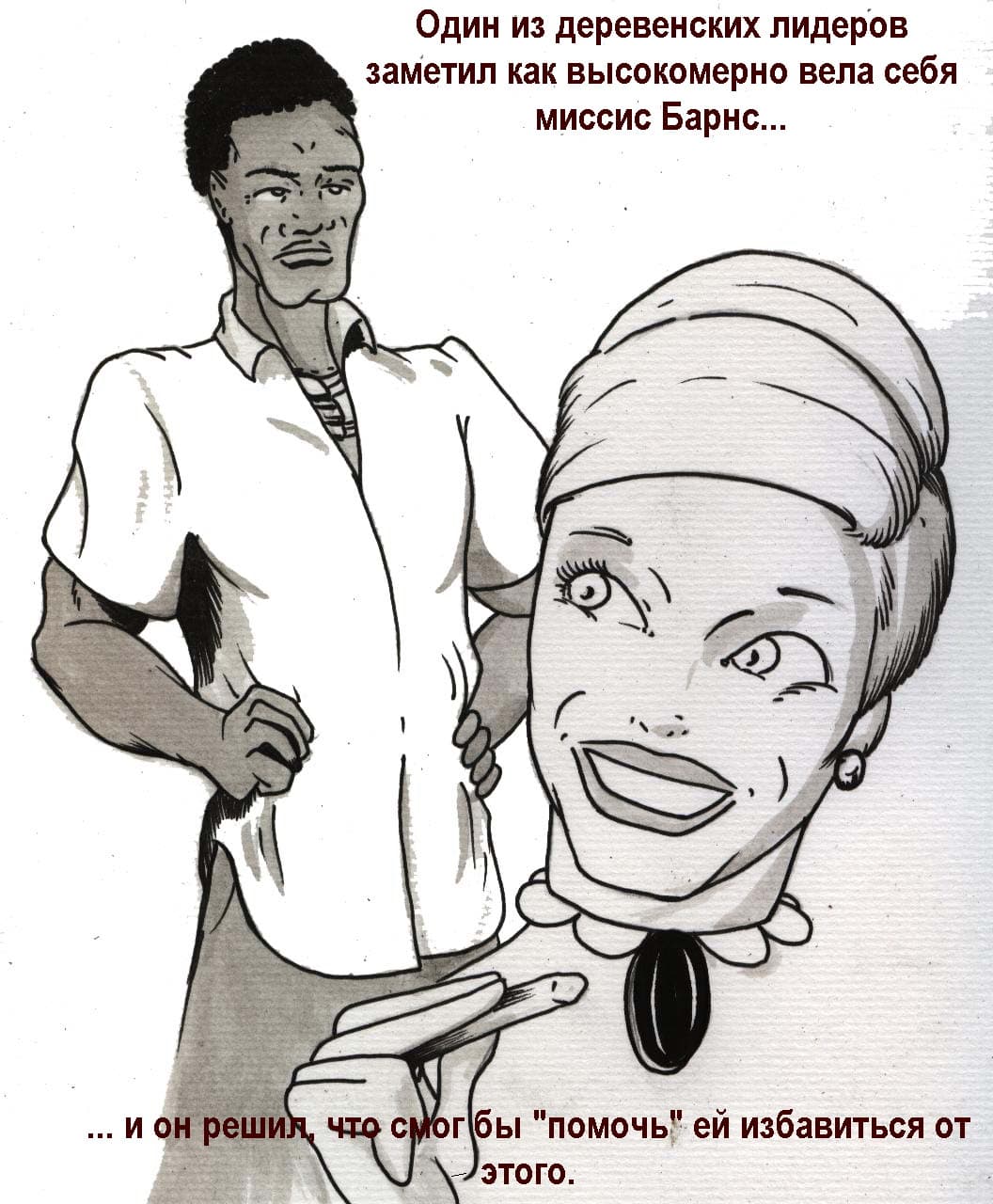Учительница стерва приехала в Африку преподавать. Она вела себя надменно по отношению с местными жителями, и за это лидер местных африканцев решил жестко отодрать нерадивую белую гостью. Он заставил прийти ее к себе в хижину, где засунул в нее свой агрегат. Дальнейшее вы узнаете и посмотрите в эрокомиксе онлайн.