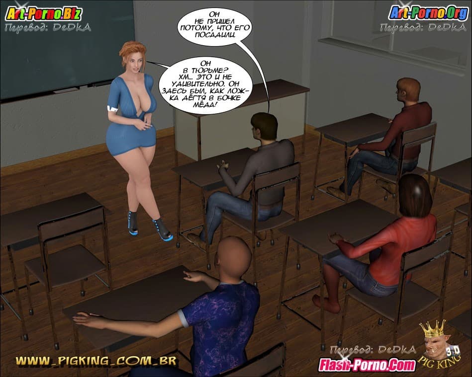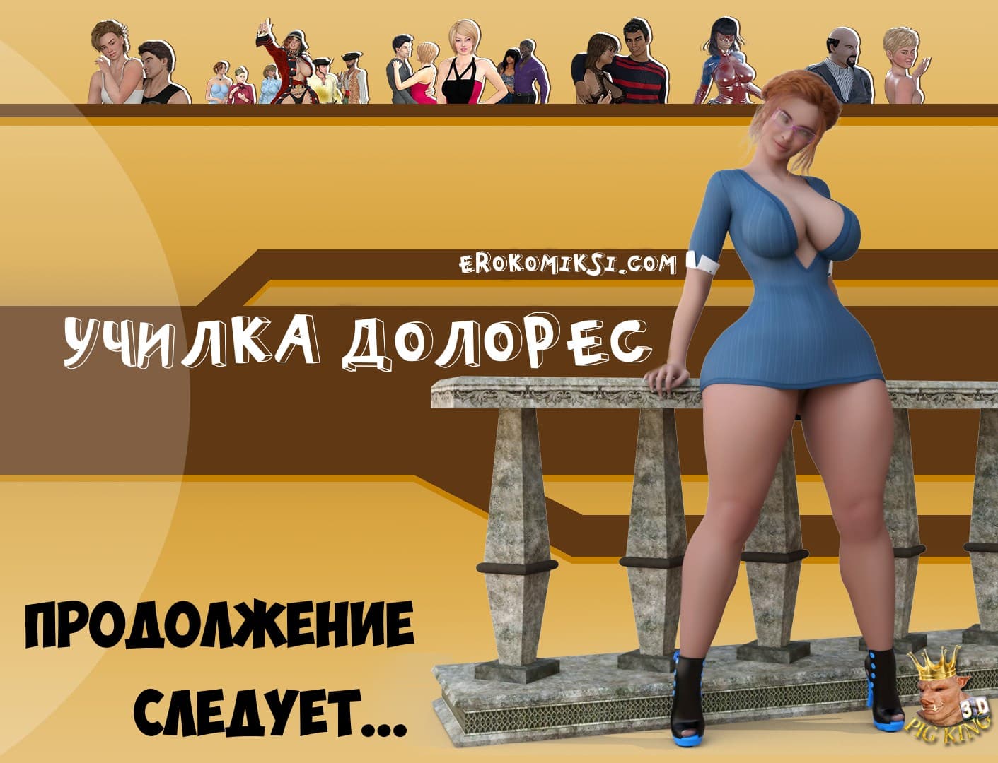 Представляем вашему вниманию порно комикс про училку Долорес. Эта женщина была очень строгой учительницей. А её супруг был известным депутатом, и это обстоятельство, как ей казалось, добавляло авторитета женщине, и она ходила по учебному заведению, ну просто, словно директор популярной шоколадной фабрики! Однако, надо сказать, что аппетитная леди втихаря, практически каждый день занималась сексом с физруком. А, что делать, желанное удовлетворение женина дома не получает. Вот на этом заносчивая, но очень привлекательная сучка и погорела. Хотя, это как посмотреть на это дело со стороны…