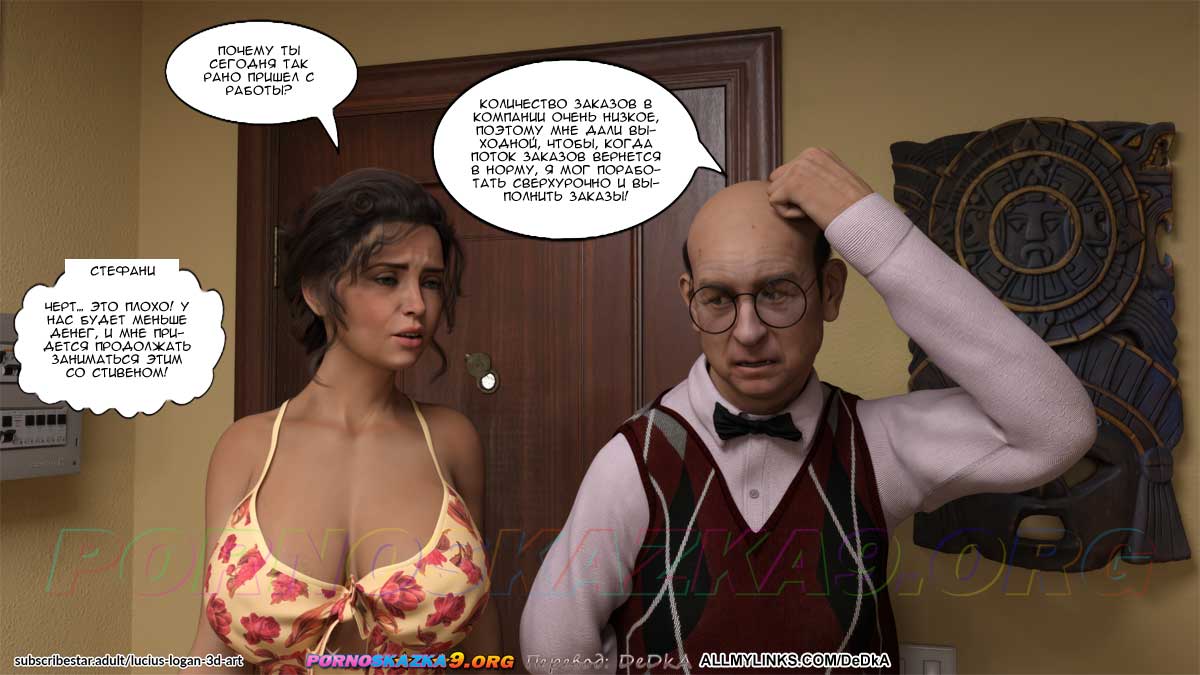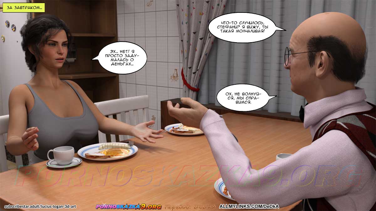 Порно комикс Удовольствие и деньги. Часть 3. У Джона на работе дела идут все хуже, заказов нет, а значит и заработка нет. Поэтому Стефани вынуждена продолжать ту работу со Стивеном, которая приносит так необходимые деньги. Впрочем, отношение Стефани к этой работе, как к вынужденной, постепенно перерастает в отношение к ней, как к желанной…
