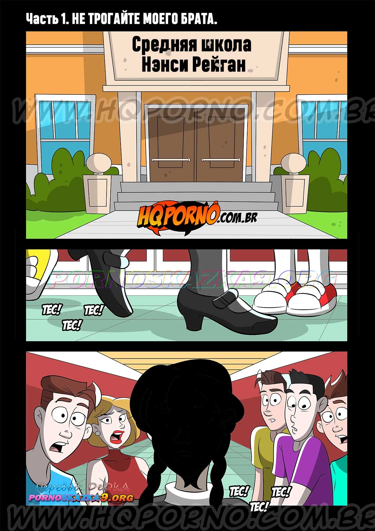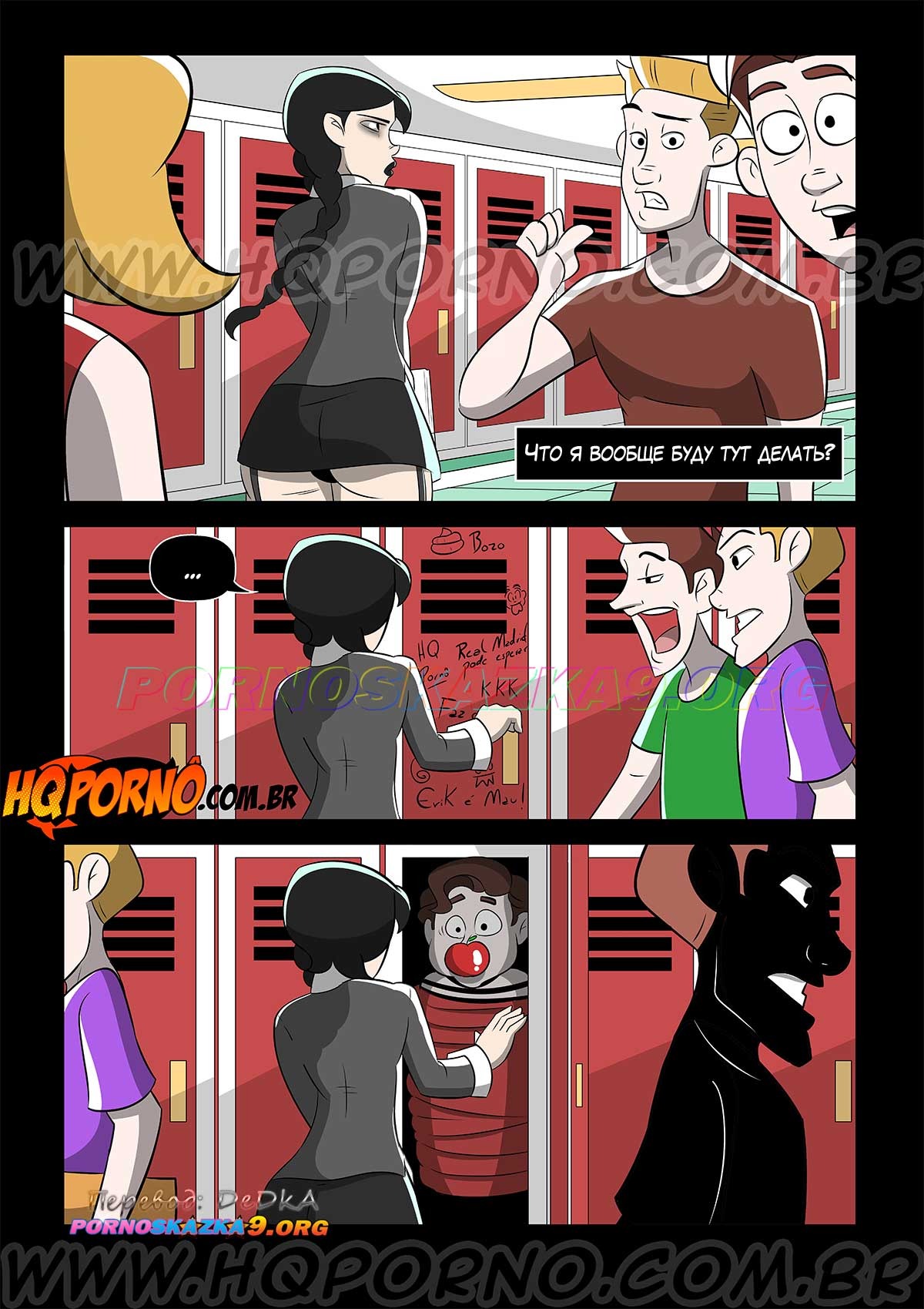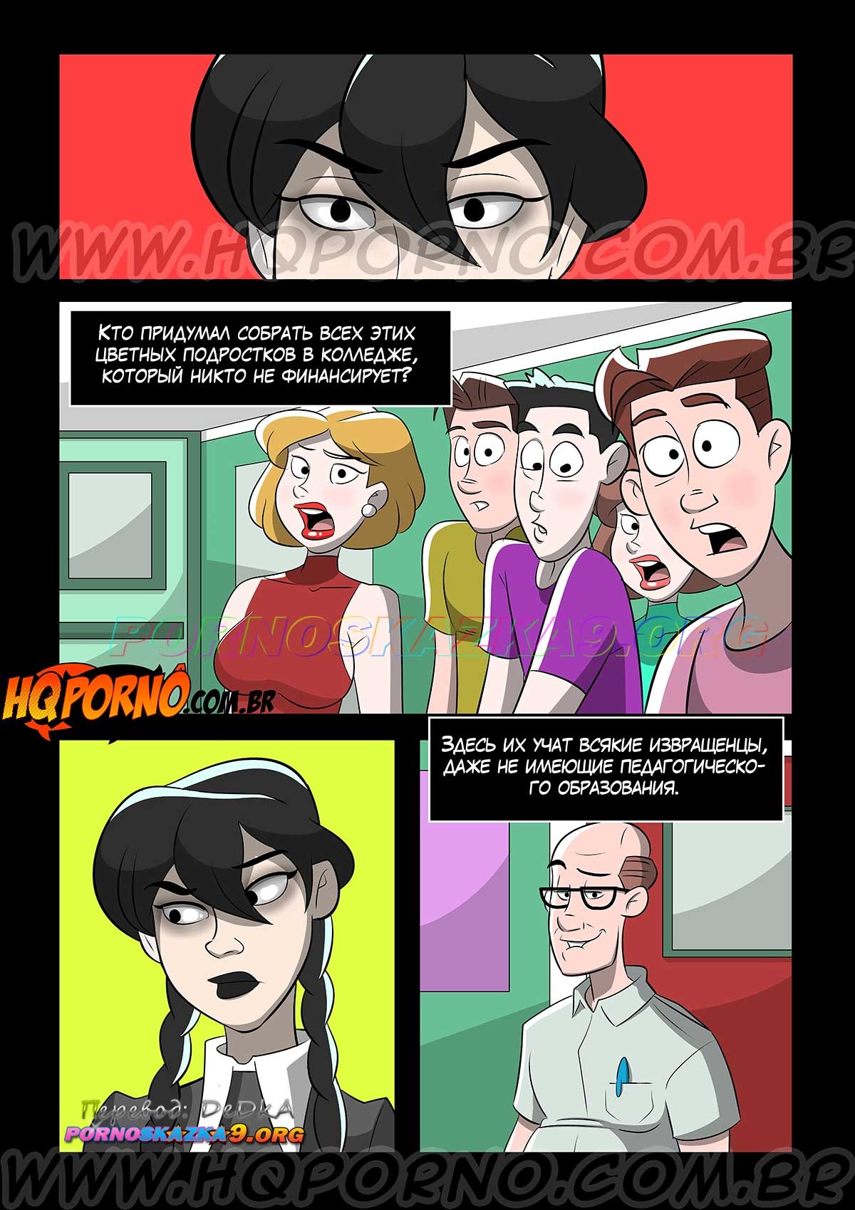 Порно комикс Уэнздей. Часть 1. Не трогайте моего брата. Уэнздей никому не дает обижать ее любимого брата, толстяка по имени Пагсли, потому что она думает, что только она может издеваться над ним. И, когда она случайно узнает, что какие-то хулиганы в колледже издеваются над ее братцем, Уэнздей принимает решение заманить их в сексуальную ловушку и очень жестоко наказать…