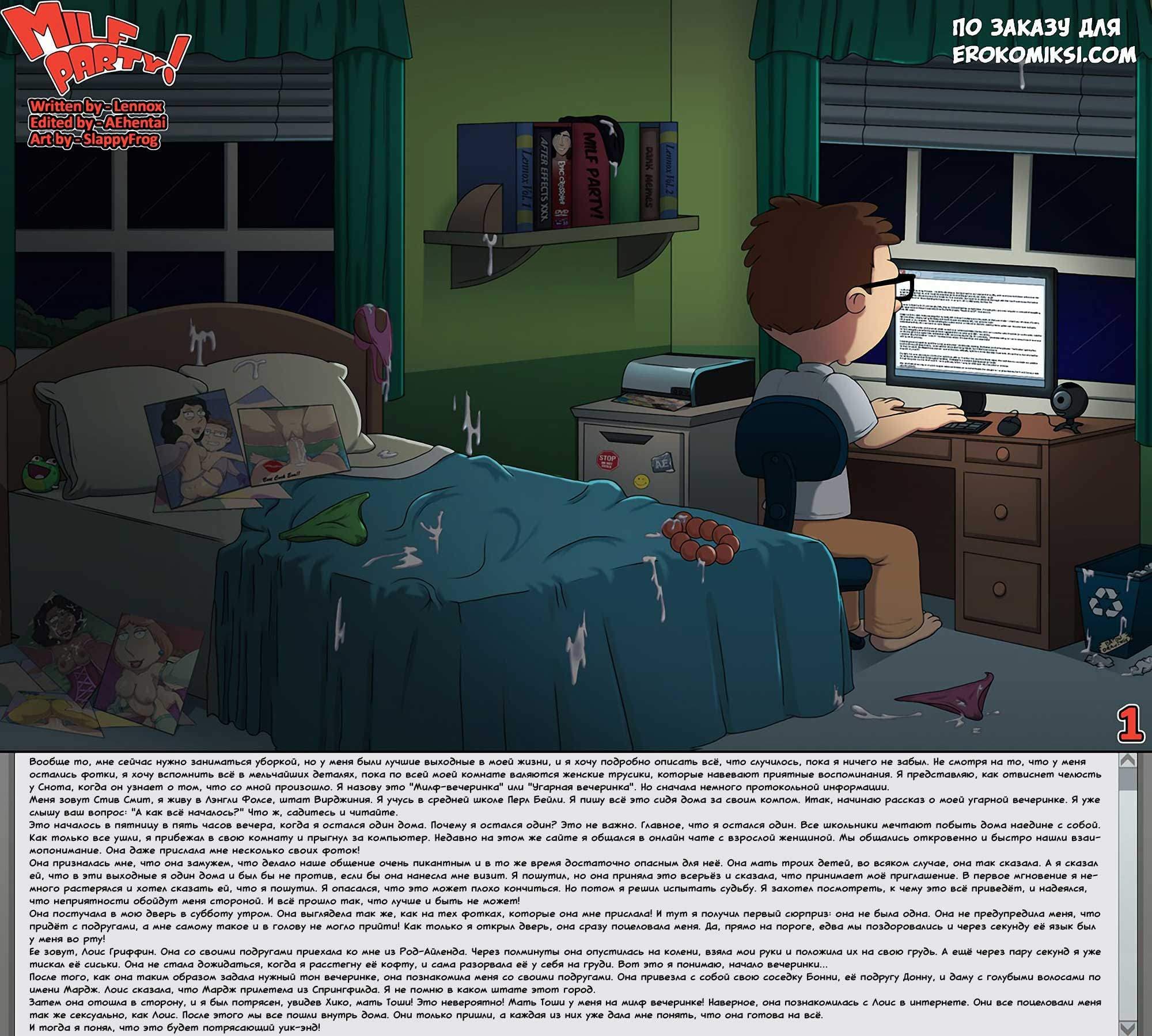 Порно комикс Угарная вечеринка расскажет вам, как Стив откровенно общаясь в онлайн чате с одной взрослой женщиной, ради шутки сказал ей, что на выходные он будет один дома, и она может навестить его. Но когда женщина приняла его предложение, Стив понял, что зря он так пошутил. Но отказываться было уже поздно. Каково же было его удивление, когда в воскресенье утром она действительно приехала к нему, но не одна, а с тремя подругами, которые прямо на пороге стали раздеваться…
