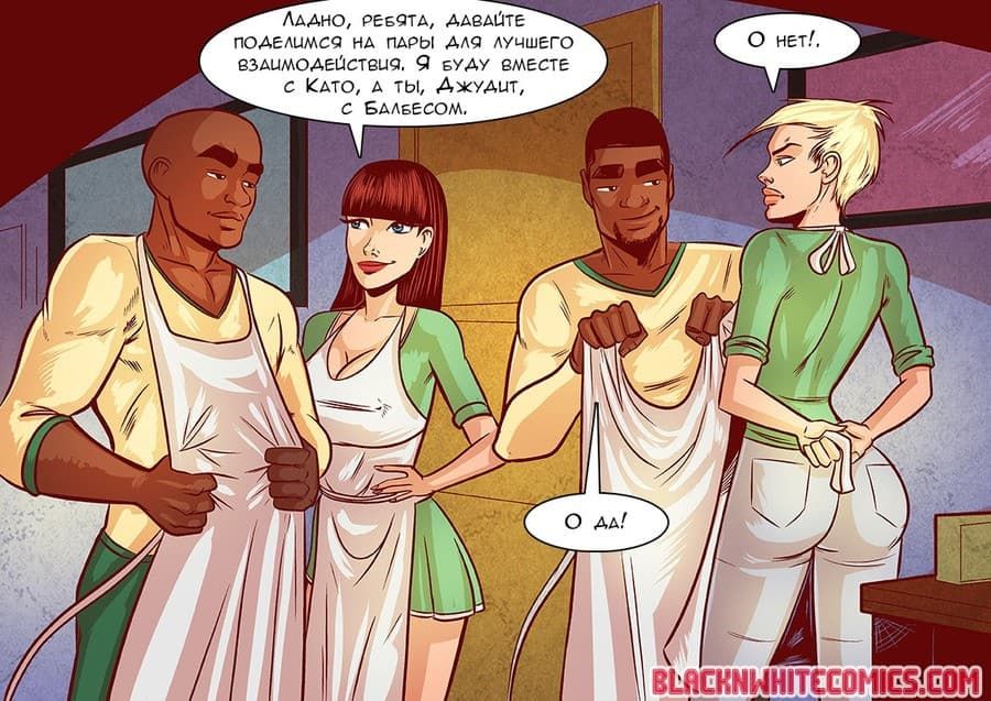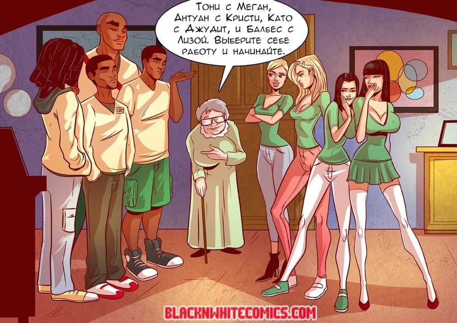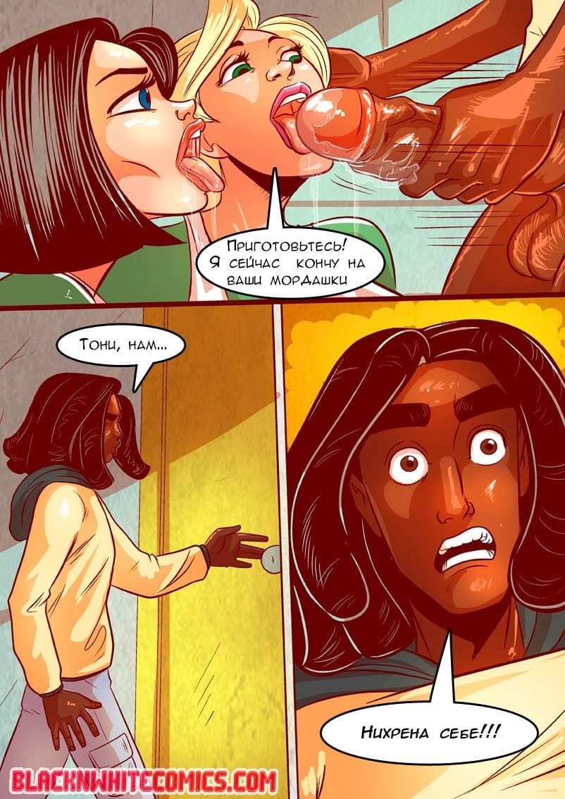 В данном возбуждающем порно комиксе про негров речь пойдет о том, как в университете Каллертон ввели новую программу социальных услуг, подразумевающую помощь нуждающимся. Для этого директор заставляет объединить усилия общества девушек из Дельта Сигма и чернокожих лоботрясов из братства Омеги. Белокожим телочкам по началу эта идея очень не понравилась, зато парням с большими черными членами пришлась по вкусу.