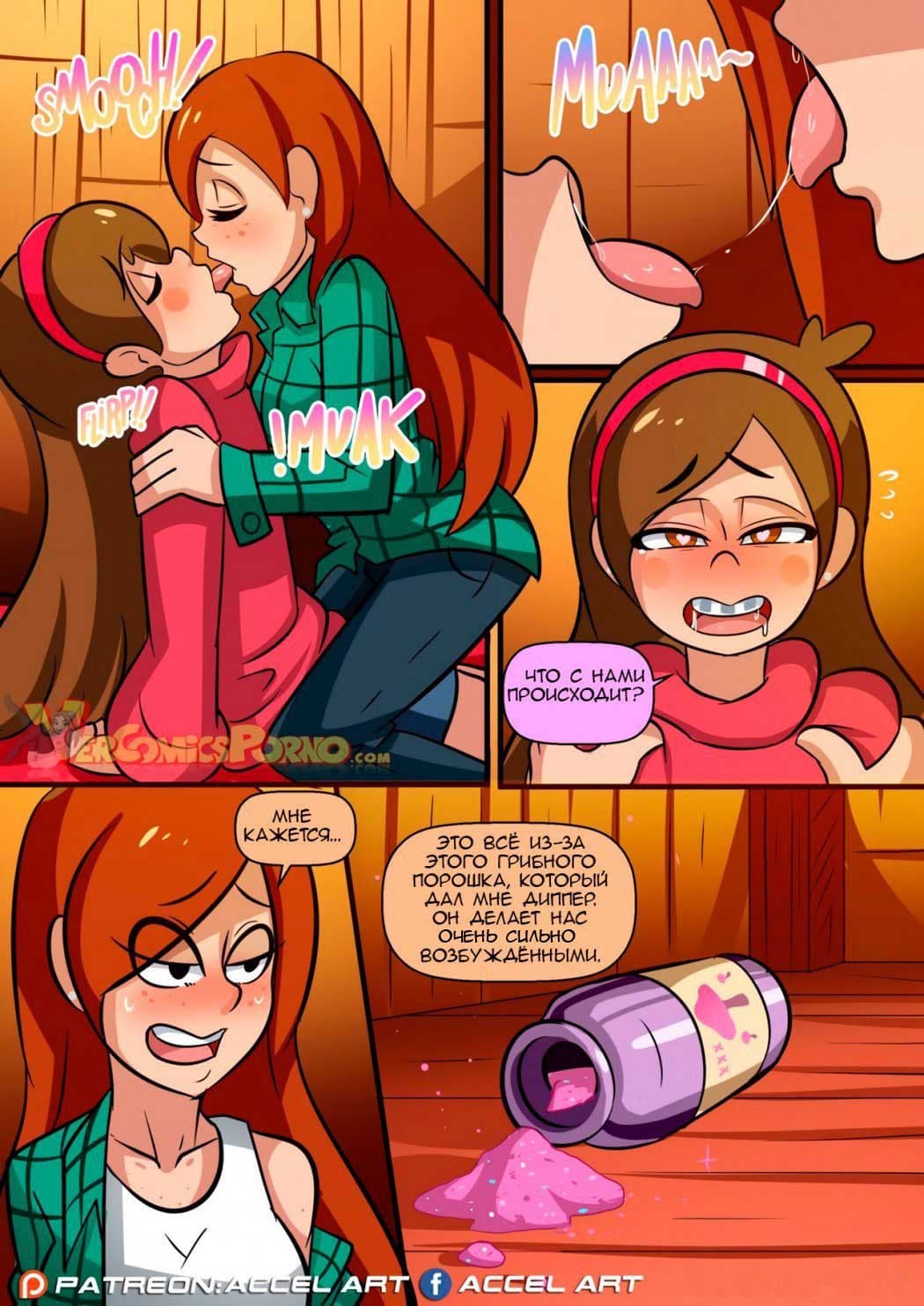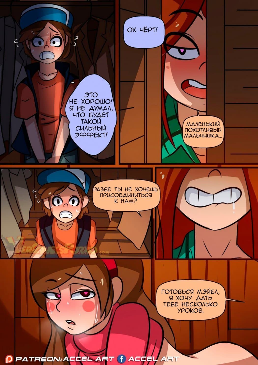 Порно комикс Уроки Венди расскажет о том, как Диппер угостил Венди странным порошком. Действие порошка, сделанного из гриба очень похожего на мухомор, оказалось настолько сексуально возбуждающим, что Венди немедленно захотелось секса. Рядом была только Мэйбл. Венди уже занималась сексом с девушками, а Мэйбл нет, но это не спасло Мэйбл от притязаний Венди. В самый разгар их развлечений дверь открылась, и вошёл Диппер…