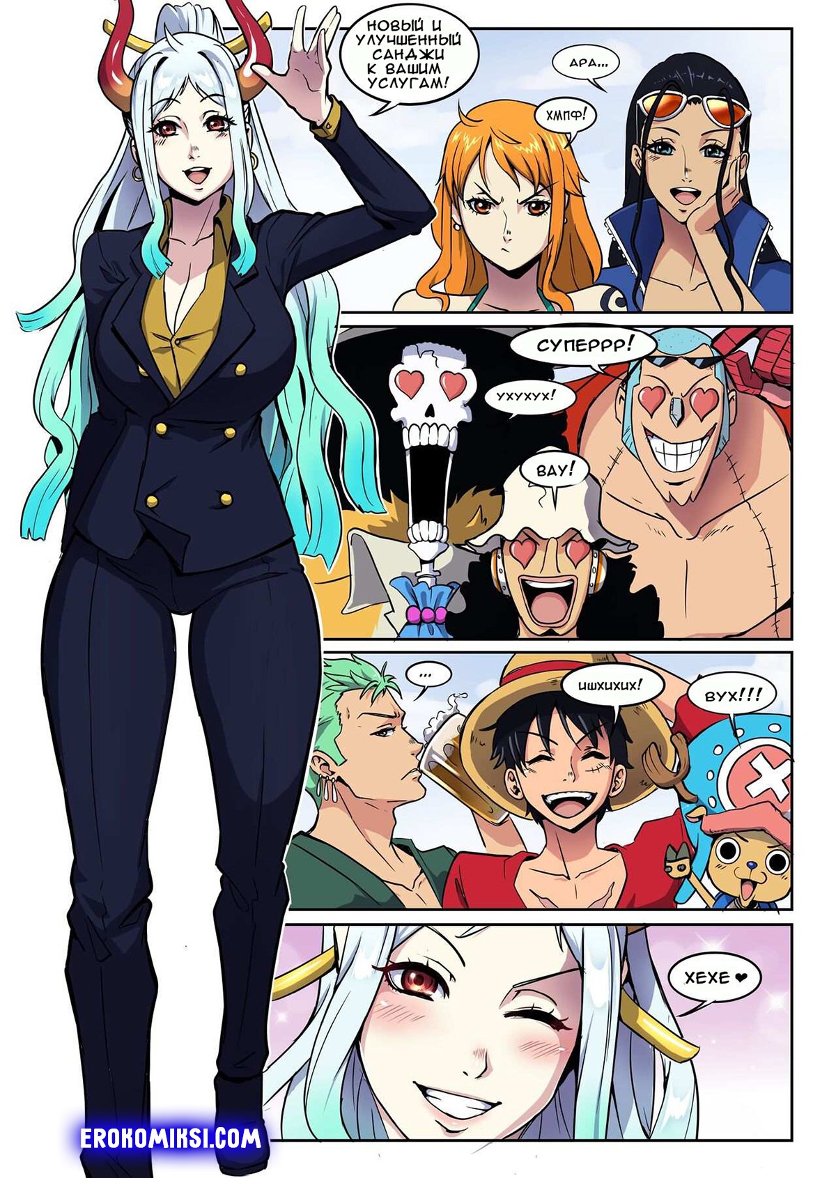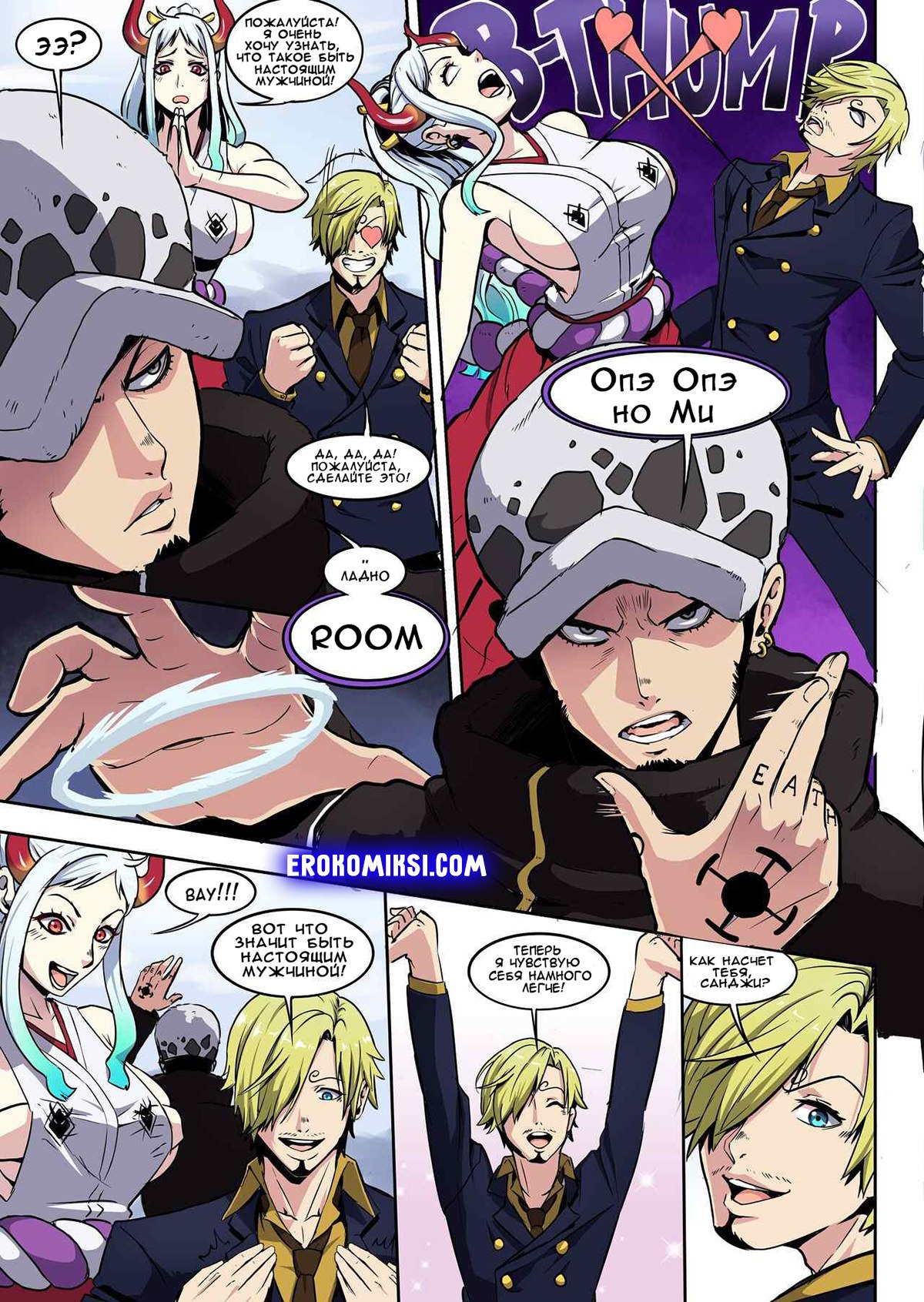 Порно комикс Ван Пис: Опэ Опэ но Ми в экипаже. Парень и девушка поменялись телами и решили попробовать кое-что новое для себя. Они занялись сексом, чтобы понять, каково это быть девушкой\парнем…