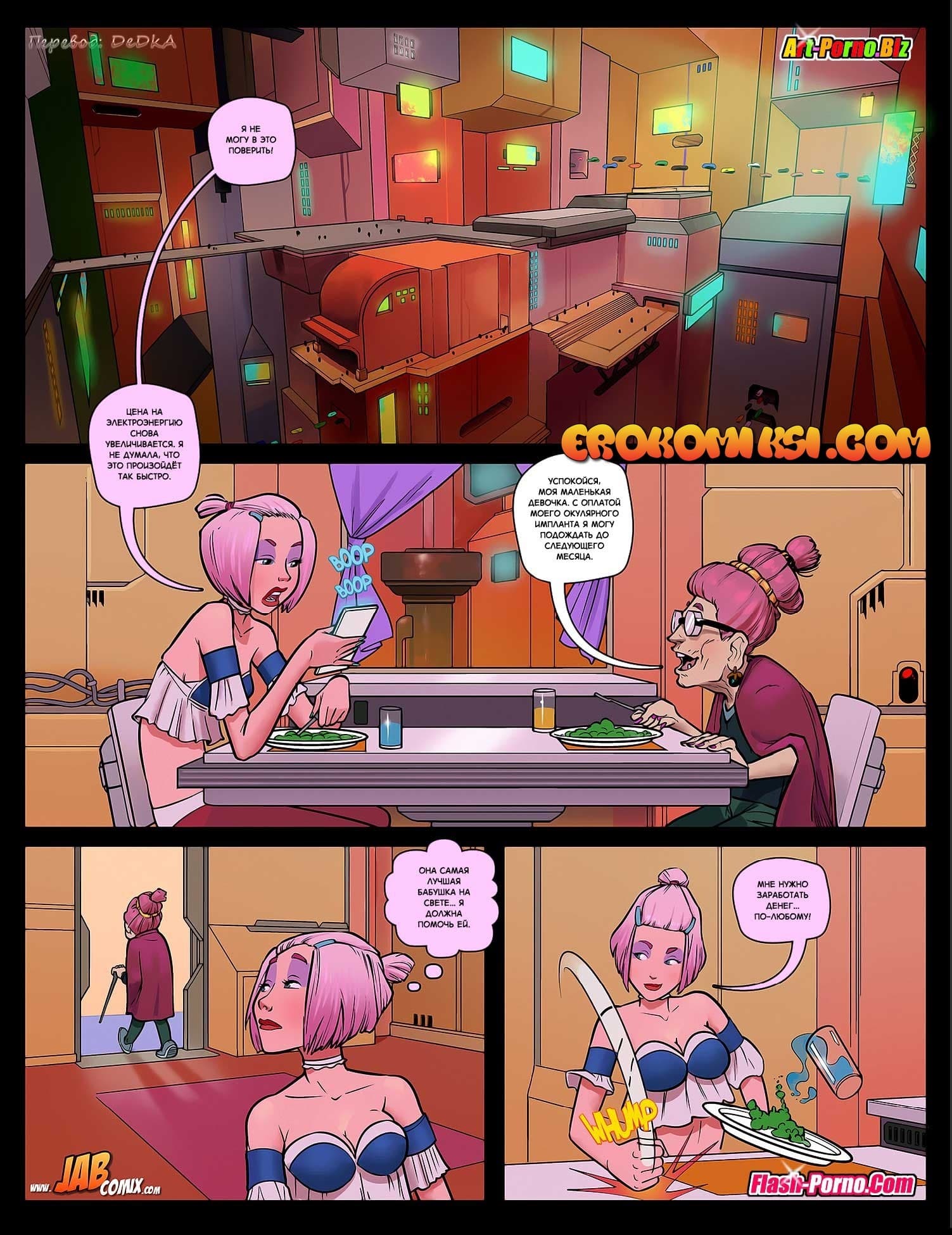 Порно комикс Ваниль расскажет о том, как симпатичная девушка по имени Ваниль живёт со своей бабушкой. Небольшой пенсии бабули с натягом хватает на оплату коммунальных услуг. А пожилой женщине ещё и на лечение средства нужны! Ваниль, как прилежная внучка, хочет взять на себя некоторую часть расходов, но, только для этого нужно, хотя бы, устроиться на работу. Поэтому Ваниль пошла в ближайший бар, в надежде на то, что её трудоустроят там певичкой…