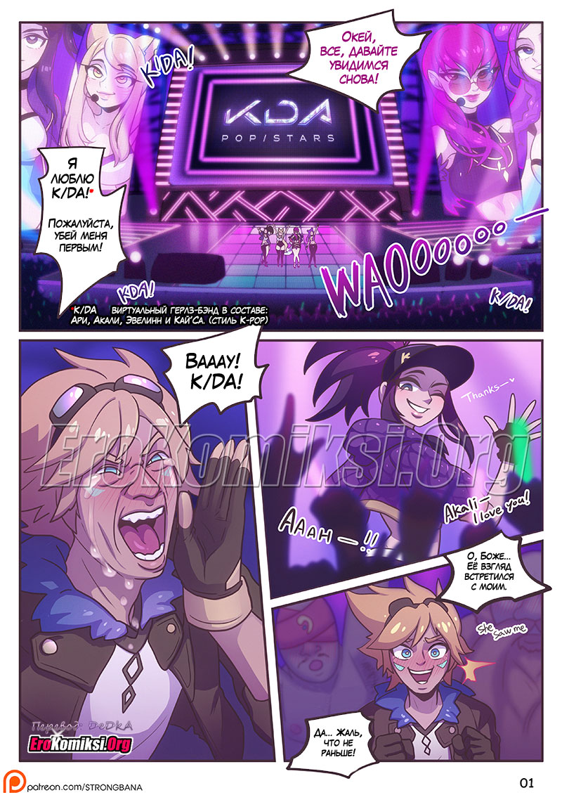 Популярный виртуальный герлз-бэнд K/DA, состоящий из четверых сексуальных красоток завершил своё выступление, оставив всю мужскую часть зрителей с конкретным стояком. Один чудак решил пробраться к звёздам в гримёрку…