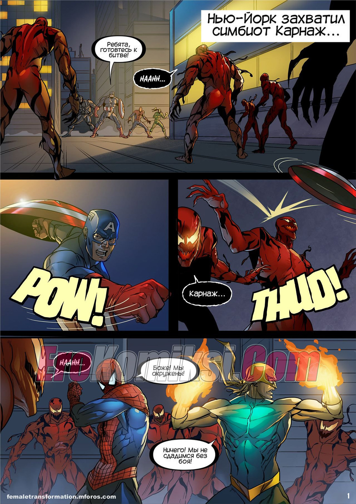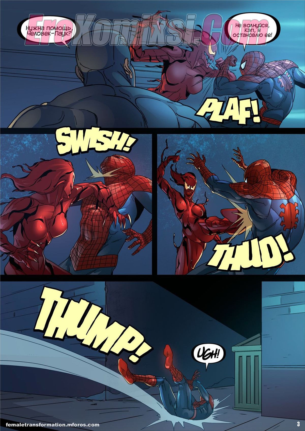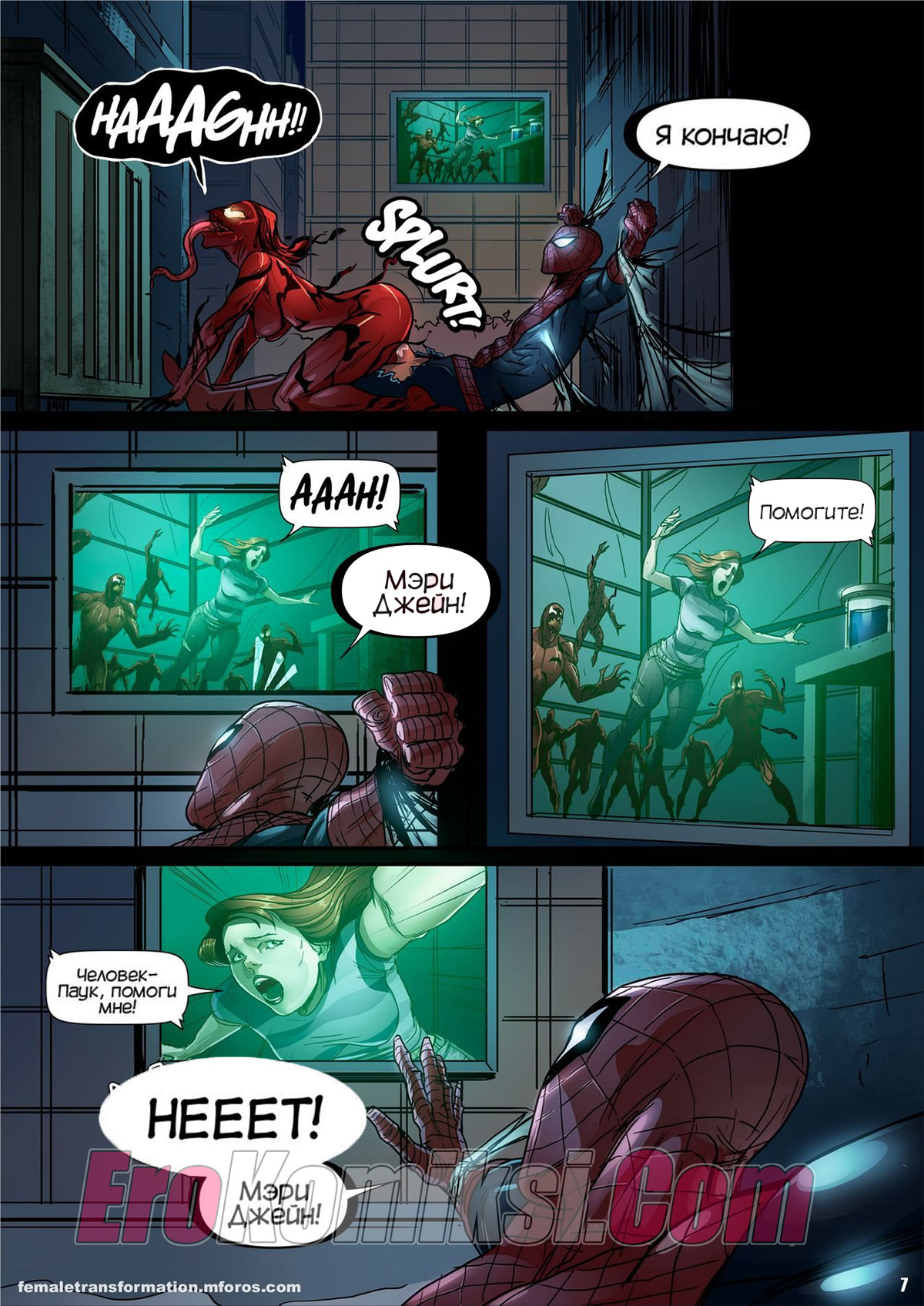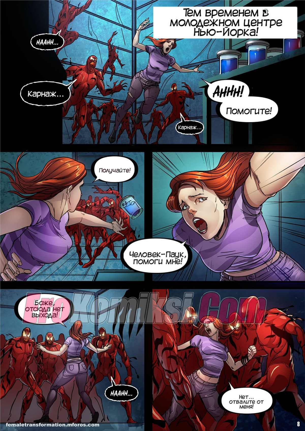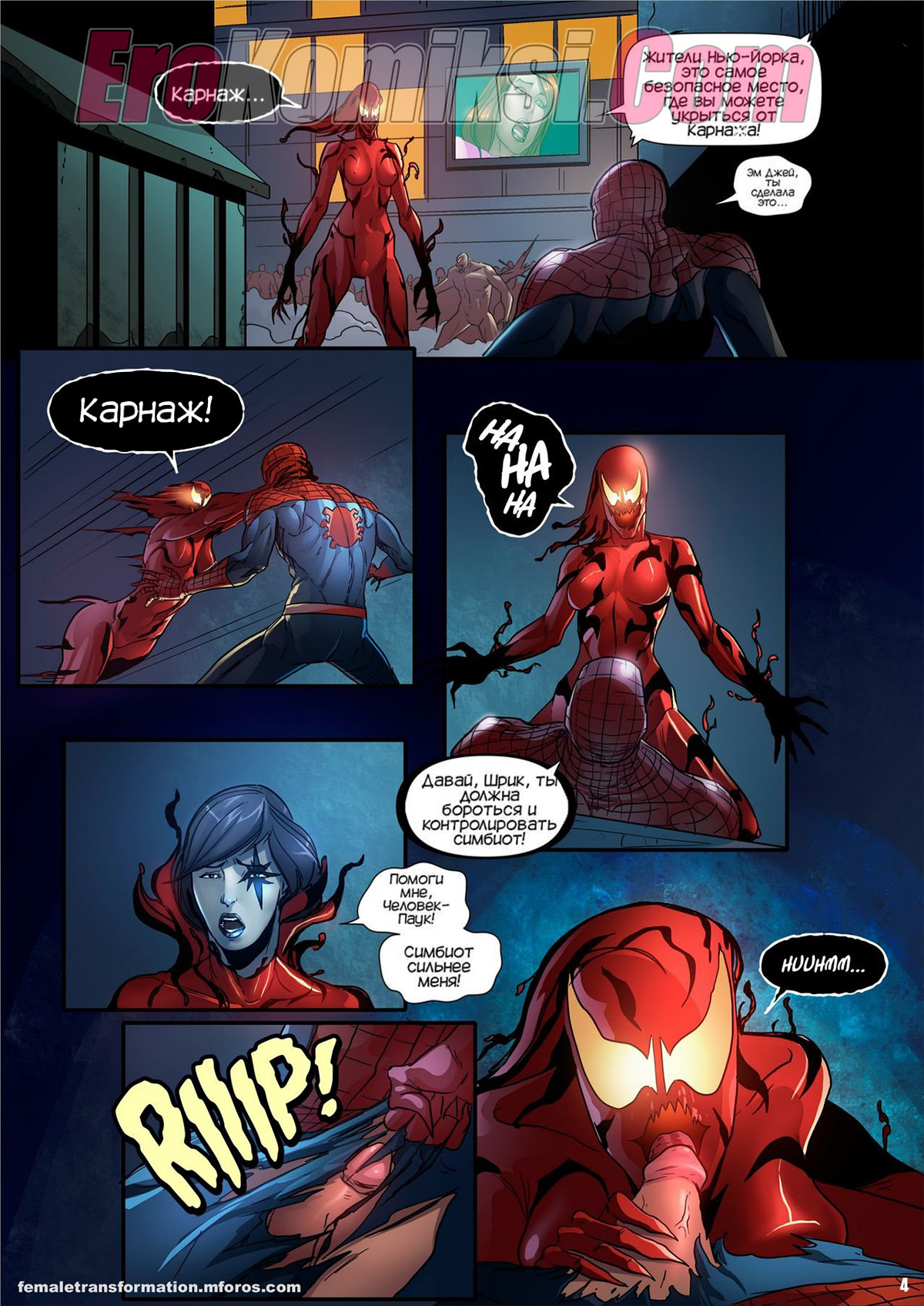Порно комикс Веном. Королева симбиот. Часть 1. Symbiote Queen. 6Evilsonic6 На город напал симбиот Карнаж и стал захватывать жителей. Пока ЧеловекПаук боролся с красоткой, на которую напал Карнаж, его подругу Мэри Джейн схватили и начали трахать ее в ротик и пизду, желая сделать королевой Карнажа.