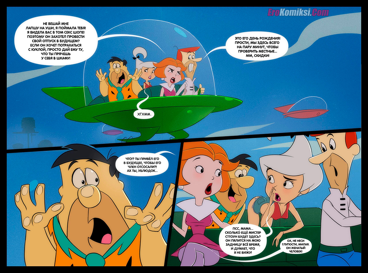 Порно комикс Ветсоны. The Wetsons. The Flintstones. The Jetsons. DatGuyPhil Парень пригласил своего друга к себе в будущее, чтобы он отлично провел свой день рождения. Во время поездки дочь и жена парня решили повеселиться с его другом и дали ему себя выебать.