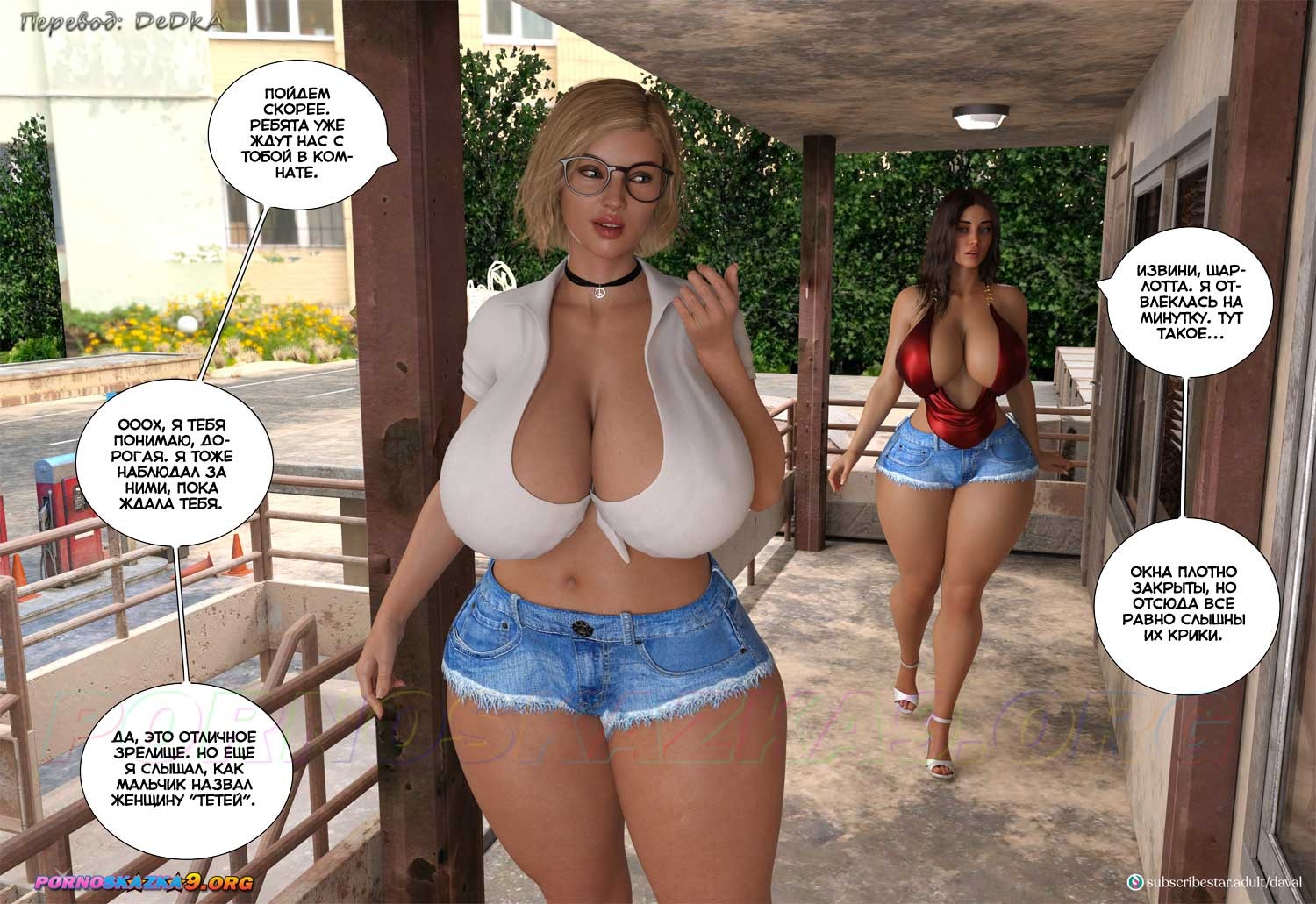 Порно комикс VIP-безумие. Вместе. Часть 3. Together. Daval3D Сисястая милфа осталась наедине со своим мужем и хотела потрахаться, но он уснул. К счастью красотки, домой с работы вернулся ее племянник, который позвал тетю в комнату, чтобы поебаться…