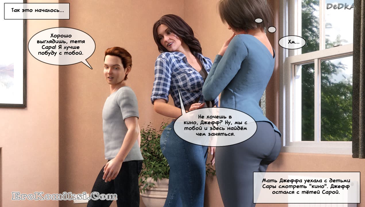 Порно комикс «Визит к тёте Саре. Часть 1».