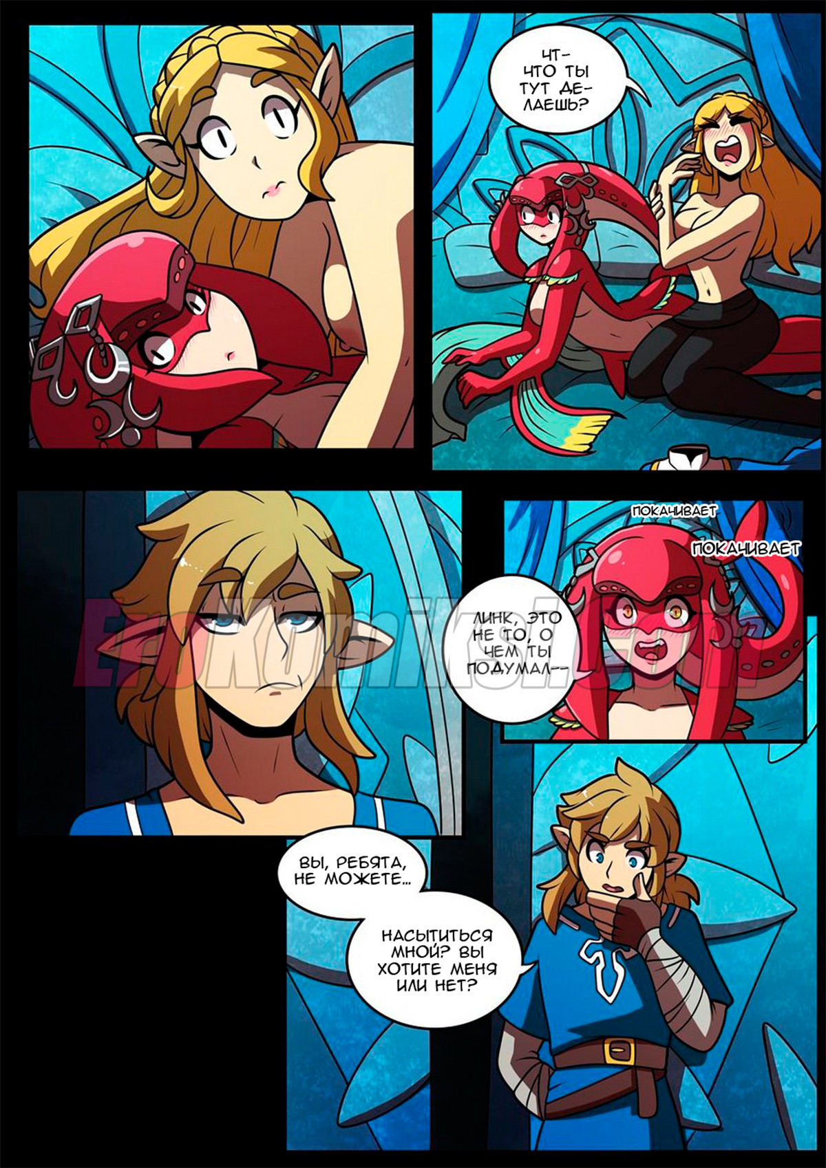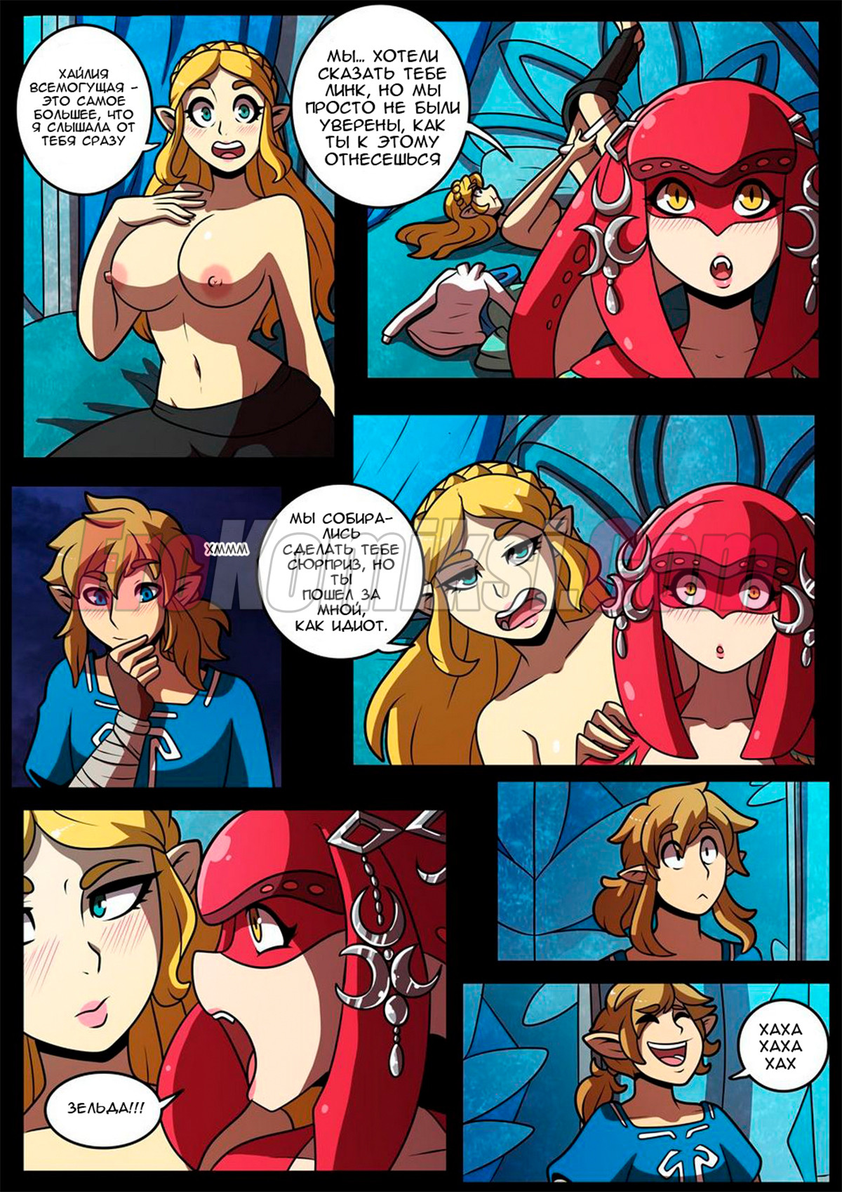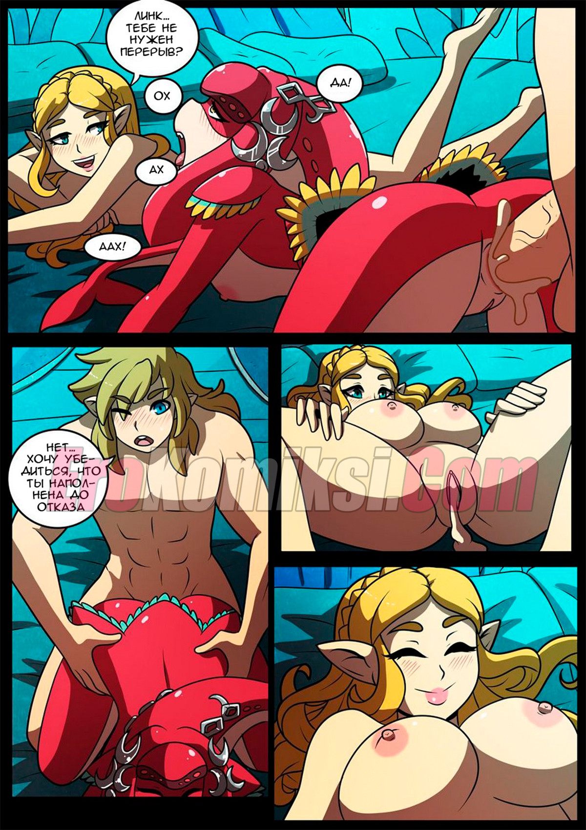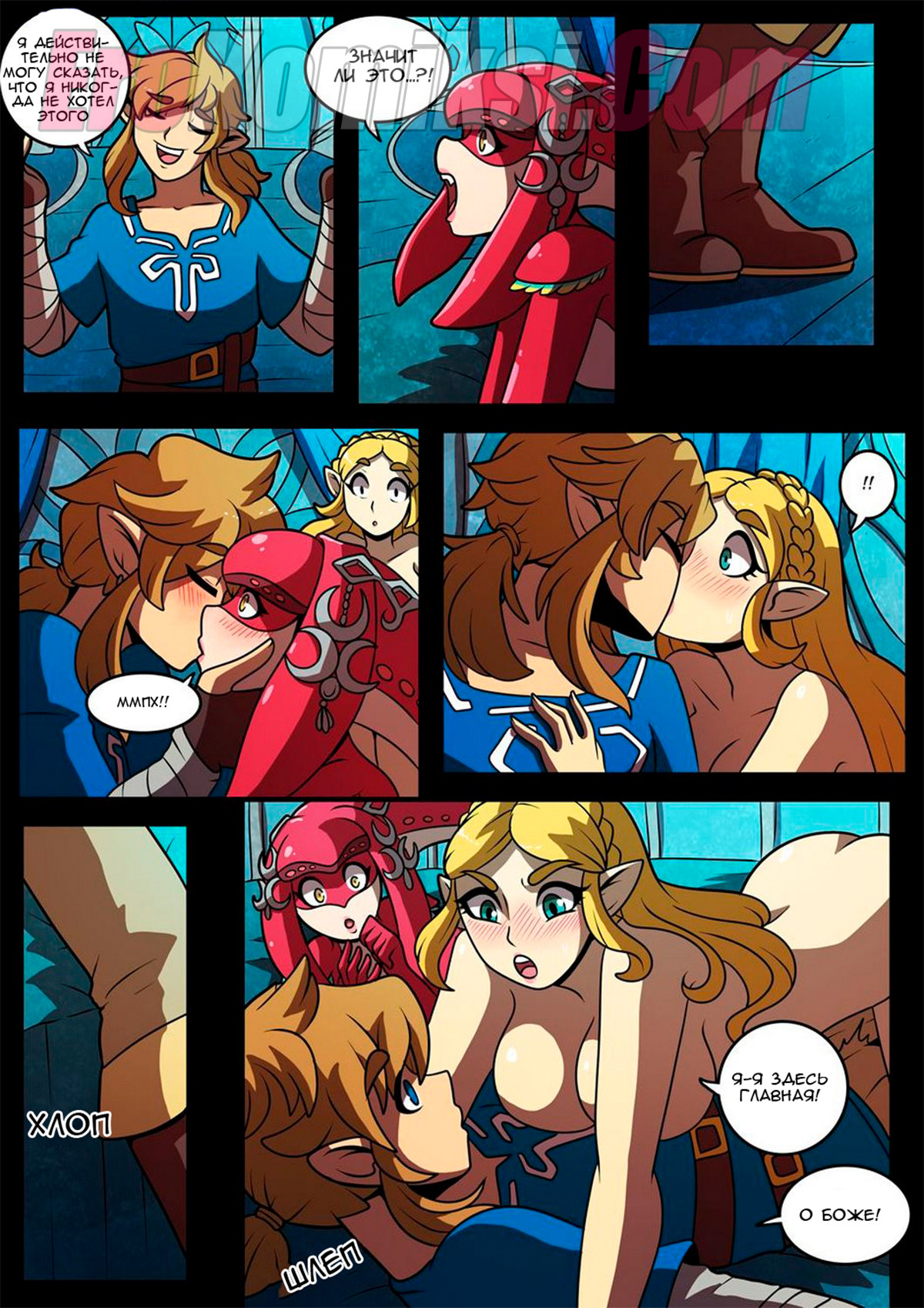 Принцесса Зельда и Мифа скрывали, что они тайно занимаются лесбийским сексом каждую ночь. И однажды в очередную ночь, когда все кроме них легли спать, они начали шалить и это увидел Линк, который сразу же…