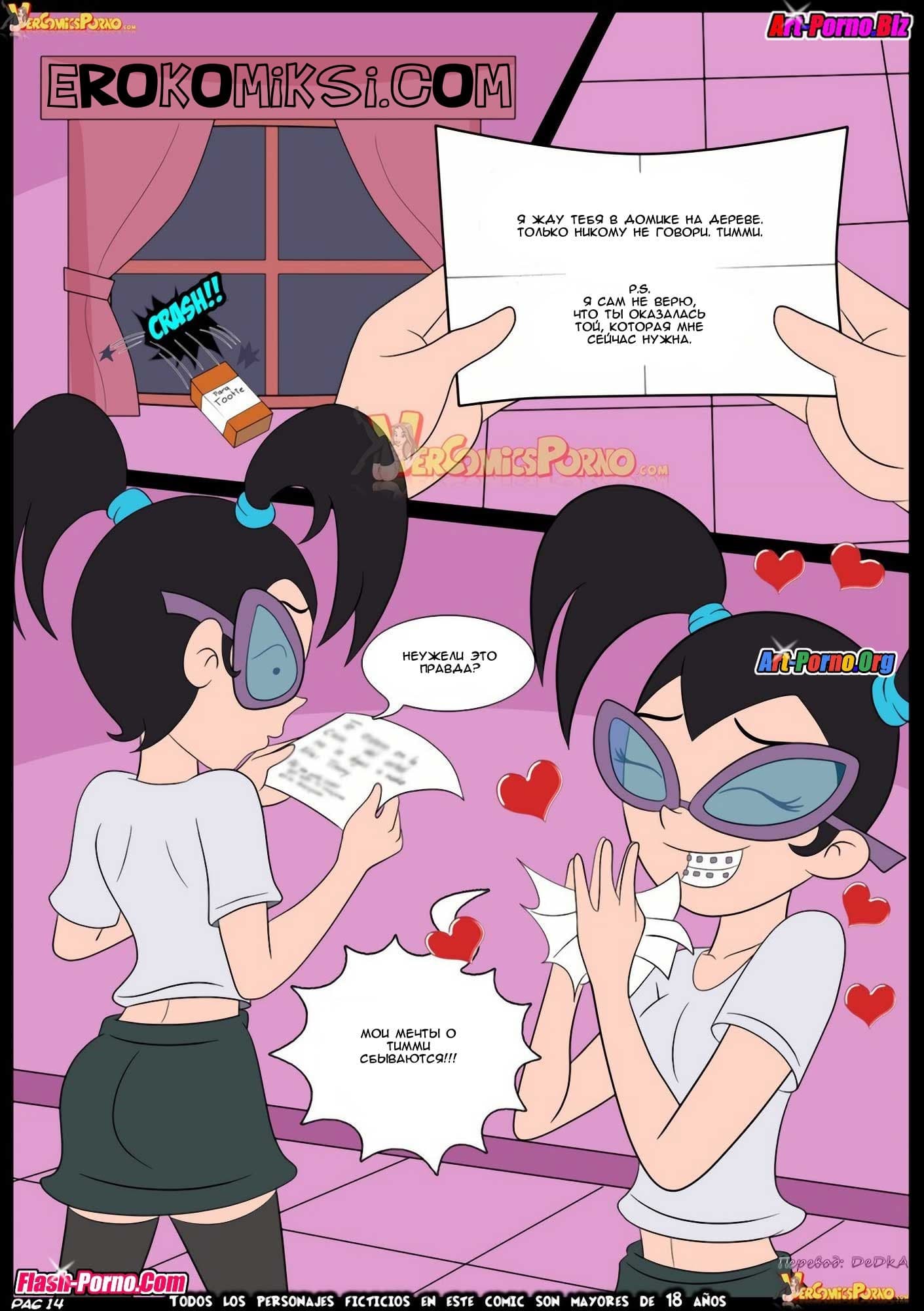 Предлагаем вашему вниманию очередной порно комикс волшебные родители, и это уже 3 часть данной порнографической пародии на мультфильм. Как вы помните из предыдущей истории, мамочка Тимми уехала за пьяным главой семьи. Дабы парень просто так не слонялся, она попросила стервозную Викки присмотреть за ним до своего возвращения. Для Тимми такая компания не сулила ничего хорошего, пока он не набрался наглости и не попробовал злую, но очень симпатичную Вики немного приласкать языком ниже пупка. Тут – то и начинается самое интересное! Осторожно, комикс вызывает сексуальное напряжение…
