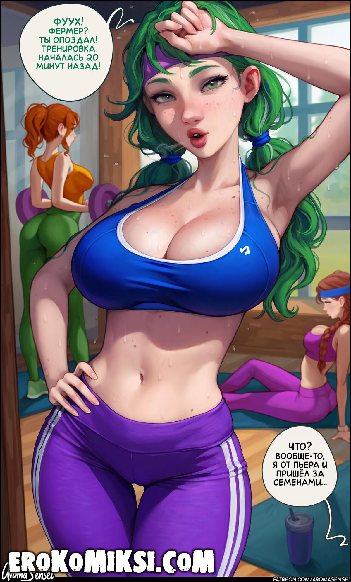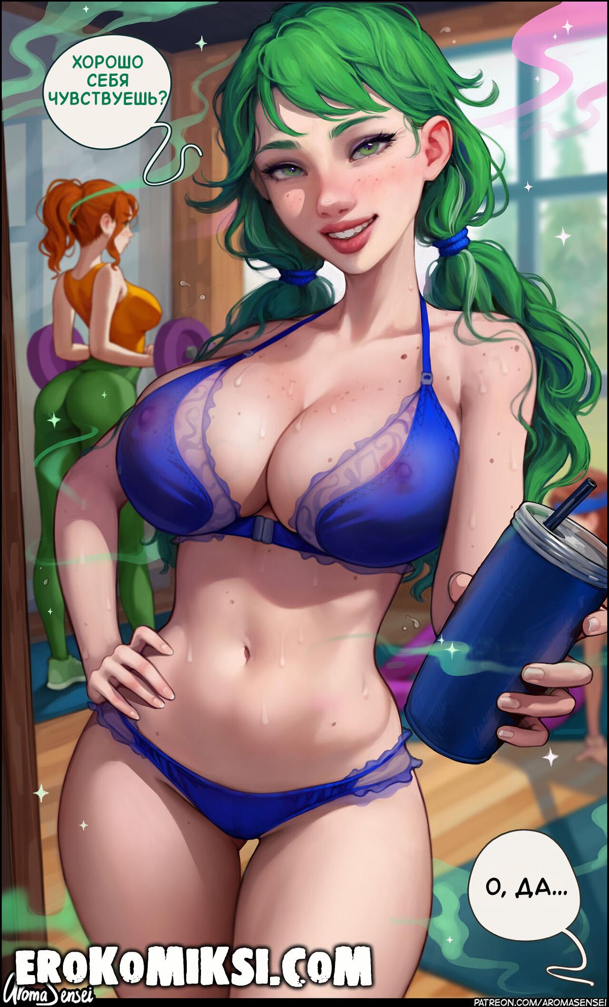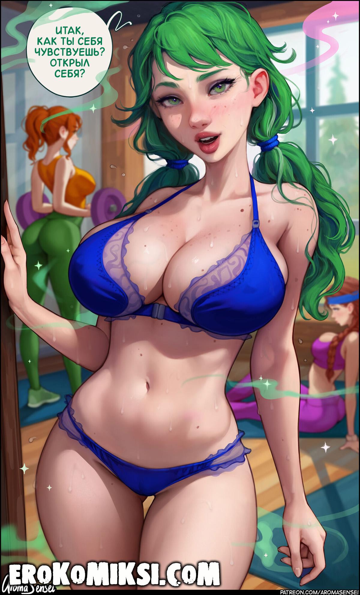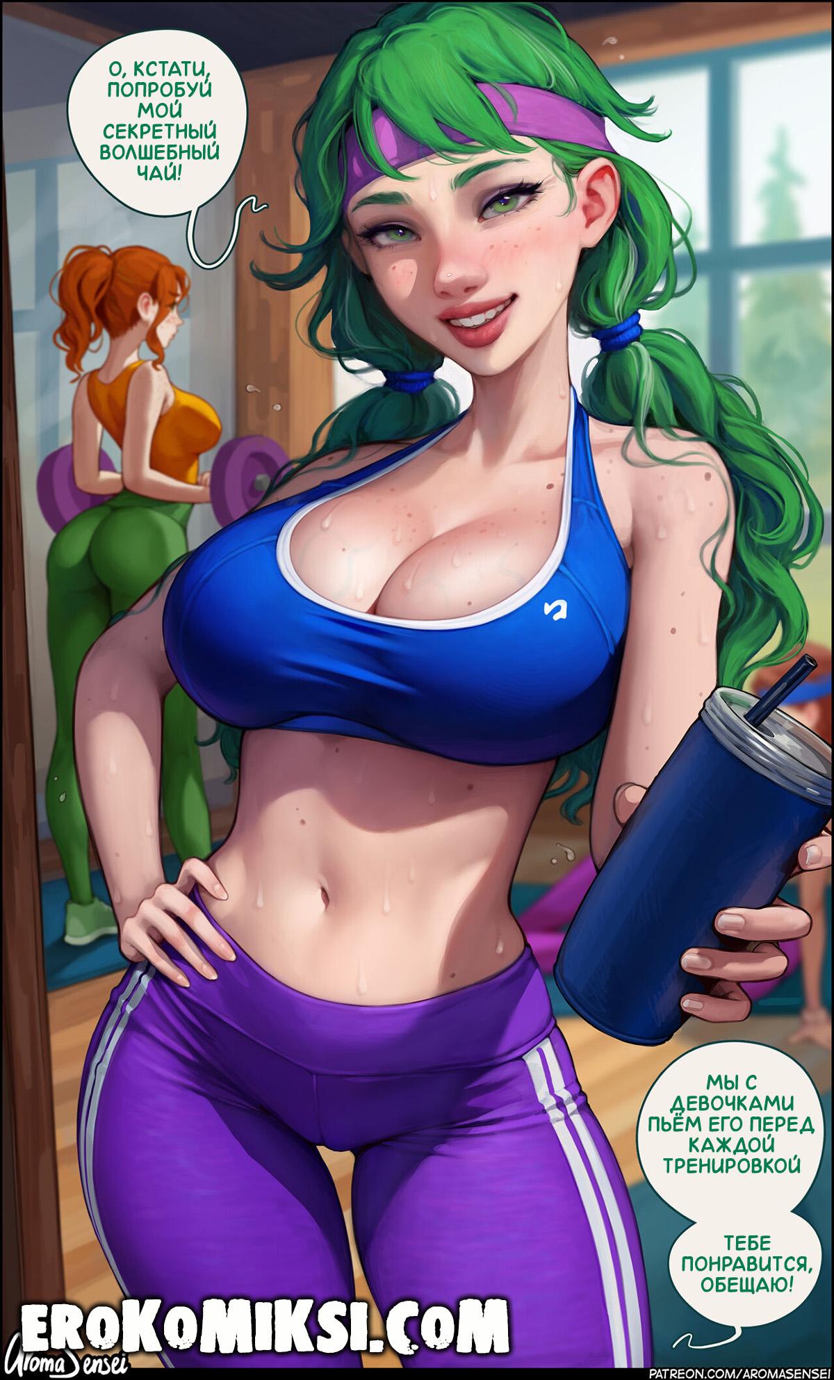 Порно комикс Волшебный Чай. Aroma Sensei. Молодой парень с фермы приехал по адресу, который ему дал его знакомый, чтобы купить семена, но попал в фитнесс-центр вместо магазина семян. Сисястая тренерша угостила паренька особенным волшебным чайком, от которого у парня открылась способность видеть сквозь одежду. Помимо этой способности, от запаха чая все очень сильно возбудились и как итог, паренёк трахнул красотку тренера…