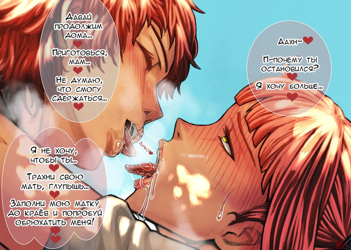 Порно комикс Возвращение домой. Часть 2, 3 и 4. Понедельник, вторник и среда. После момента, когда точка невозврата была пройдена, а черта морали пересечена, возбужденная мать и любящий сын не прекращали сластиться родственностью их сближавшихся тел. Короче, они теперь трахаются днями напролёт. Пока что мы сможем лицезреть лишь три дня недели из их бурной жизни: Понедельник, вторник и среду…