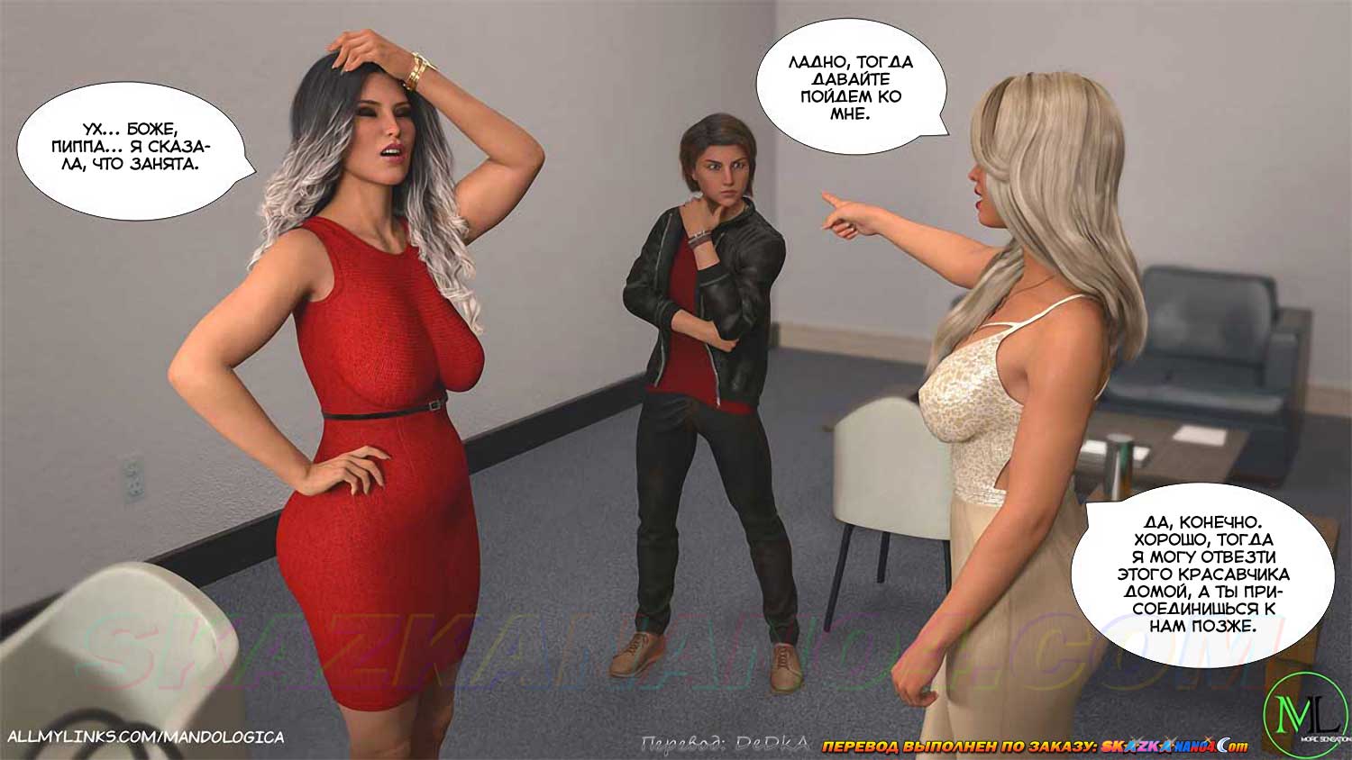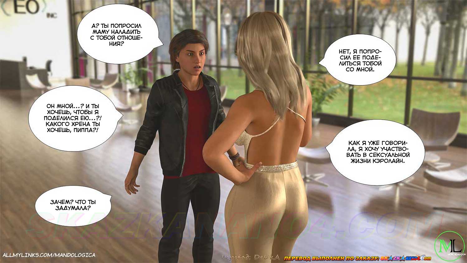 Порно комикс Все вместе. Часть 18. Пиппа не оставляет попыток решать проблемы бизнеса подкладывая Кэролайн под нужных людей. Кэролайн отказывается выполнять такую функцию, и Пиппа решает добиться своего с помощью Мартина…