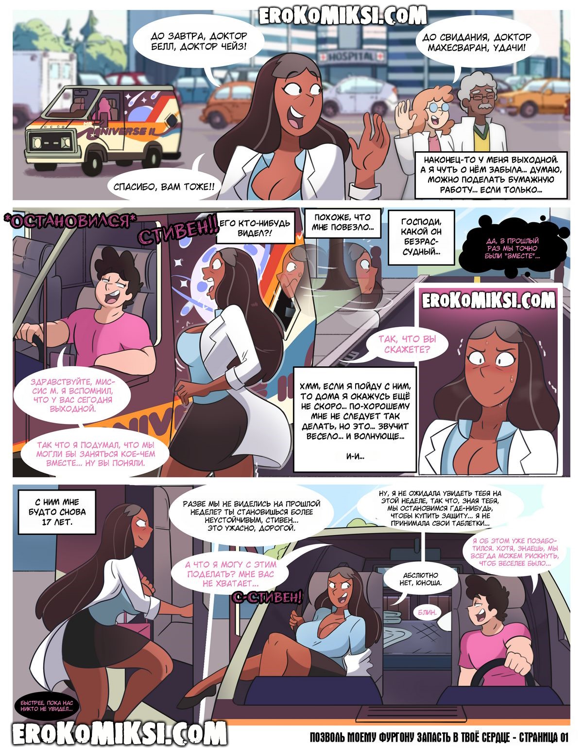 Порно комикс Вселенная Стивена. Позволь моему фургону запасть в твоё сердце. После тяжёлой рабочей недели, Приянка Махесваран решила провести свой выходной со Стивеном. Сначала они отправились любоваться пляжем, а потом трахались прямо до вечера…