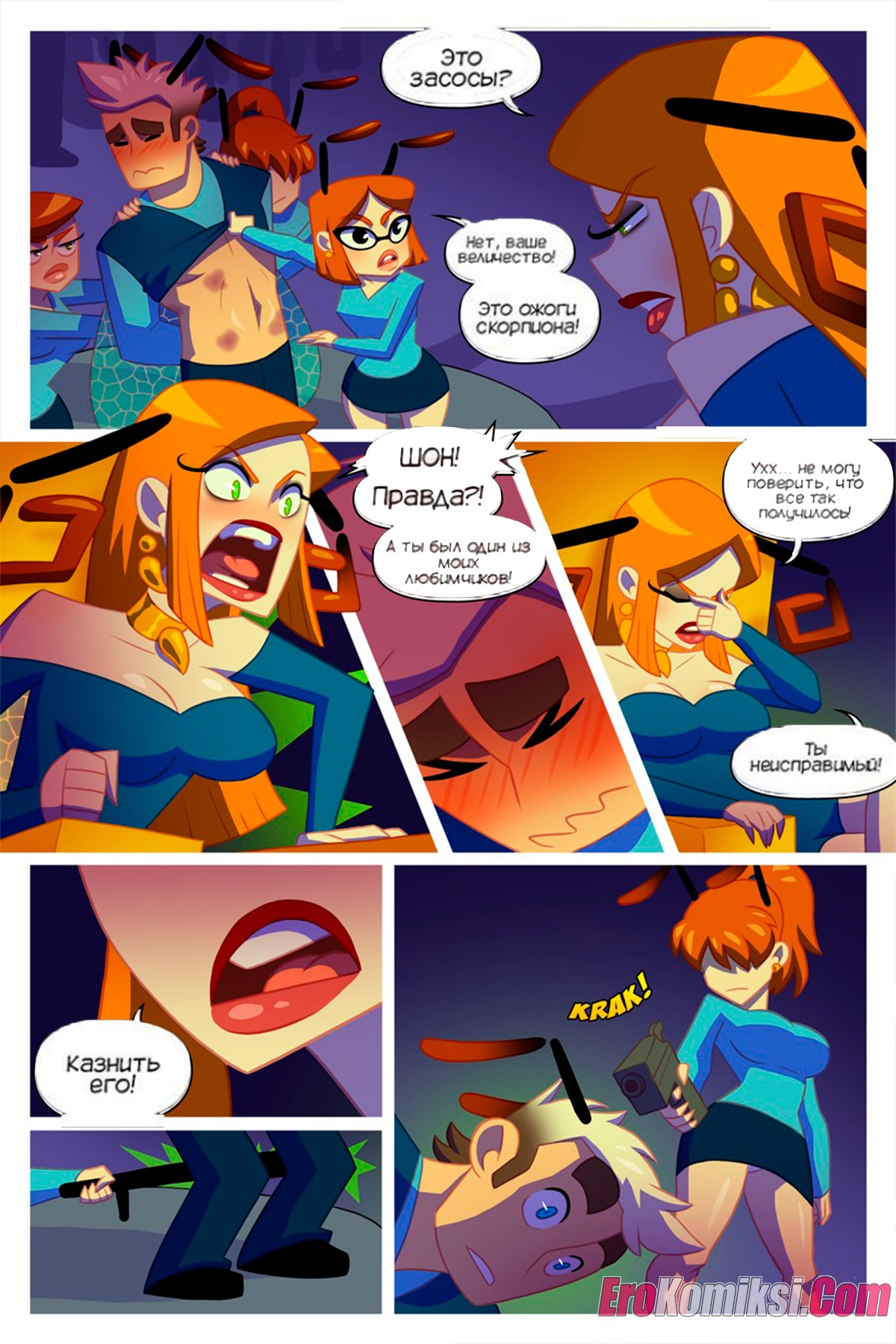 Порно комикс Выбрать свой яд. Pick Your Poison. Gutsy Парнишку хотели казнить за то, что он трахался с другой дамой, кроме своей королевы. Парню удалось сбежать к своей госпоже, которая хорошенько с ним поебалась, а затем предложила ему остаться у нее.