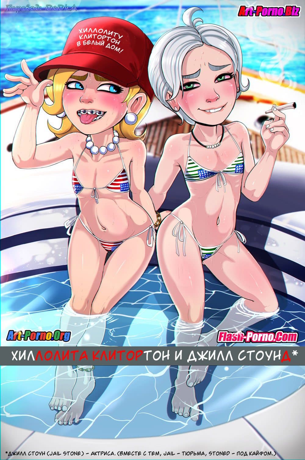 Обожаете смешные порно комиксы? Перед вами Срочный выпуск! Посвященный дню выборов президента США, или, как на самом деле обстояли дела в «самой великой стране» мира! Идет не шуточная борьба за голоса избирателей. Претенденты на самый важный пост обещают трёмстам миллионам жителей, в случае своей победы, вернуть всё в теплый взад!!! Героиня Хиллолита Клитортон, в которой вы узнаете известную женщину борется за свое место под солнцем, но каким образом…