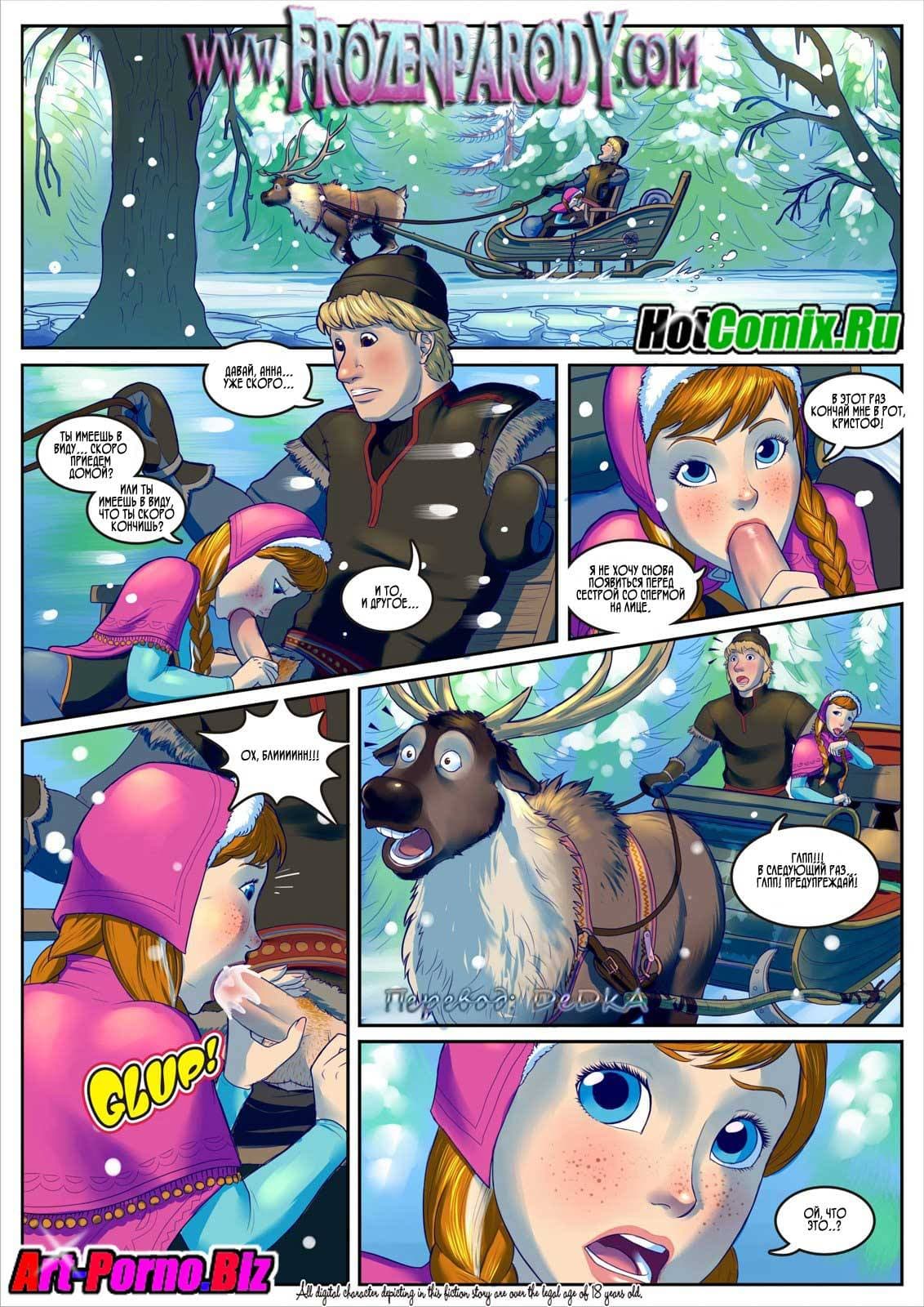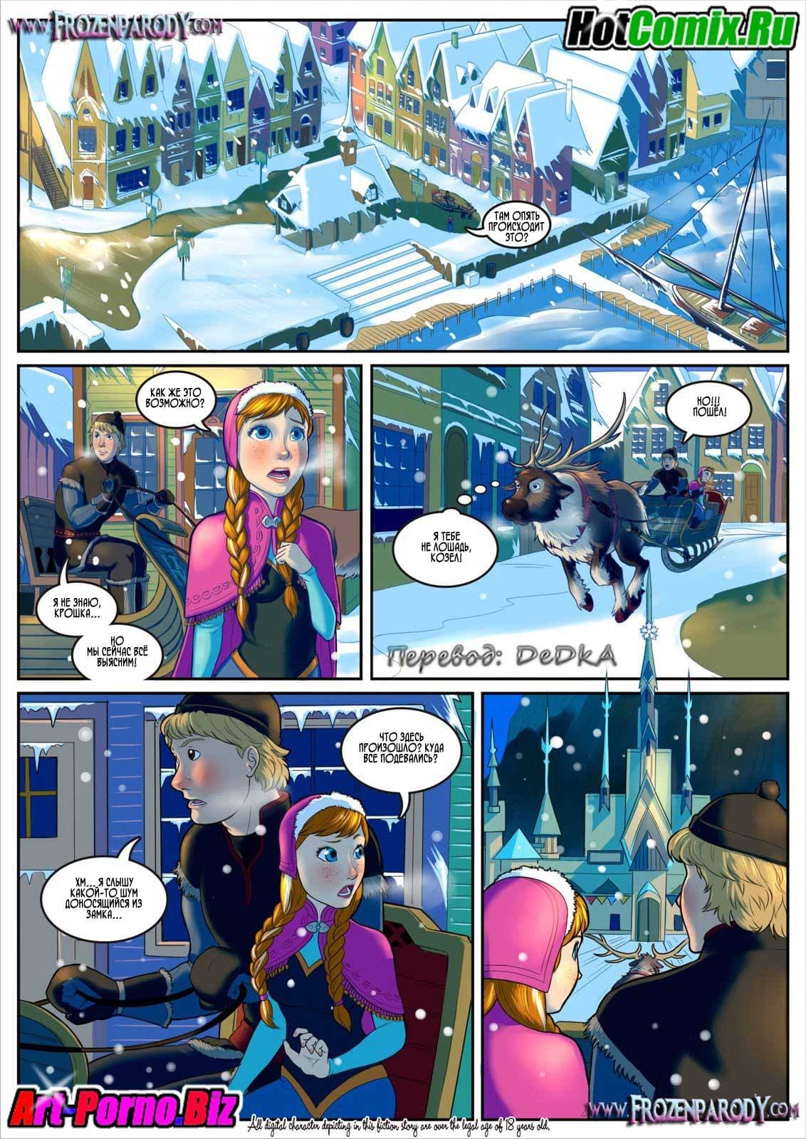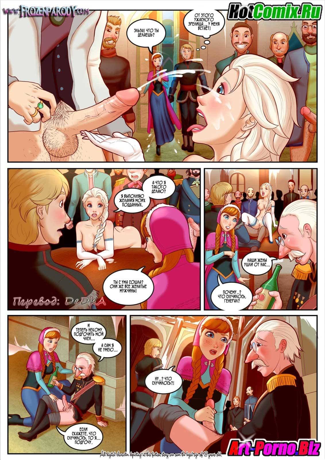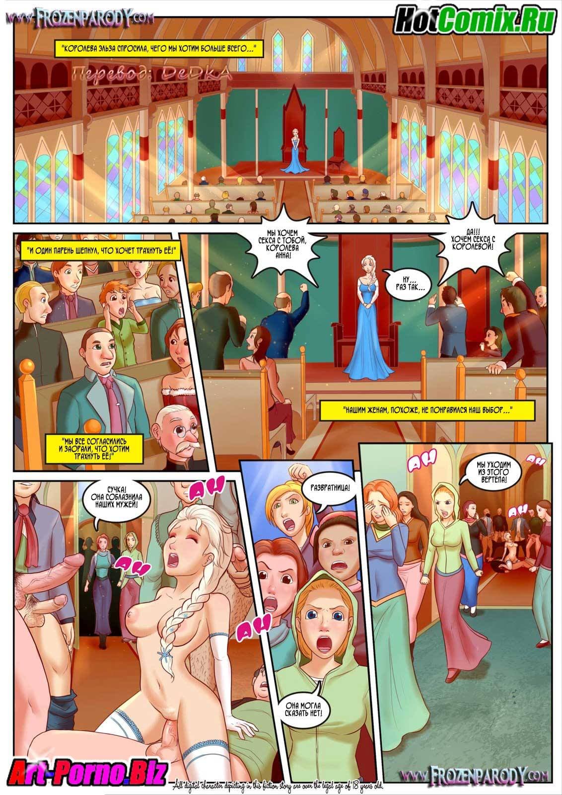 Тем, кто любит порно комиксы пародии, предлагаем посмотреть данное произведение по мотивам Диснеевского мультфильма «Холодное сердце». Королева Эльза захотела узнать самые потаенные желания своих подданных и по мере возможностей исполнить их. Все мужчины ее королевства однозначно пожелали заняться сексом со своей королевой. И в тот момент, когда Эльза воплощала мечты подданных в жизнь, в самый разгар оргии прибыла сестра королевы Анна, и её возлюбленный по имени Кристоф.