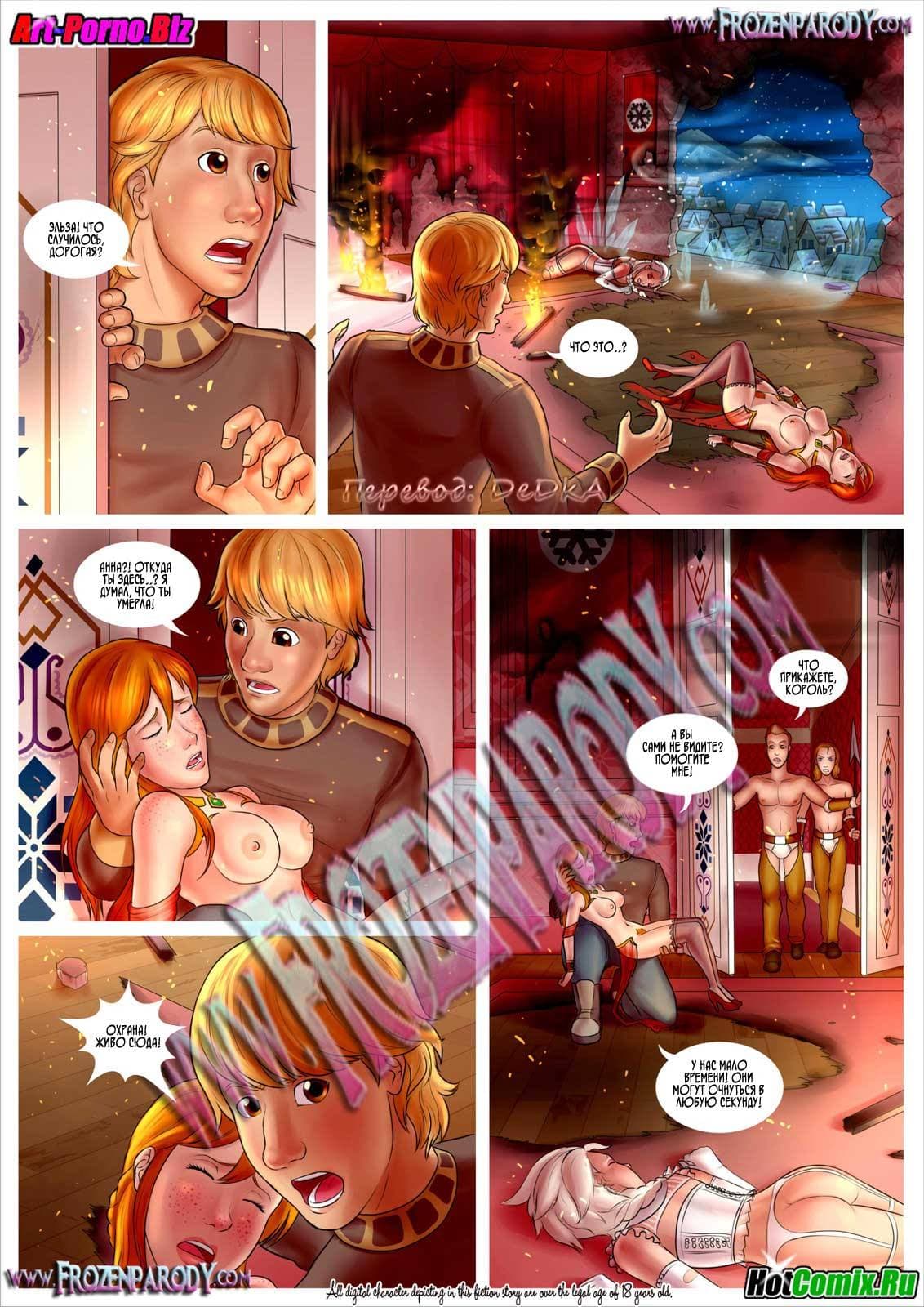 Секс комикс холодное сердце продолжается. Злобная королева Эльза, заточив в темницу свою сестру Анну, коварно женила не себе ее мужа Кристофа. И стала она довольно поживать, но не тут-то было, потому что в ее покой ворвалась освободившаяся Анна, и она была в ярости. Между колдуньями началась магическая битва, но как выяснилось позже основной проблемой для них был Кристоф пожелавший много власти, усмирить которого сестрам удалось только с помощью анального секса, причем трахаться с ним им пришлось обеим сразу.