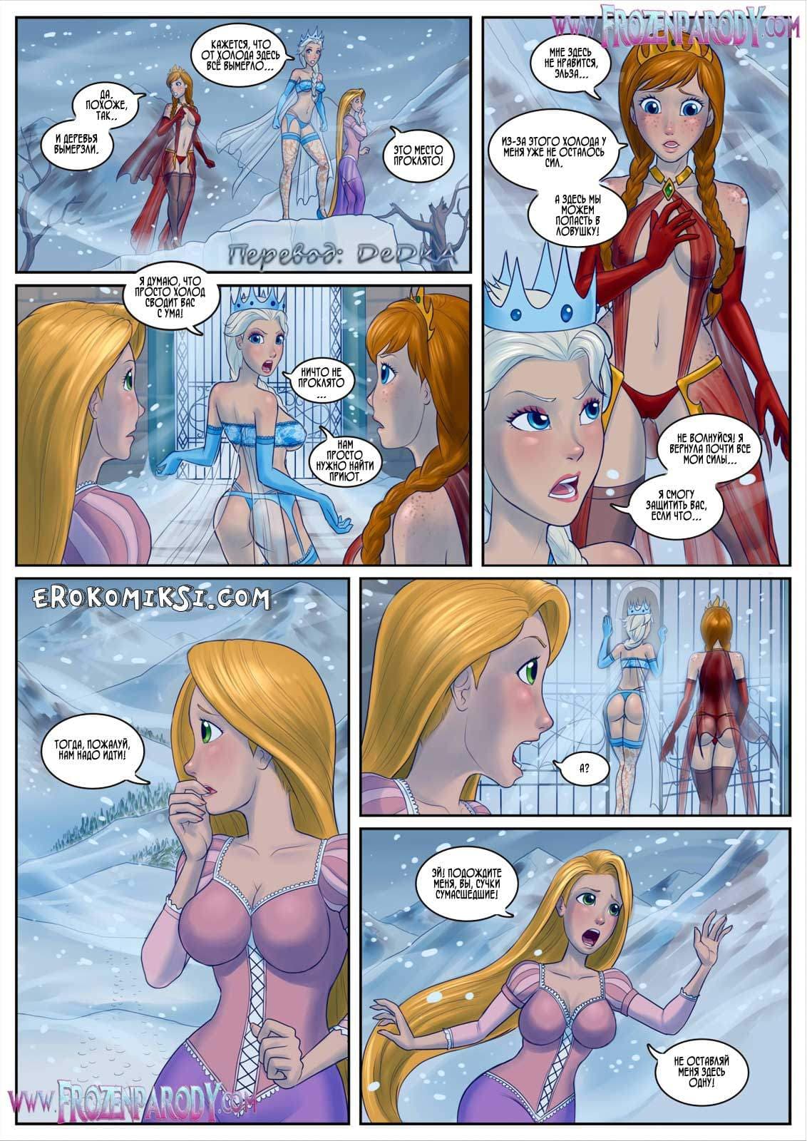 Секс порно комиксы Диснейв 6 части вновь поведают нам о том, как Эльза с двумя спутницами вдали от своего замка в непроходимых снегах пытается напасть на след мятежников. Но спутницы Эльзы не такие «морозоустойчивые», как она, они обычные женщины и им холодно! Вдруг перед ними появился замок, и троица решила, что там они смогут передохнуть. Однако, в замке они увидели то, чего никак не ожидали…