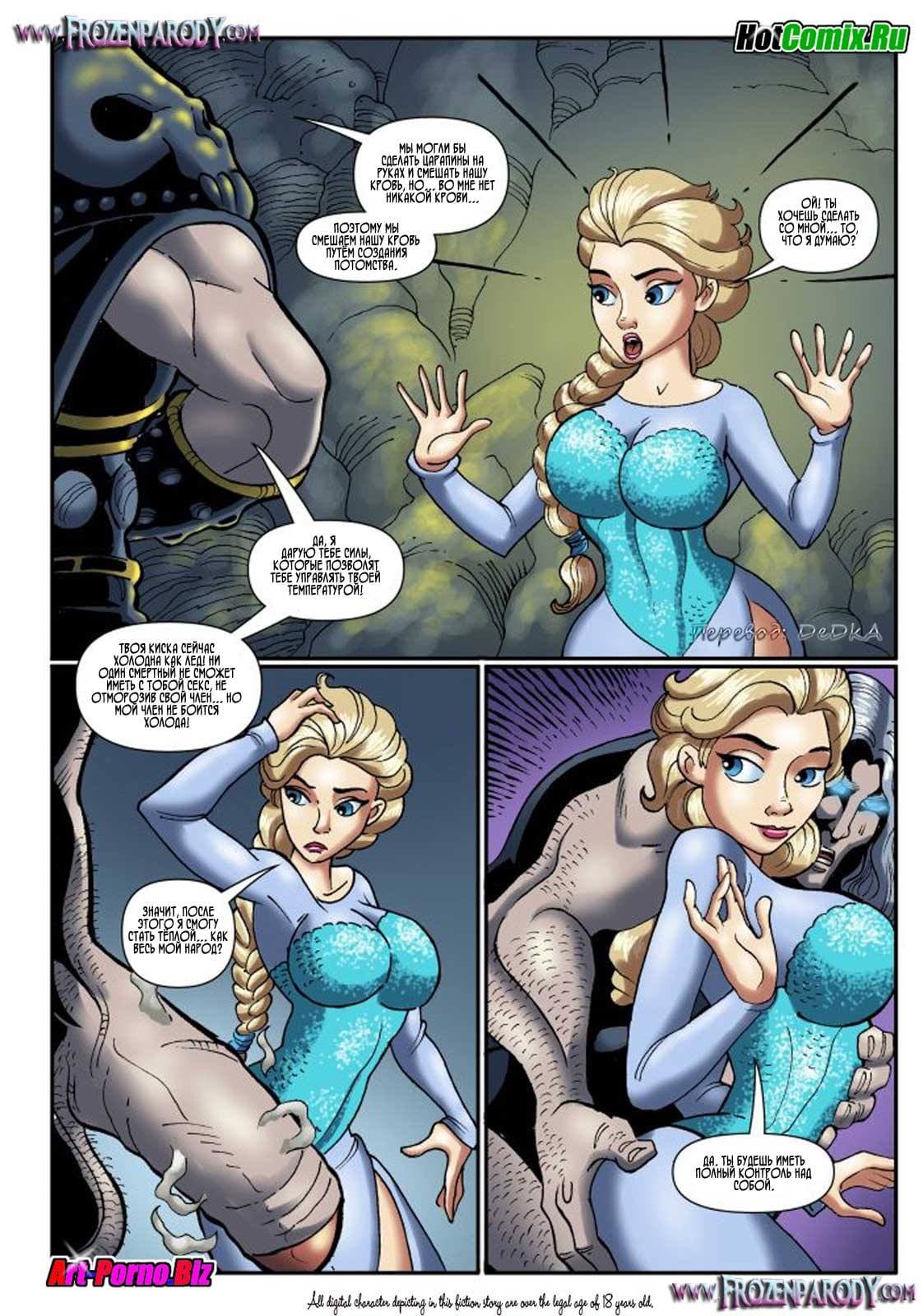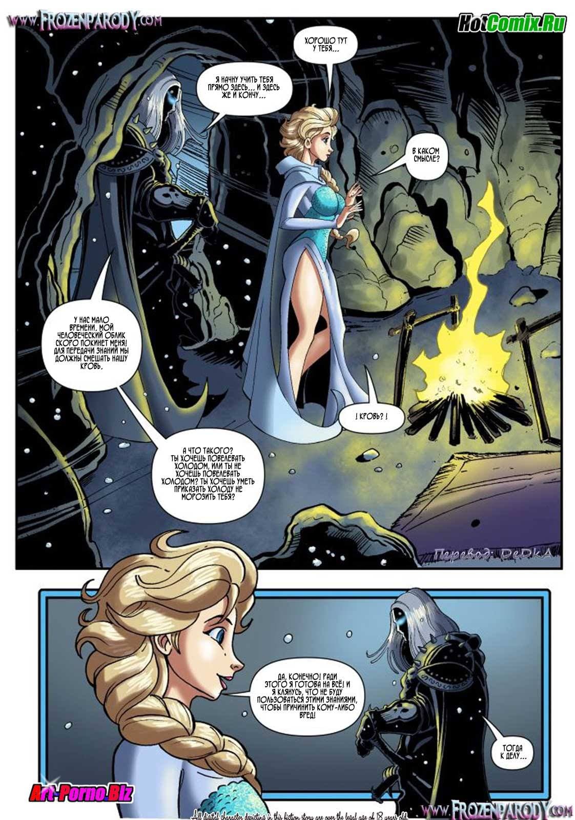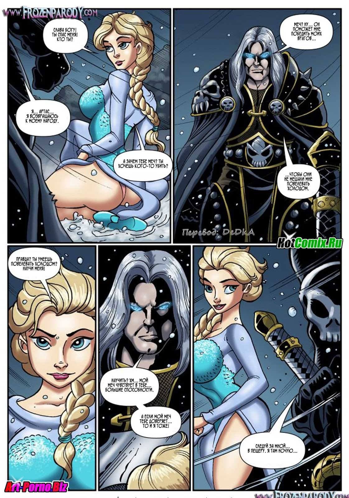 Представляем еще одну сексуальную пародию на Диснеевский мультфильм «Холодное сердце». Речь в данном порно комиксе, главной героиней которого является Эльза пойдет о том, как королева заблудилась в лесу, но там же она встретила колдуна по имени Артас, который пообещал Эльзе сделать ее киску теплой, как у всего ее народа. Но сделать это можно только через половой акт. Королева соглашается, но она даже не представляет, что ее холодную пизденку будет использовать маг с толстым членом в своих корыстных целях.