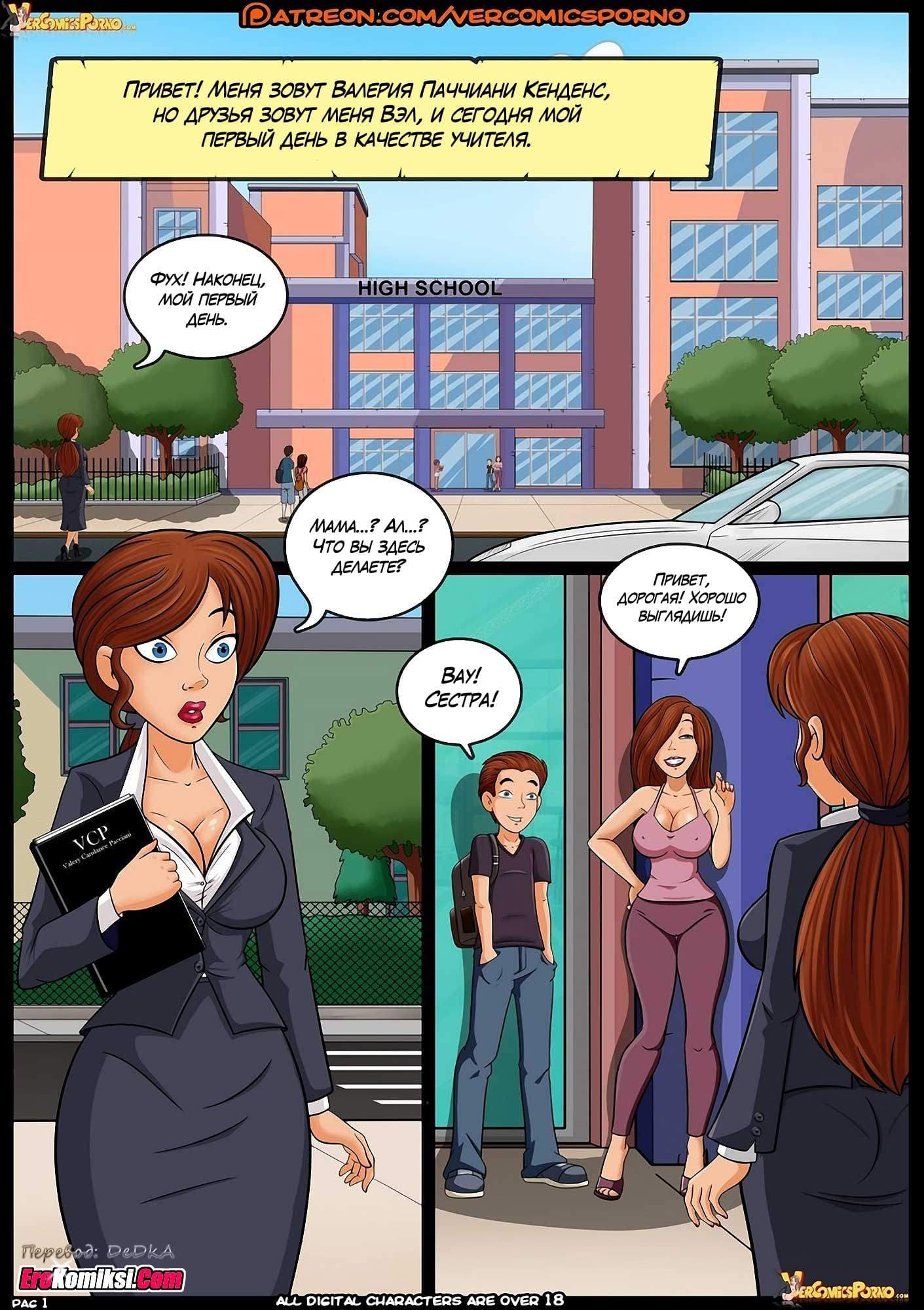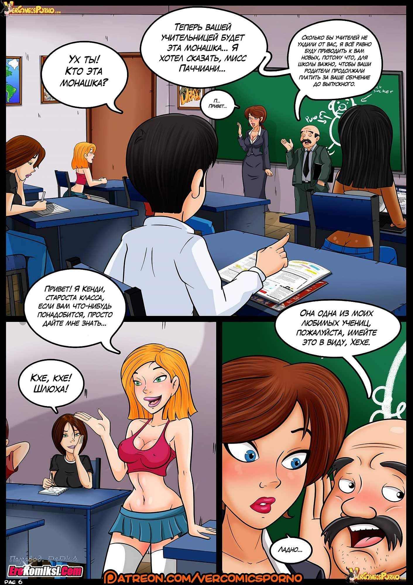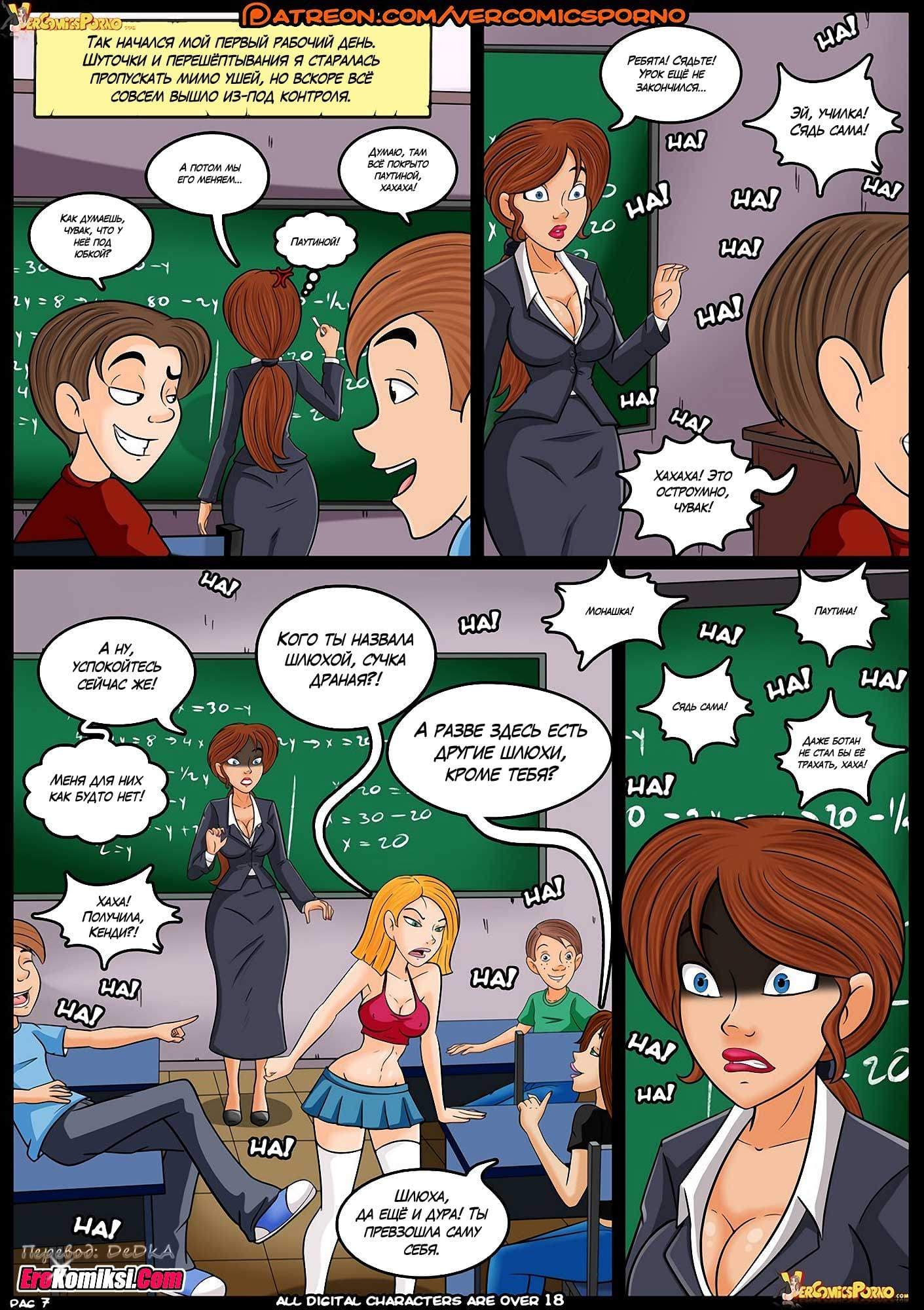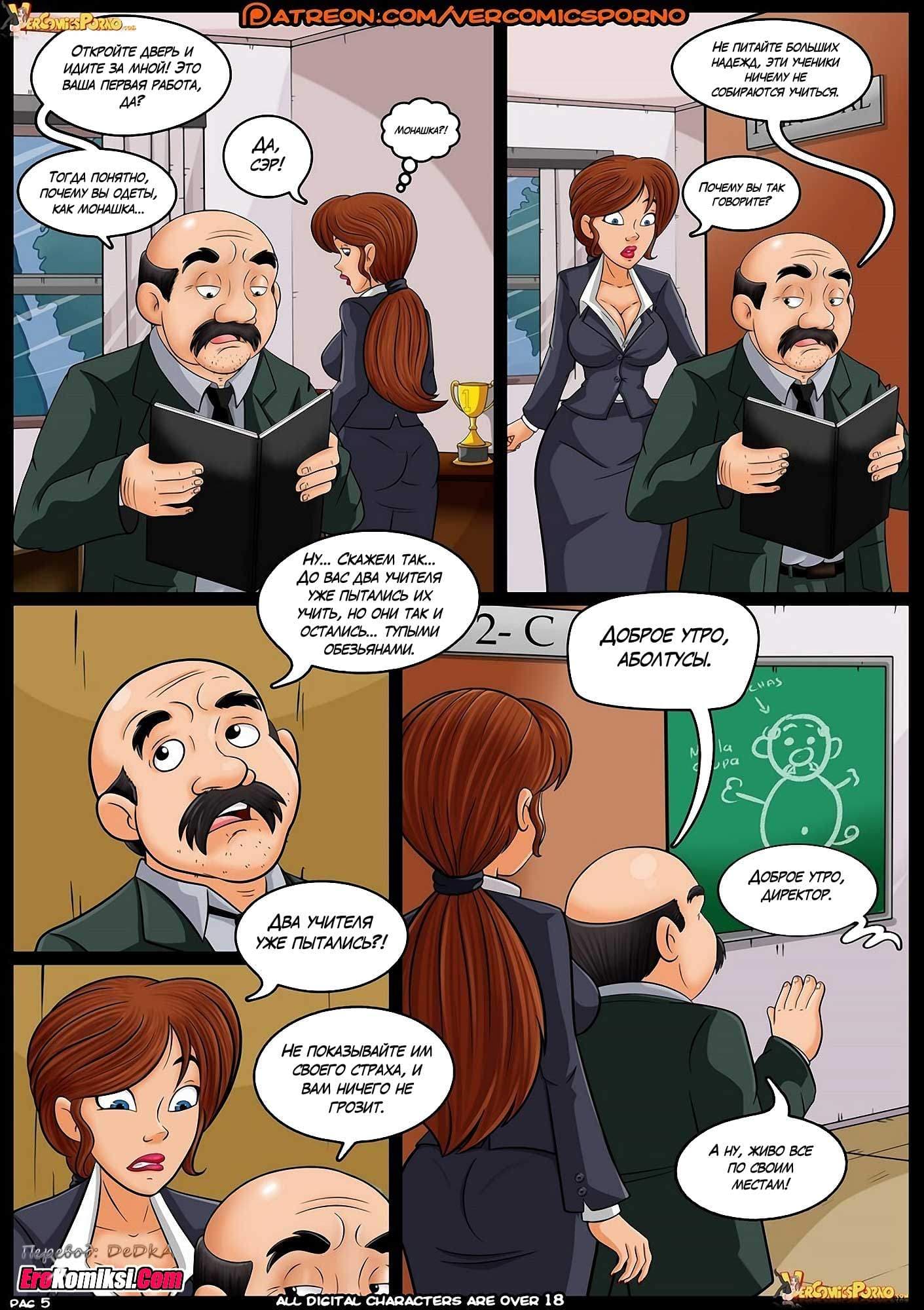 Порно комикс Хроники Валерии расскажет вам о том, как Валерия с самого детства мечтала быть учительницей. И вот её мечта осуществилась. Она была принята на работу в школу. В свой первый рабочий день она оделась так, как по её мнению и должна быть одета учительница. Но её наряд оказался таким строгим, что даже директор при первой беседе с ней случайно проговорился, что она одета, как монашка. А в классе её ждала ещё большая неожиданность…