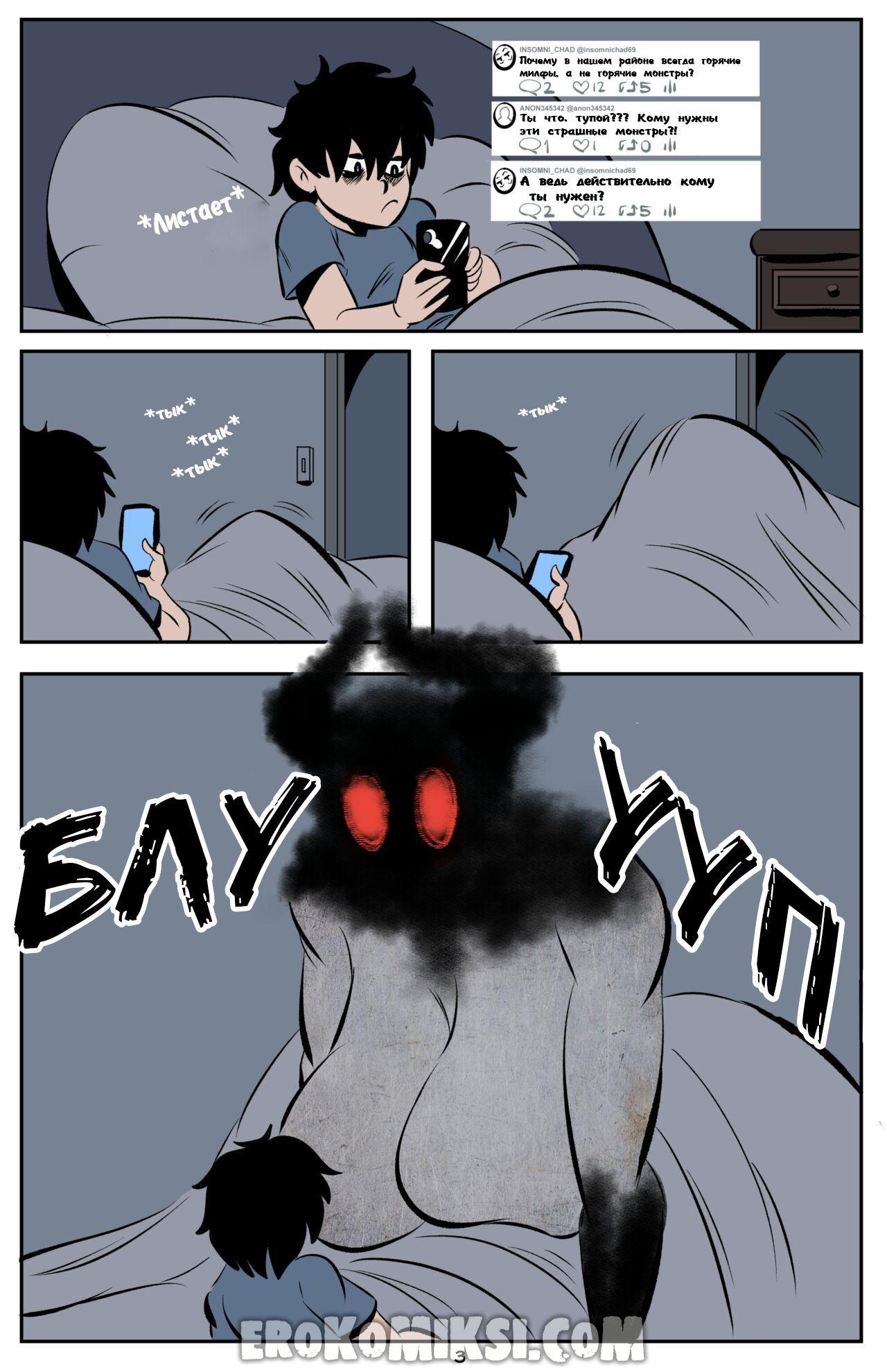 Порно комикс Я буду спать столько сколько нужно. Студенты обсуждали местную легенду о том что если не спать всю ночь то к ним придет монстр. И смельчаку , что проверял это, крупно повезло встретить вместо страшного монстра, пышногрудую монстриху, что без колебаний занялась с ним сексом…