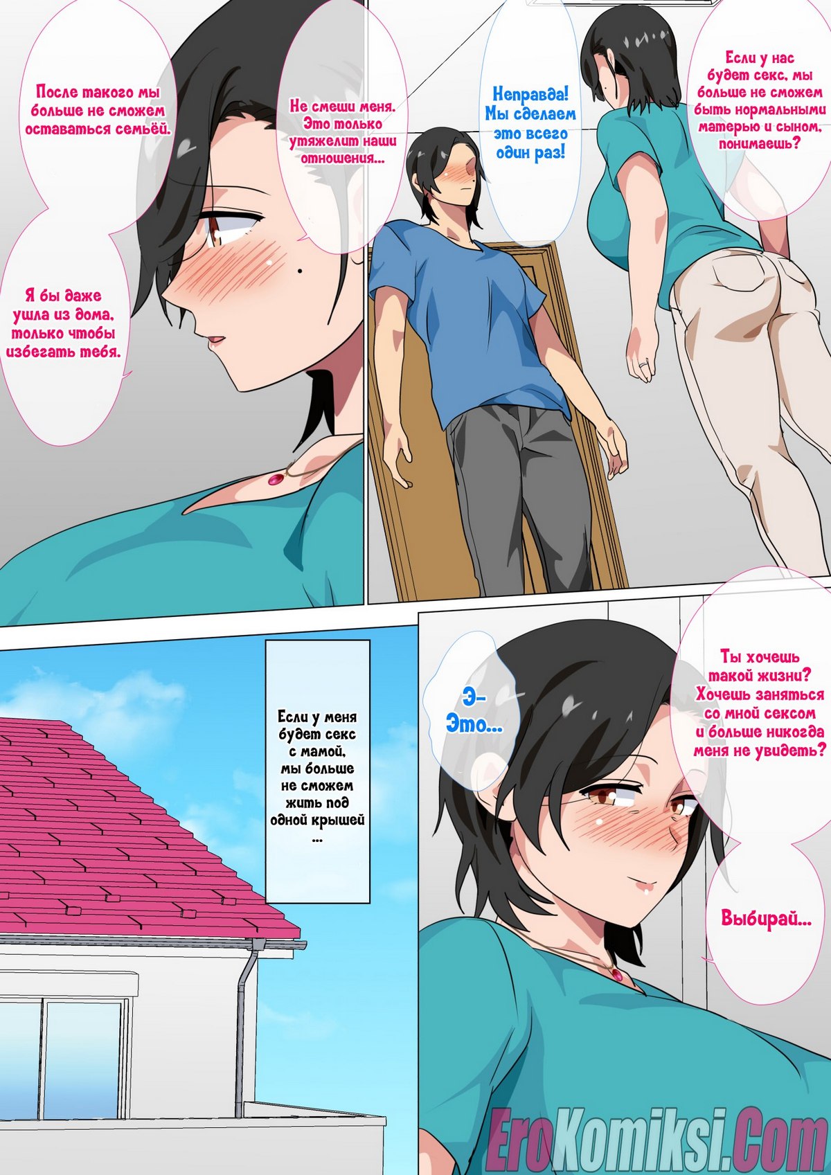 Порно комикс Я признался своей матери, и она позволила мне заниматься с ней сексом в течение одного дня. Главный герой признался матери в любви и попросил заняться с ним сексом. В ответ мать дала ему на выбор 2 варианта развития событий. Делаем вид, что ничего не было и продолжаем жить как обычная семья или сын получает что хочет, но мать после этого исчезнет из его жизни и семьи. Что же выберет главный герой?