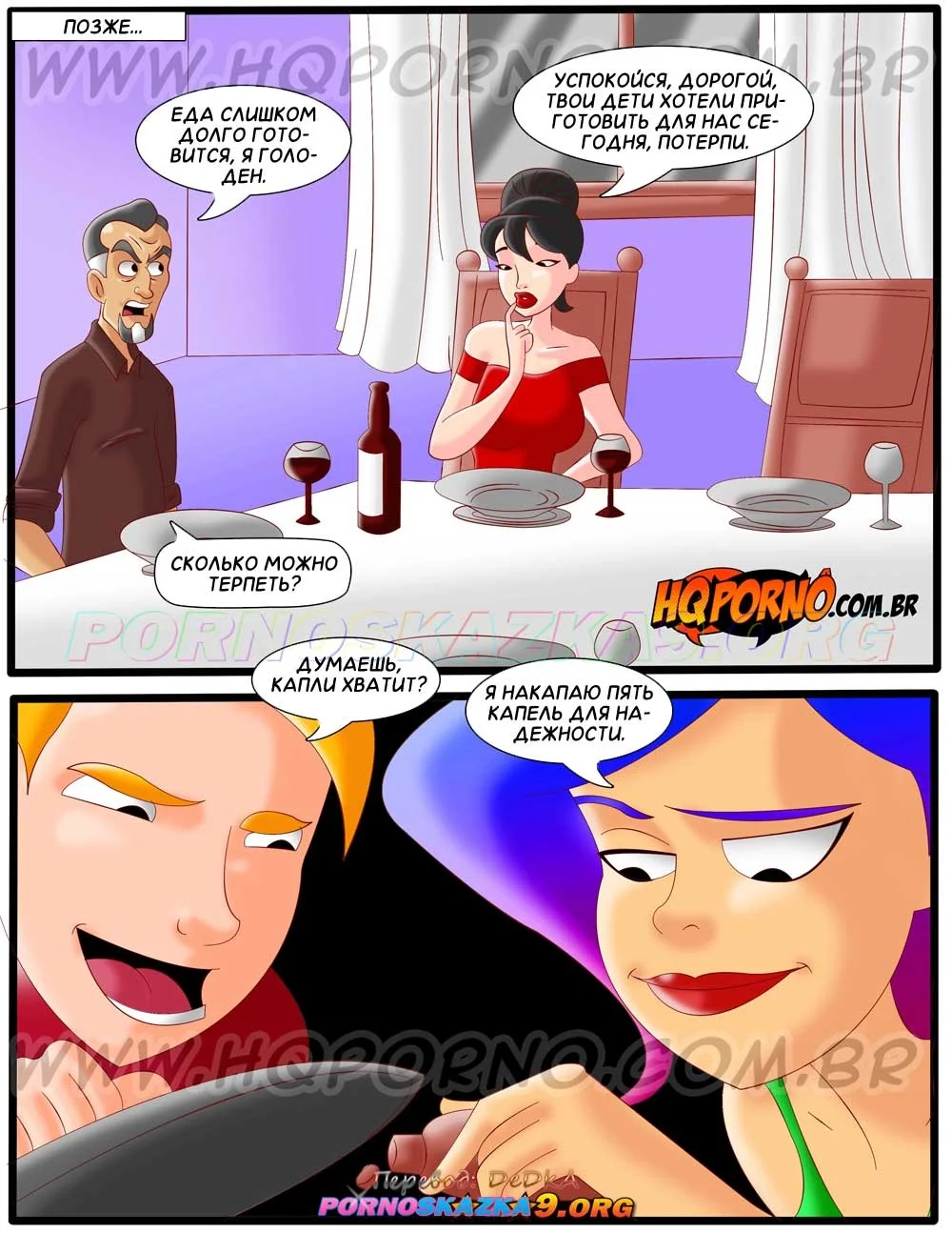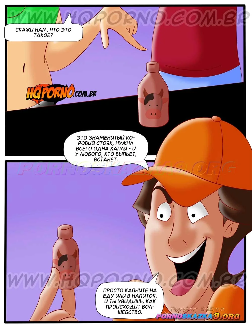 Порно комикс Юная нимфоманка. Часть 1: Коровий стояк. Отношения папаши Малу с его супругой складываются не самым хорошим образом, и у Малу появляется идея. Девушка с братом идут в секс-шоп и покупают популярный возбудитель под названием «коровий стояк». Принимать необходимо всего одну каплю, но Малу с Братом выливают в еду отца практически весь пузырек…