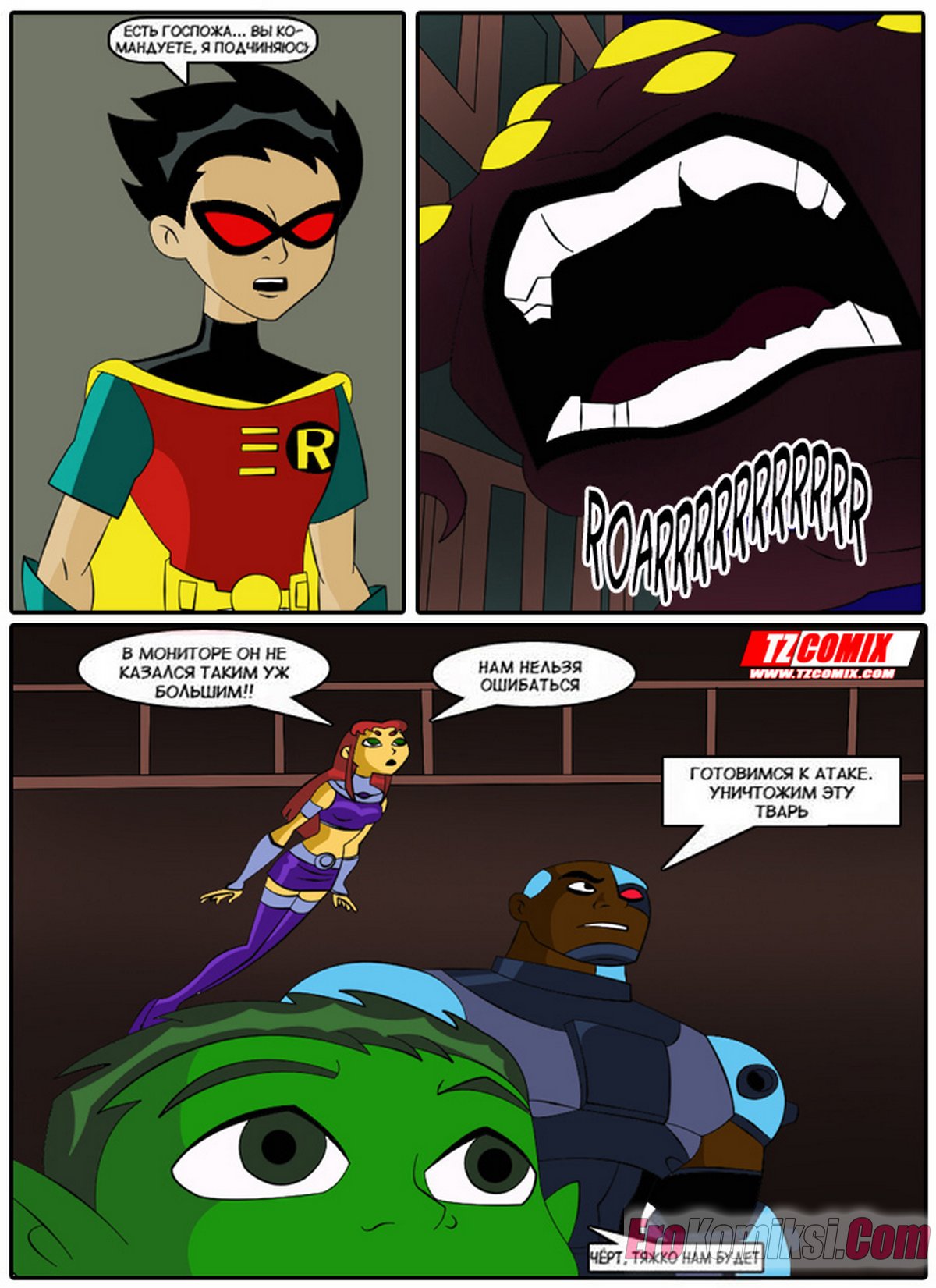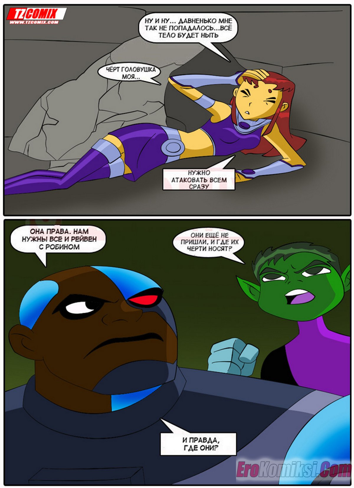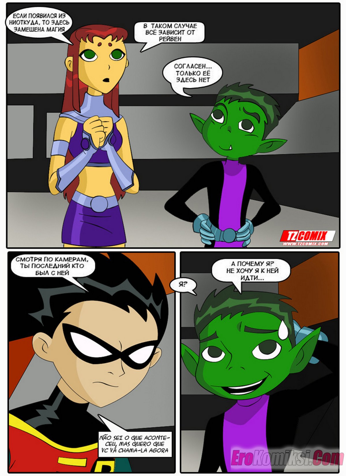 Порно комикс Юные Титаны. Часть 1. Turma Tita. HQPorno. TZComiX Горячие сисястые красотки из команды Юных Титанов любят ебаться. Они раздеваются перед парнями и соблазняют их своими шикарными телами, после чего дают им себя хорошенько выебать.
