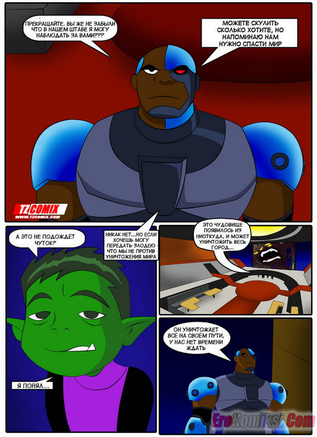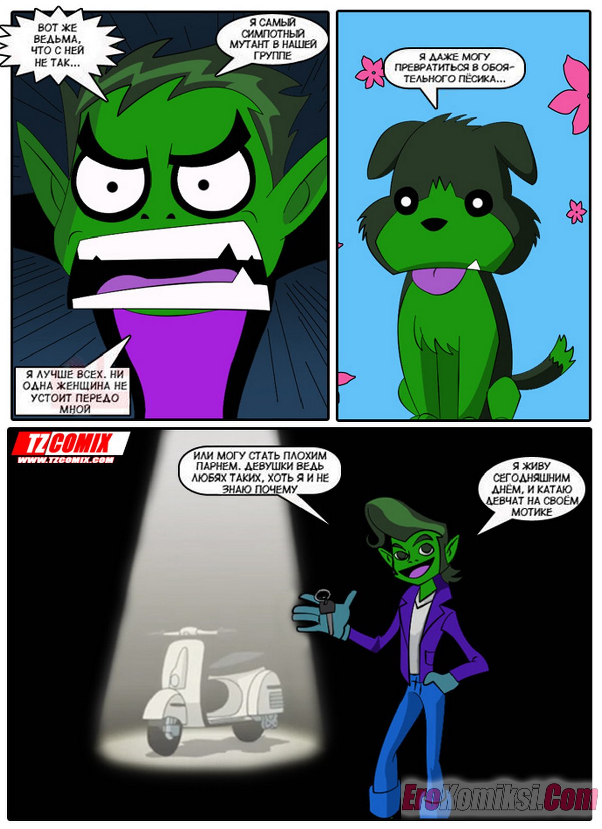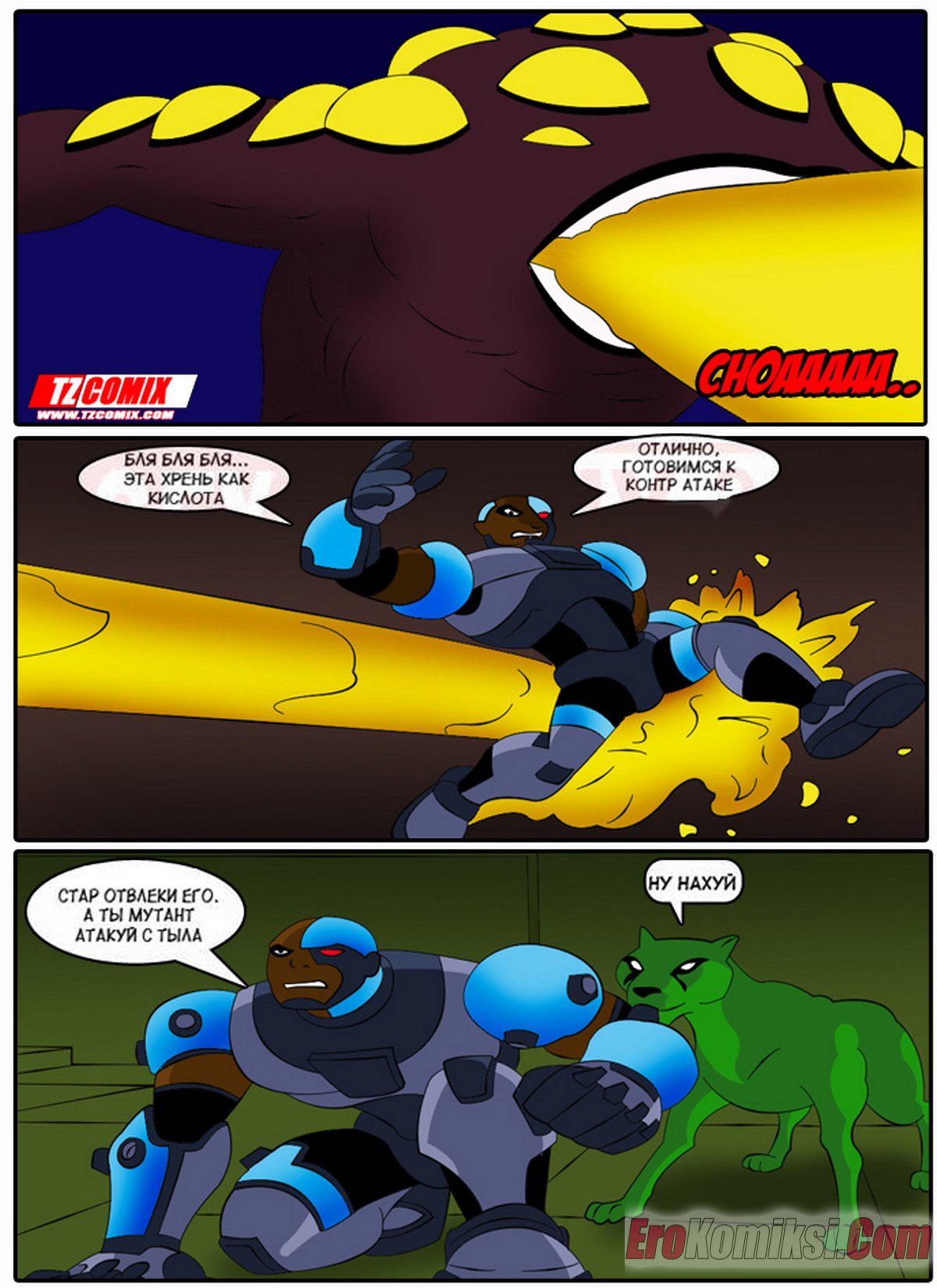 Порно комикс Юные Титаны. Часть 1. Turma Tita. HQPorno. TZComiX Горячие сисястые красотки из команды Юных Титанов любят ебаться. Они раздеваются перед парнями и соблазняют их своими шикарными телами, после чего дают им себя хорошенько выебать.