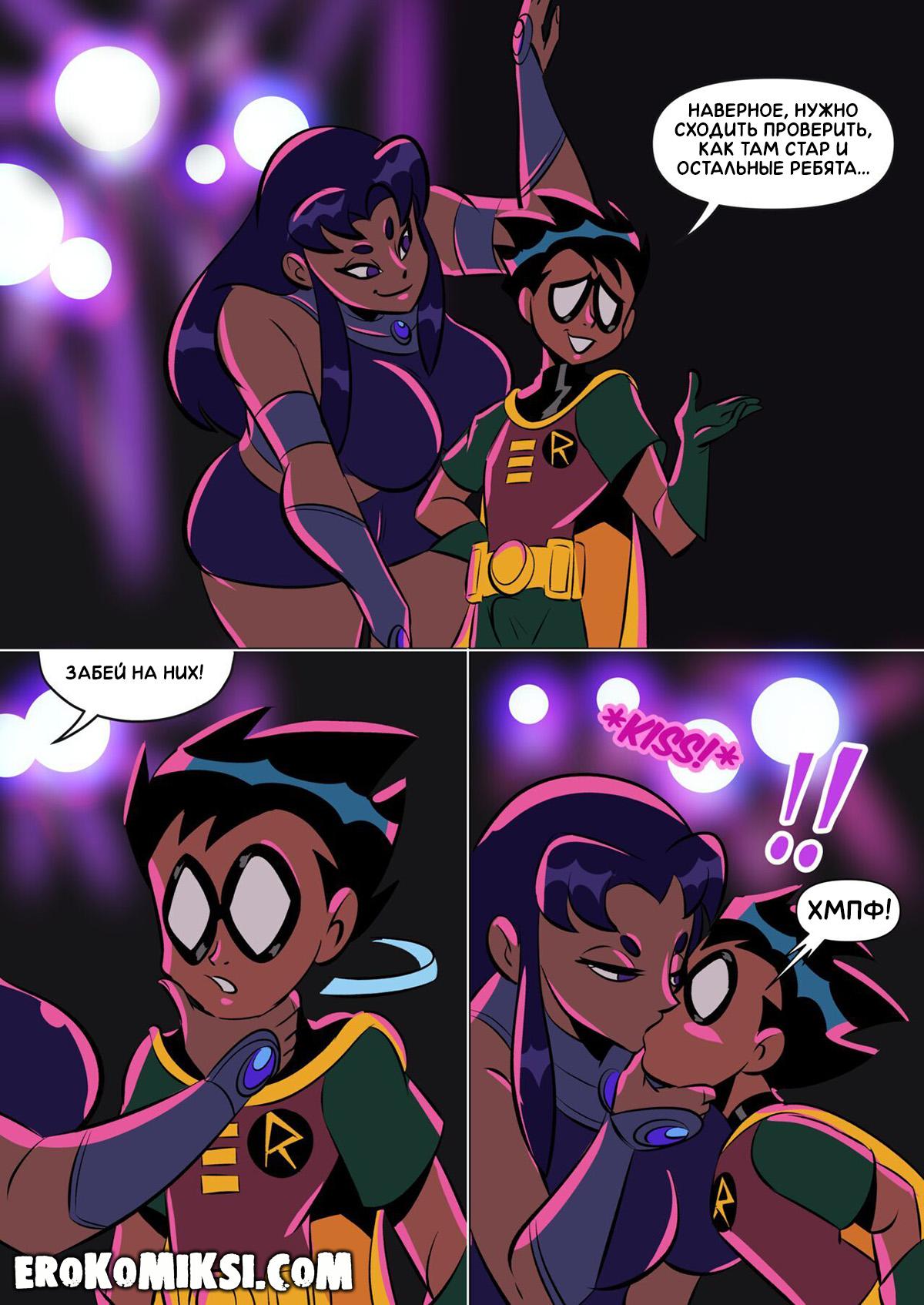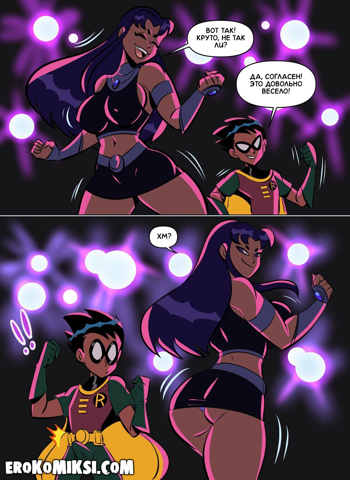 Порно комикс Юные Титаны. Потанцуй со мной. Команда титанов отправилась не много отдохнуть в ночной клуб. Блэкфайр обожала танцевать и пригласила Робина на танец, который возбудился от вида тверкающей красавицы и Блэкфайр это заметила. Она стянула с себя трусики и прижалась к члену Робина, чтобы тот оттрахал её во время танца…