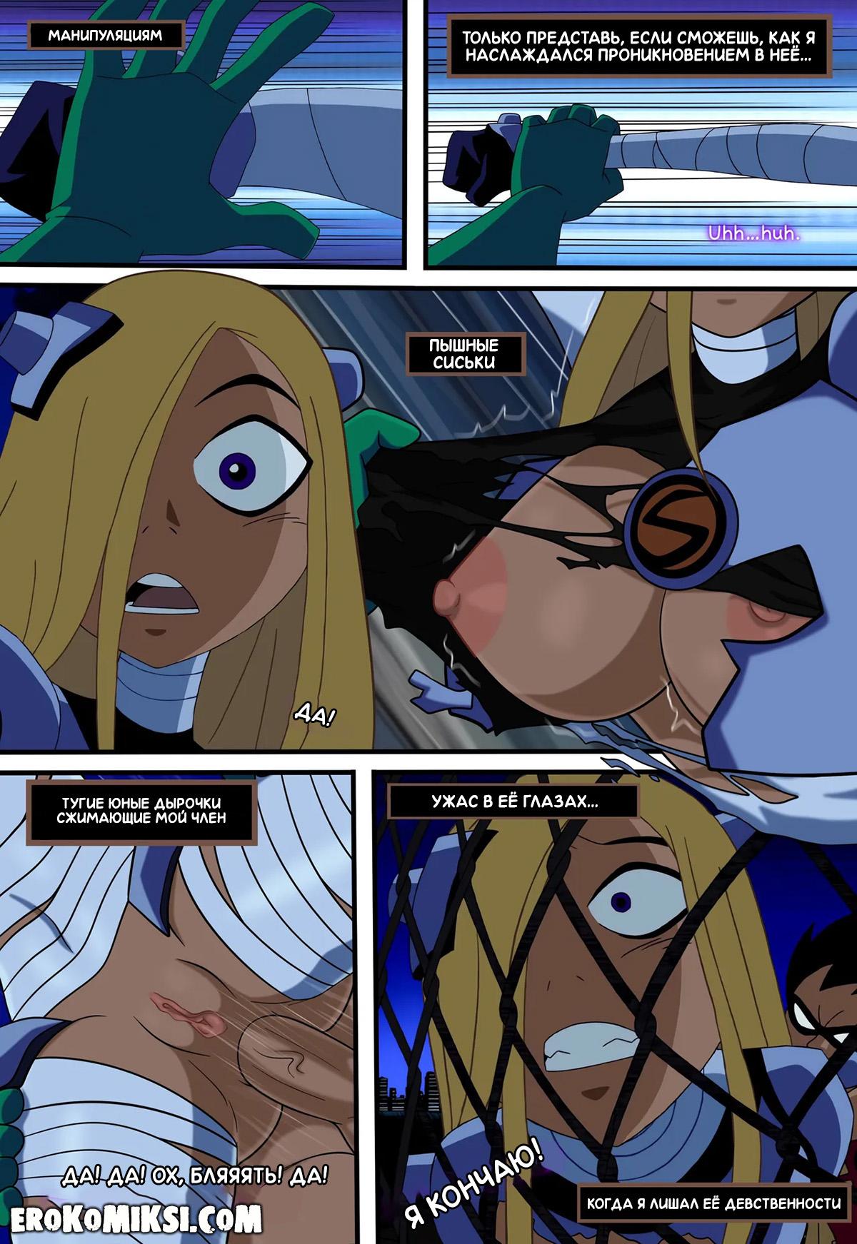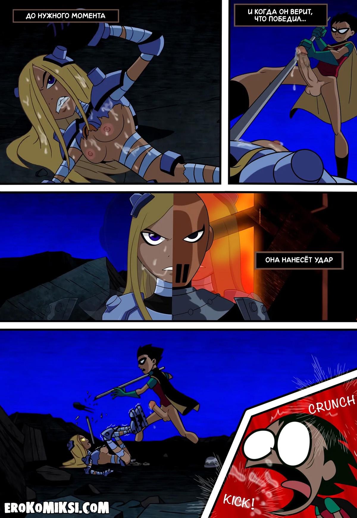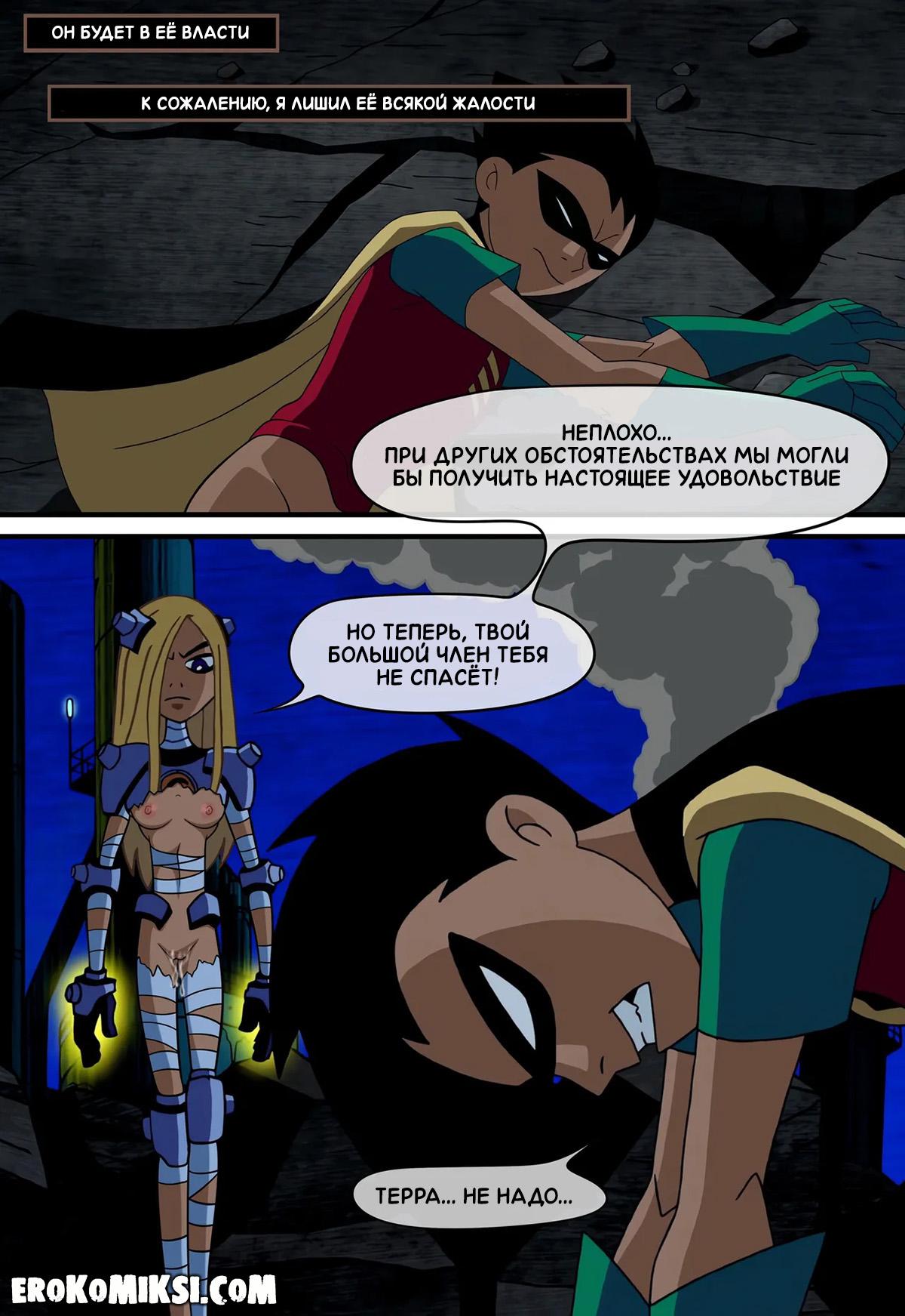 Порно комикс Юные Титаны. Верная ученица. Детстроук собирается уничтожить команду Титанов и отправляет свою ученицу Терру расправиться с каждым из них поодиночке. Встретившись с Робином, Терра делает вид, что слишком слаба и даже позволяет пареньку трахнуть себя во все щели, чем Робин незамедлительно пользуется и как следует трахает красотку Терру…