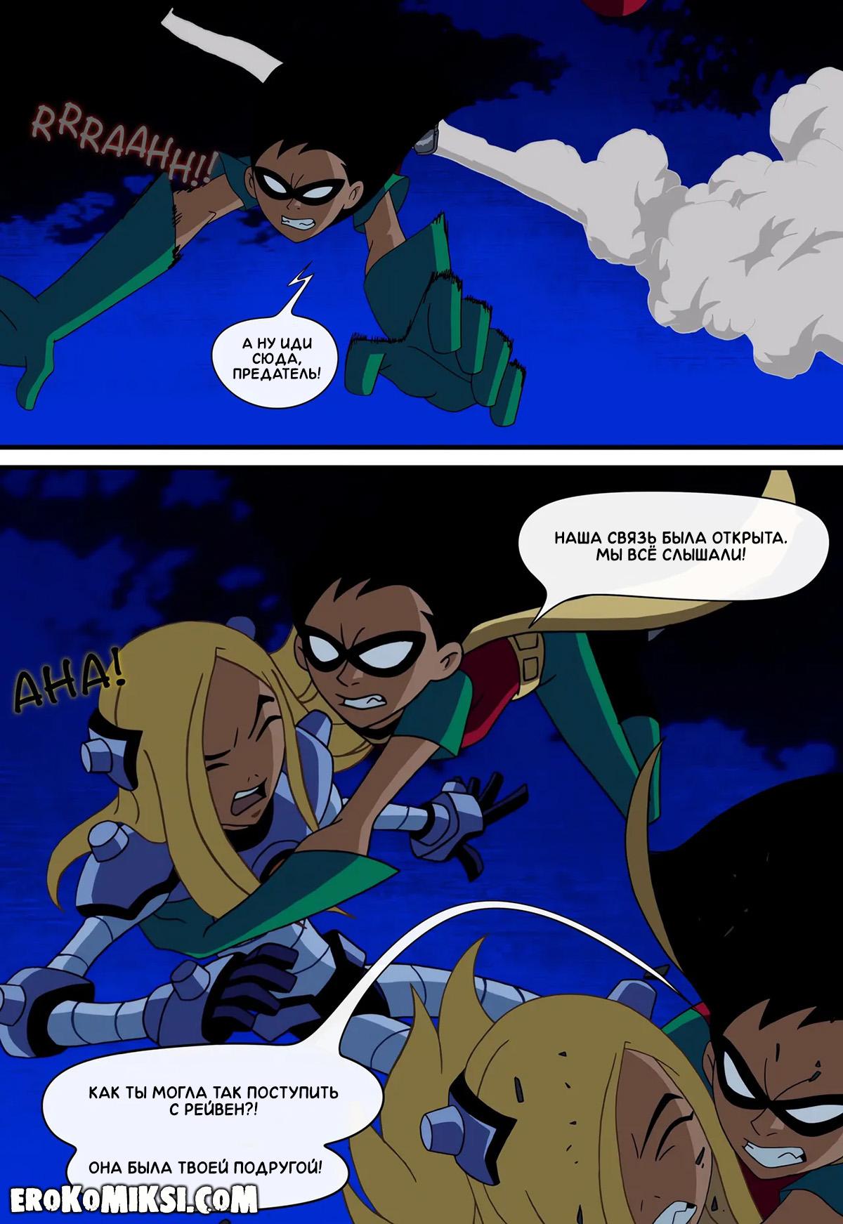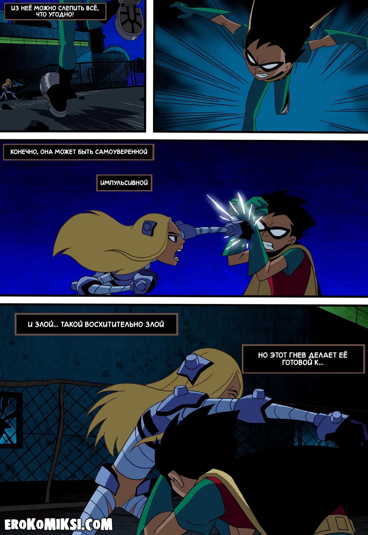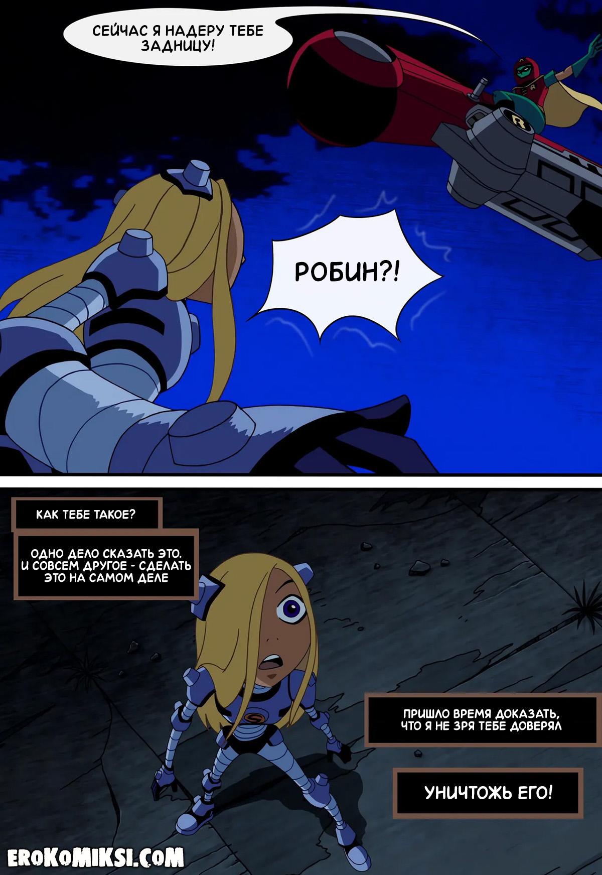Порно комикс Юные Титаны. Верная ученица. Детстроук собирается уничтожить команду Титанов и отправляет свою ученицу Терру расправиться с каждым из них поодиночке. Встретившись с Робином, Терра делает вид, что слишком слаба и даже позволяет пареньку трахнуть себя во все щели, чем Робин незамедлительно пользуется и как следует трахает красотку Терру…