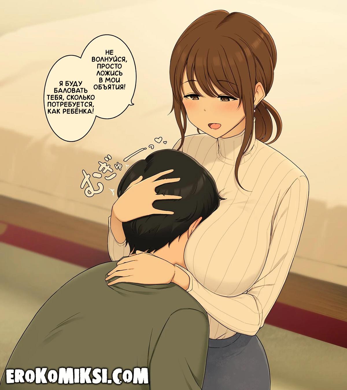 Порно комикс Забота любящей женщины. Молодой парень пришёл к взрослой женщине, Сакико, которая приласкает и позаботится о нём, после трудного рабочего дня. Она даёт ему пососать свои большие сиськи и дрочит его член, чтобы паренёк расслабился, а затем, позволяет ему трахнуть её тугую сочную киску и наполнить её своей горячей спермой.//