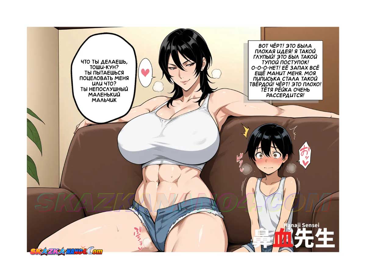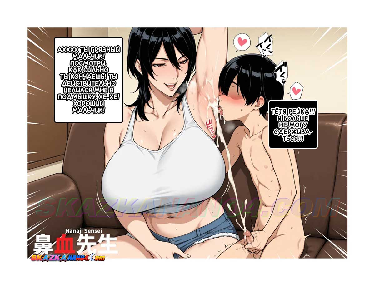 Порно комикс Забота о соседском мальчике. Рейко попросили приглядеть за соседским мальчиком Тоши и Рейко с радостью согласилась. Как только Тоши оказался наедине с Рейко, он сильно возбудился от горячей милфы, и Рейко это заметила. Недолго думая, она стянула с паренька штаны и принялась сосать его член, а затем дала ему оттрахать свою киску и задницу.