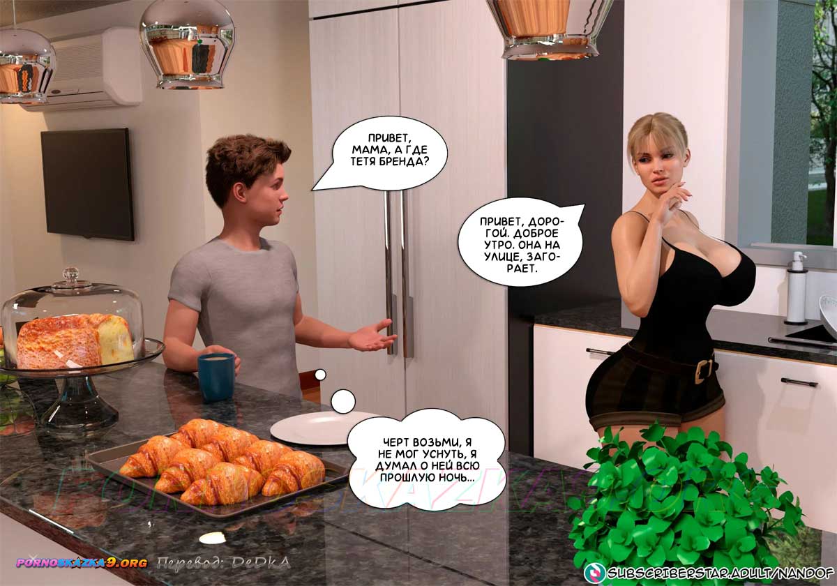 Порно комикс Запретный соблазн. Часть 6. Утром, загорая у бассейна, Бренда размышляла о том, что произошло между нею и Уильямом, и думала, как ей теперь вести себя после этого. А тем временем Уильям, пользуясь тем, что в доме он остался наедине с мамой, был настроен не упустить такой удобный момент…