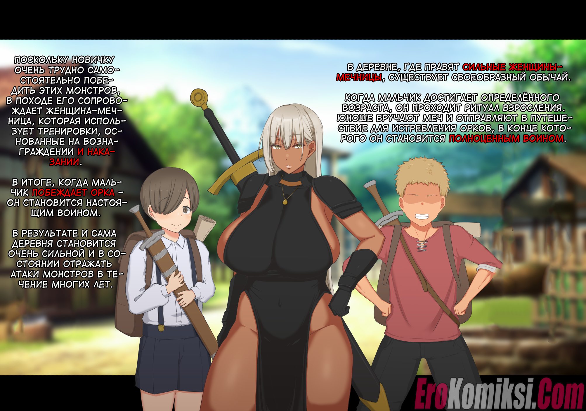 Порно комикс Женщина-мечник и два юноши. В деревне, где правят сильные женщины-мечницы существует необычный обычай. Когда парень достигает определенного возраста он проходит ритуал взросления…