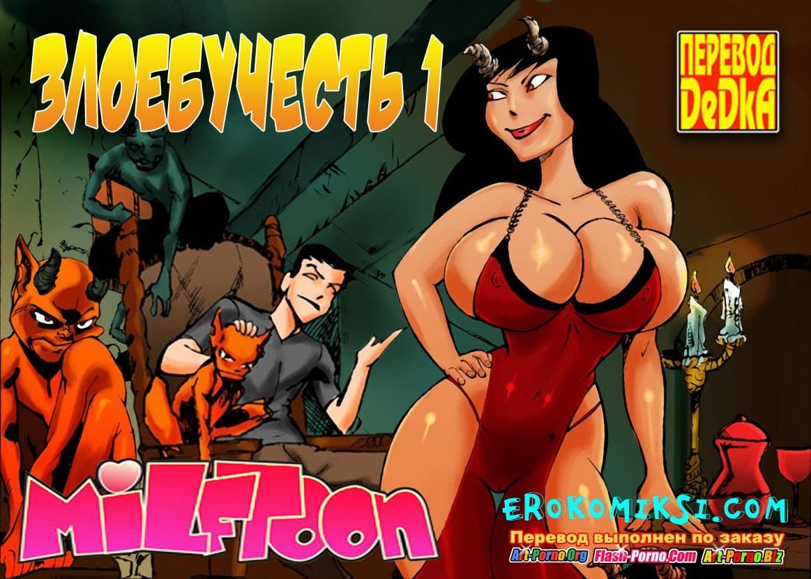 Развратные и откровенные порно комиксы греха или инцеста представлены для вас в данном сбжете. Все здесь начинается с того, что один юноша попав в ад умудрился занять трон главного правителя ада, вот так! А оставшаяся на земле зрелая мамочка парня стала так там хулиганить, поэтому сын решил подальше от греха прибрать её к себе в жаркий ад. Там он устроил ее по блату на отличную должность дьяволицы. Но такое блатное верховенство не устраивало стервозную сучку, и она захотела сама стать адской королевой! История, прямо, как у той бабки из известной сказки про золотую рыбку…