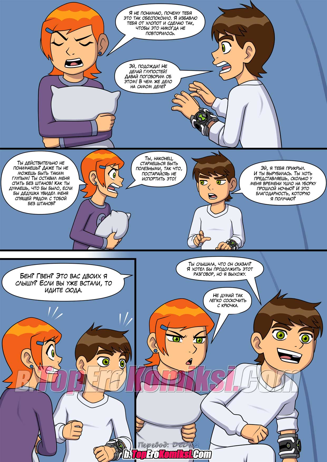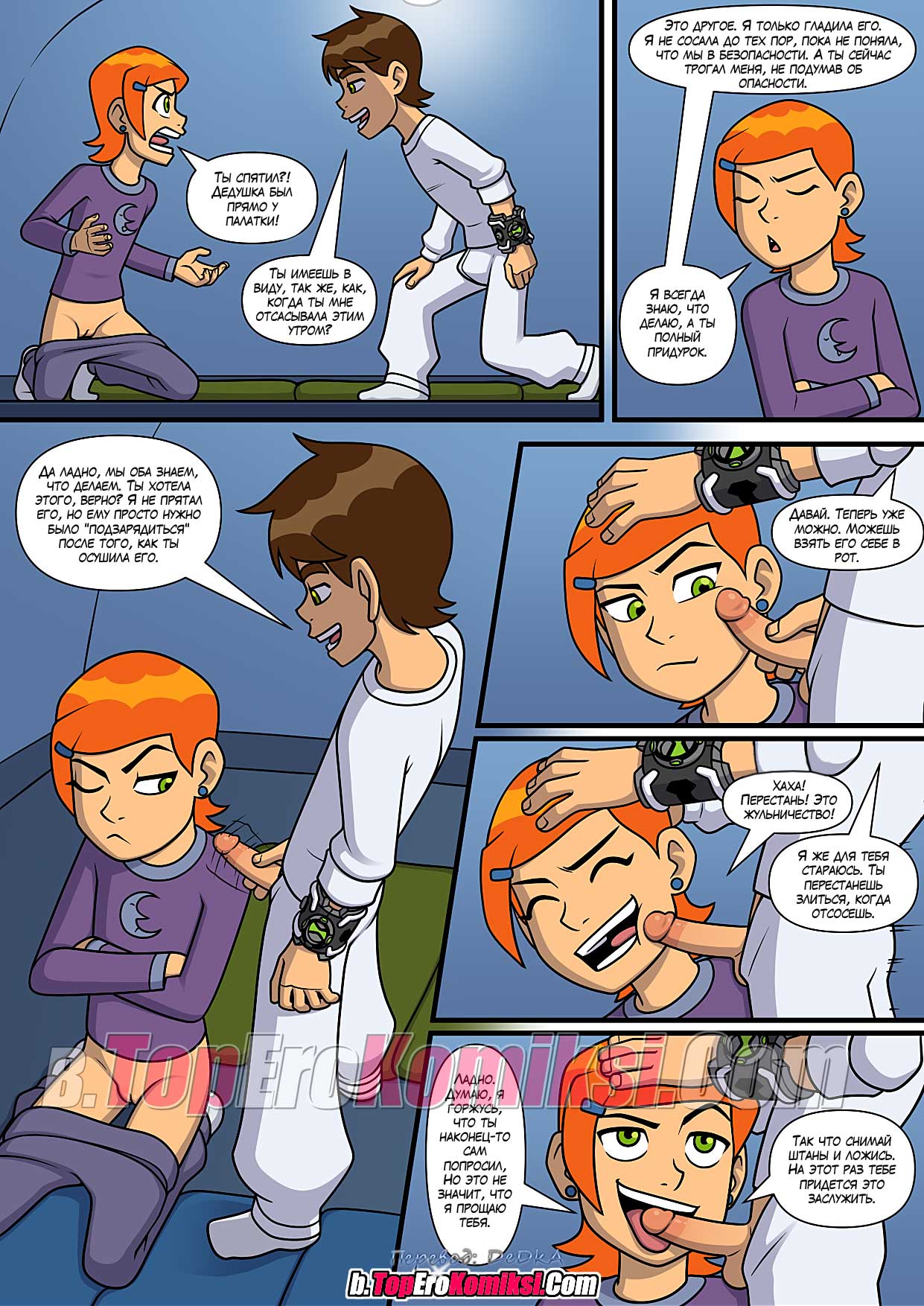 Наконец, Гвен и Бен достигли такой степени доверия и взаимопонимания, что Бен позволил Гвен учить его ублажать её языком. Сначала у Бена получалось не очень, он точно не знал, что и в каком именно месте он должен делать, и в результате Гвен лишь хохотала от щекотки. Но после того, как она стала подсказывать Бену, дело пошло на лад…