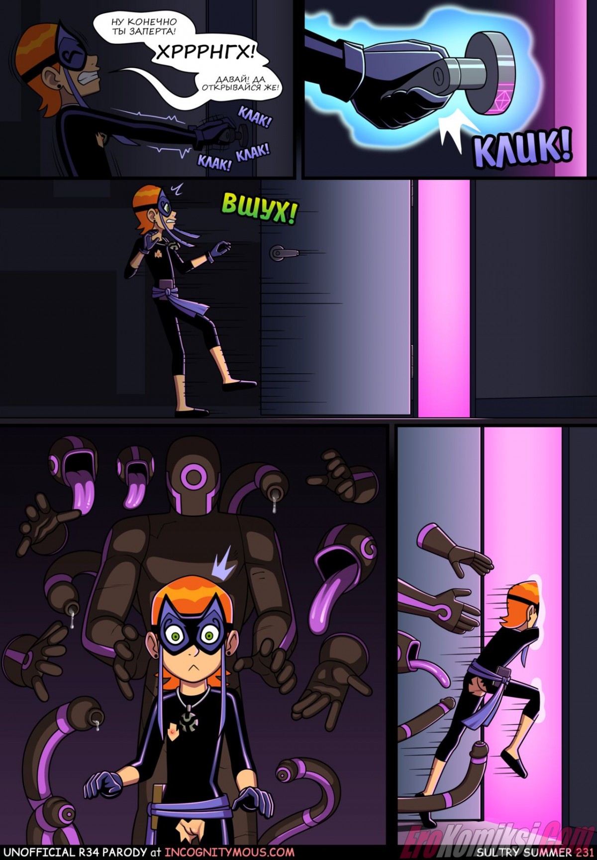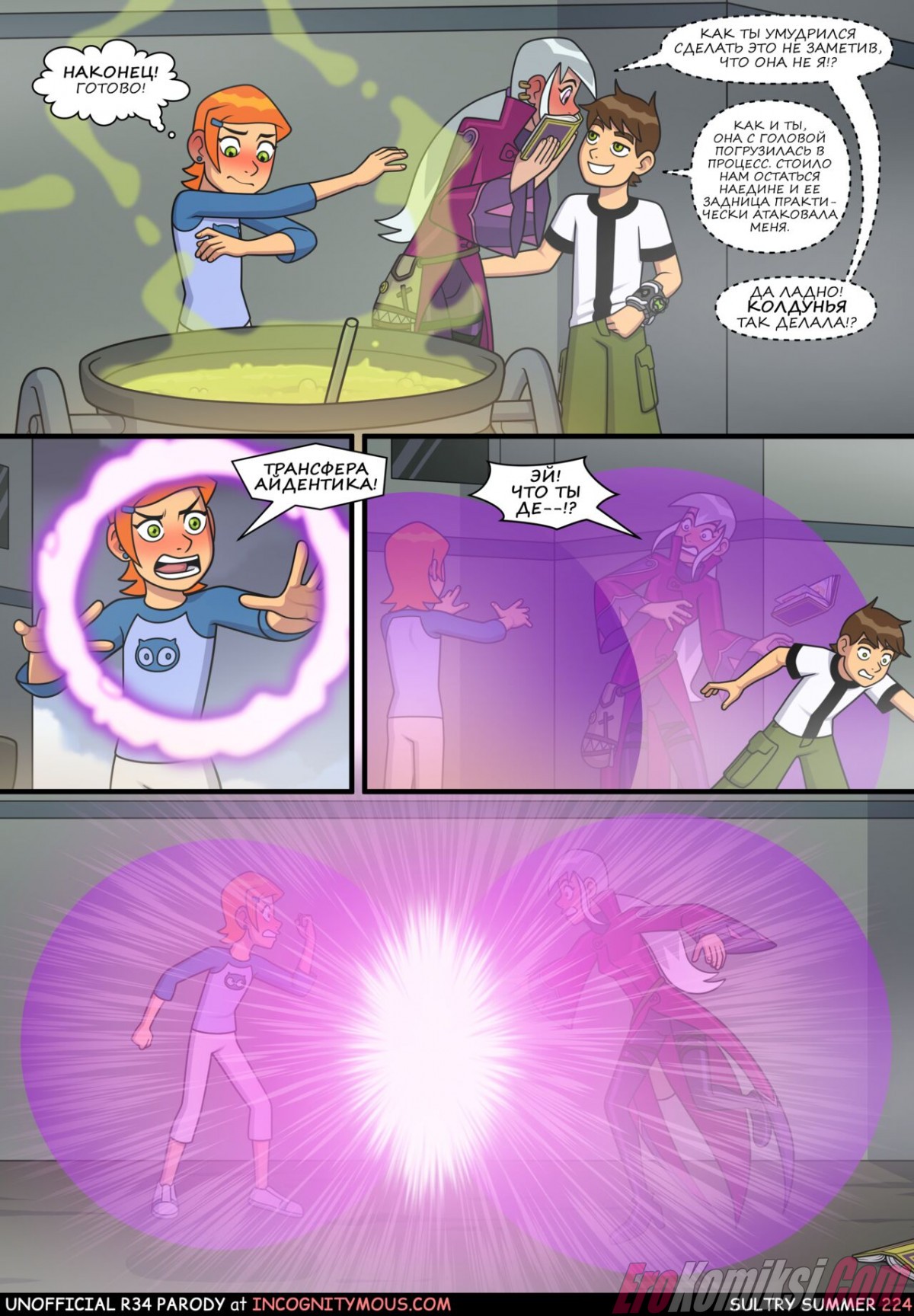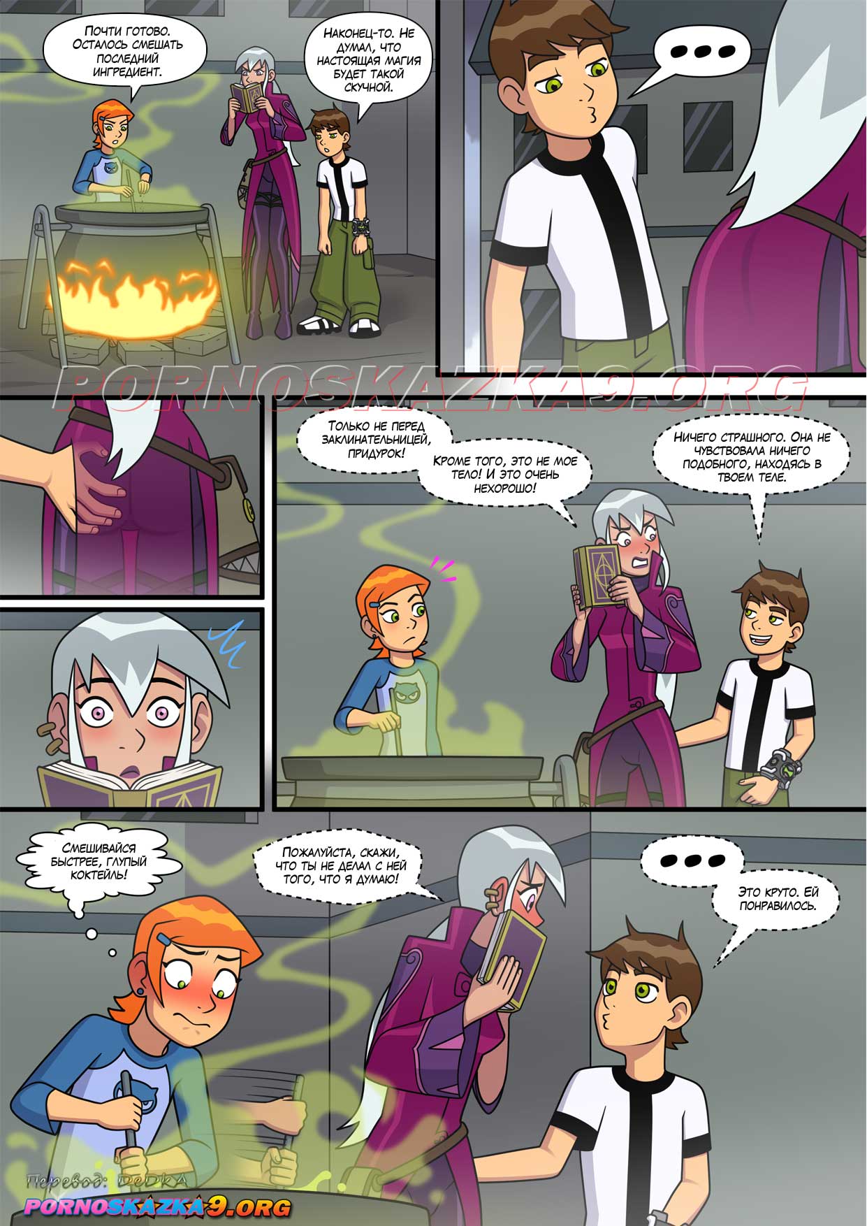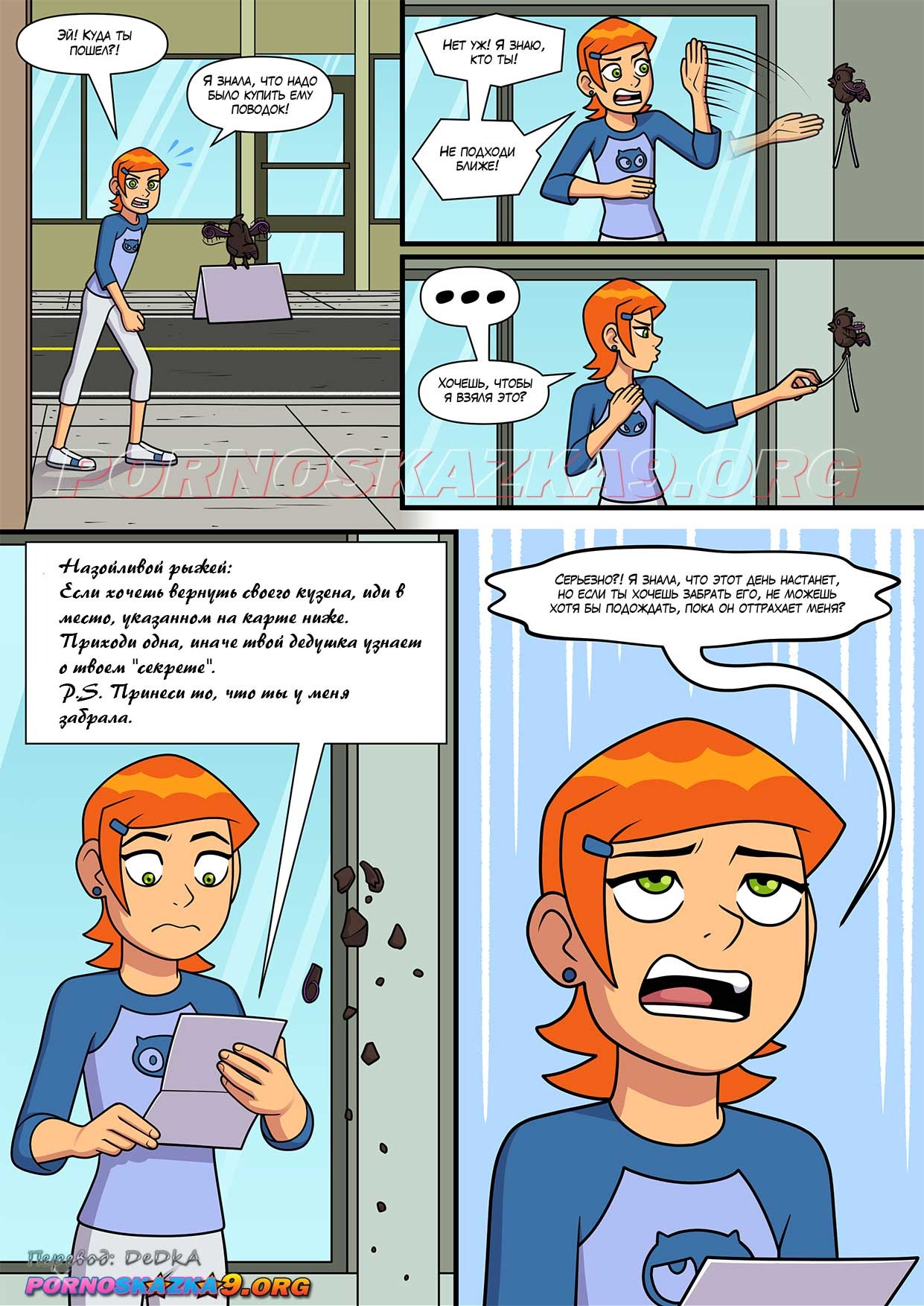 Порно комикс Знойное лето. Часть 6. Бен гулял по улице с Гвен и внезапно чертовски возбудился. Он завел девушку в переулок, чтобы повеселиться с ней. Он поставил сучку раком и хорошенько ее выебал, кончив ей в киску.