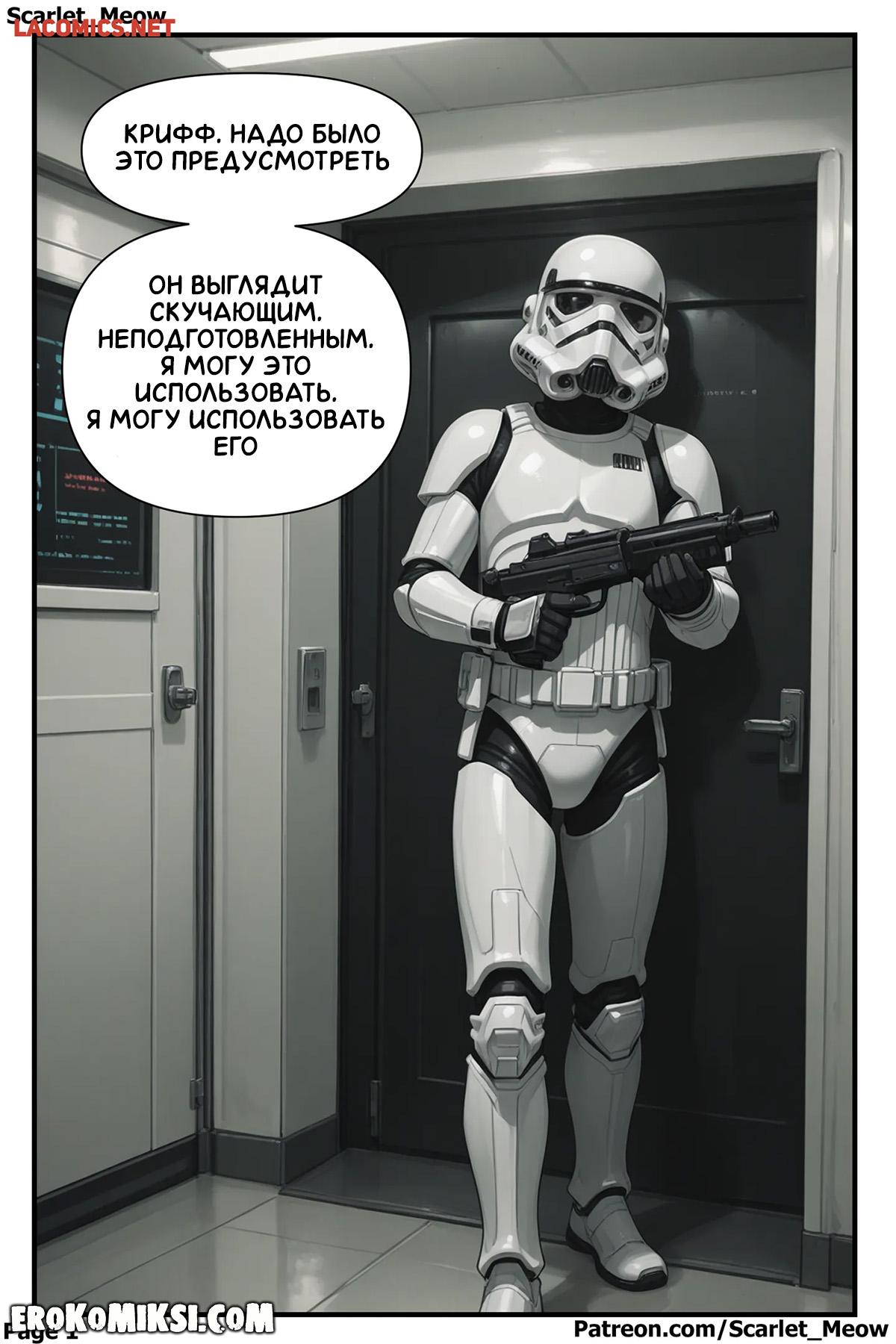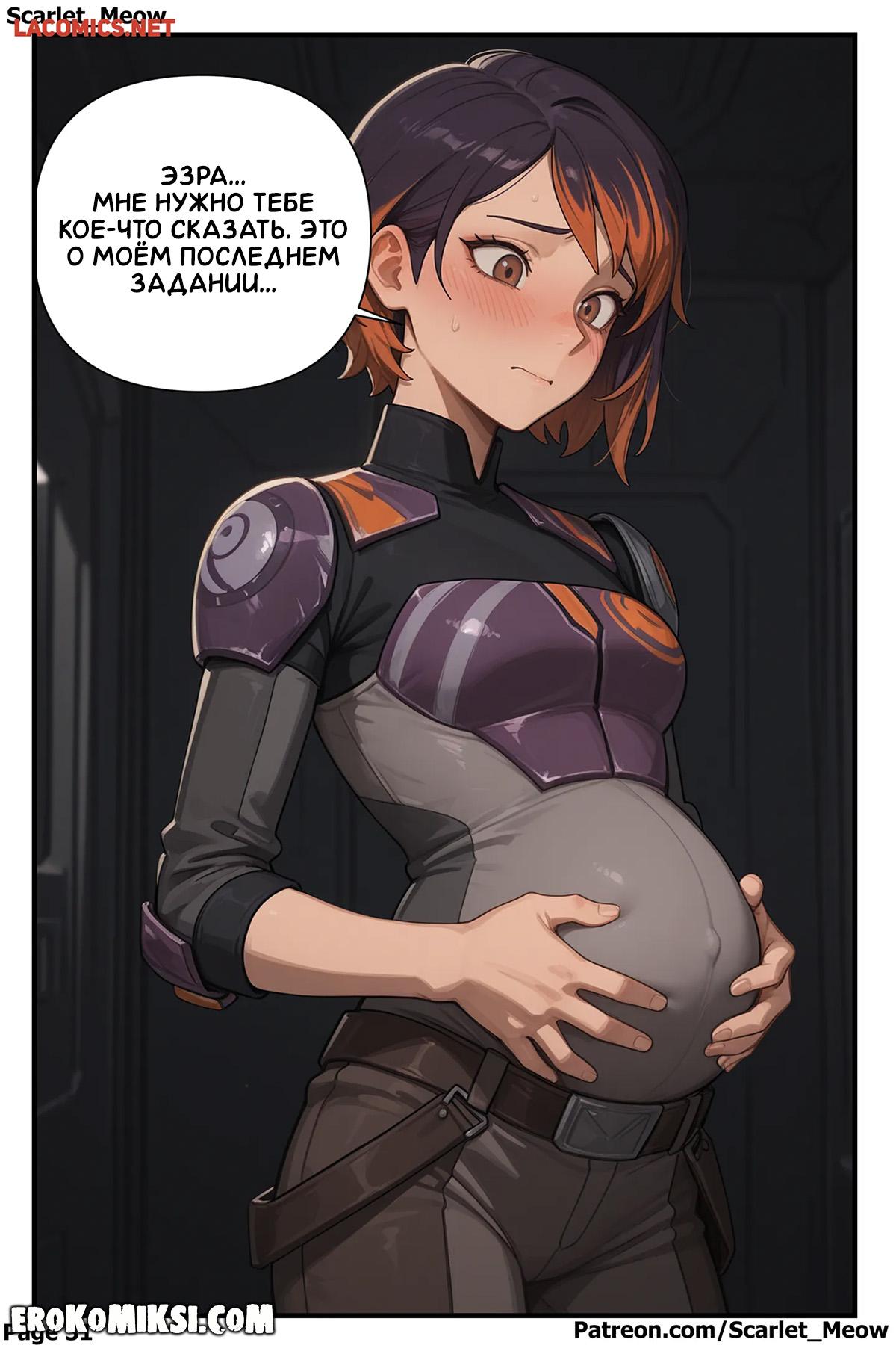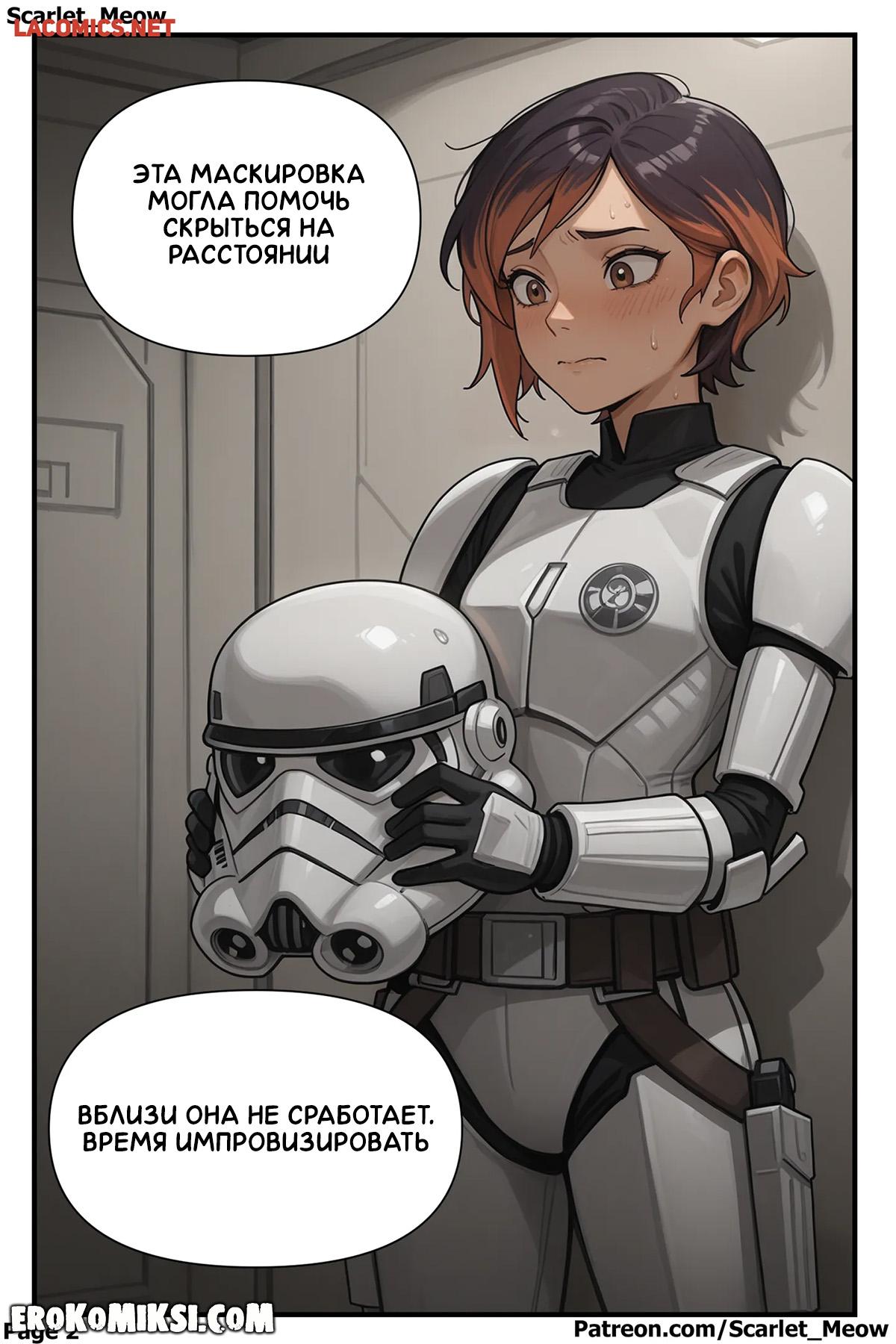 Порно комикс Звёздные войны. Искусство обмана. Сабин переодевается в солдата и проникает на базу врага, однако, чтобы пройти дальше, ей требуется отвлечь внимание охранника, и для этого, она раздевается и принимается сосать его член, а затем, даёт как следует оттрахать свою тугую киску.