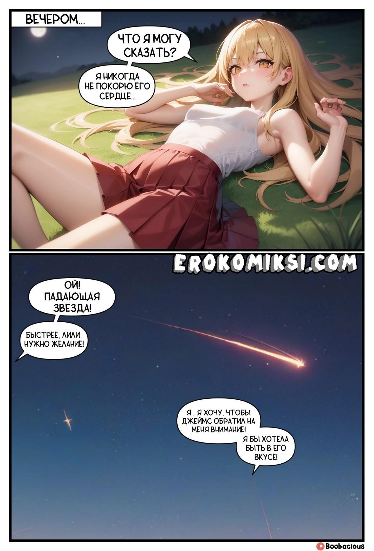 Порно комикс Звёздный перелом. Тело горячей сучки началось резко меняться, но она не понимала почему так происходит. Позже она поняла, что её большие сиськи и упругая задница появились благодаря желанию к падающей звезде…