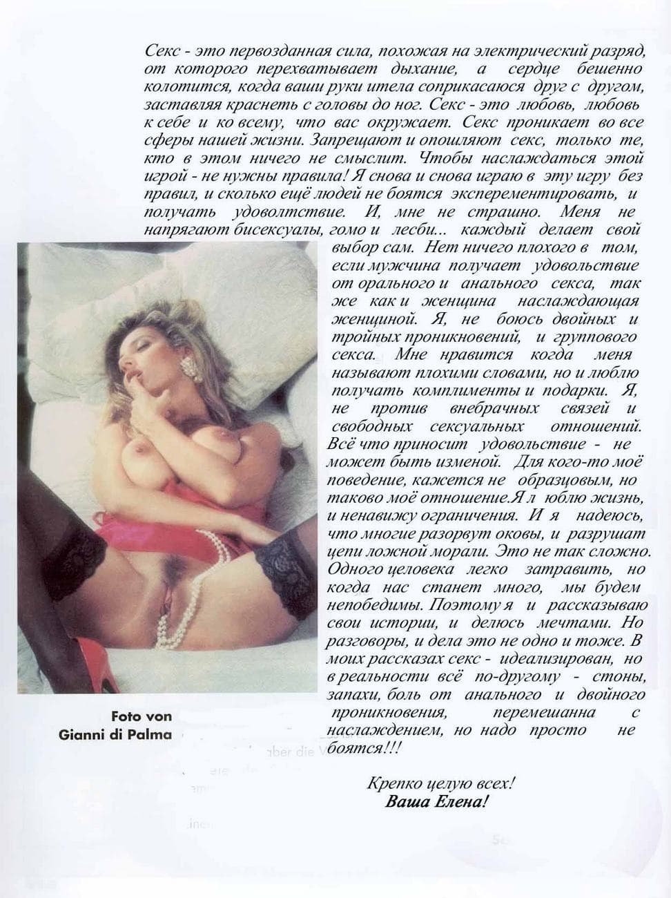 Красивая порно история с картинками об обаятельной и полностью раскрепощенной, в плане секса Елены. Она просто любит трахаться. Все, что ей нужно от жизни – оргазмы, много членов, и море спермы, которой наполняются ее дырочки.