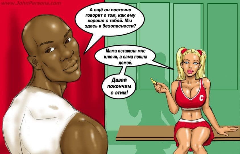 Данный комикс о белых горячих девушках – болельщицах спортивной команды, которые любят ласкать своими ротиками большие стоячие члены черных парней, а те в свою очередь не упускают момента трахнуть белую телку в ее горячую узкую дырку. Вам очень понравится!